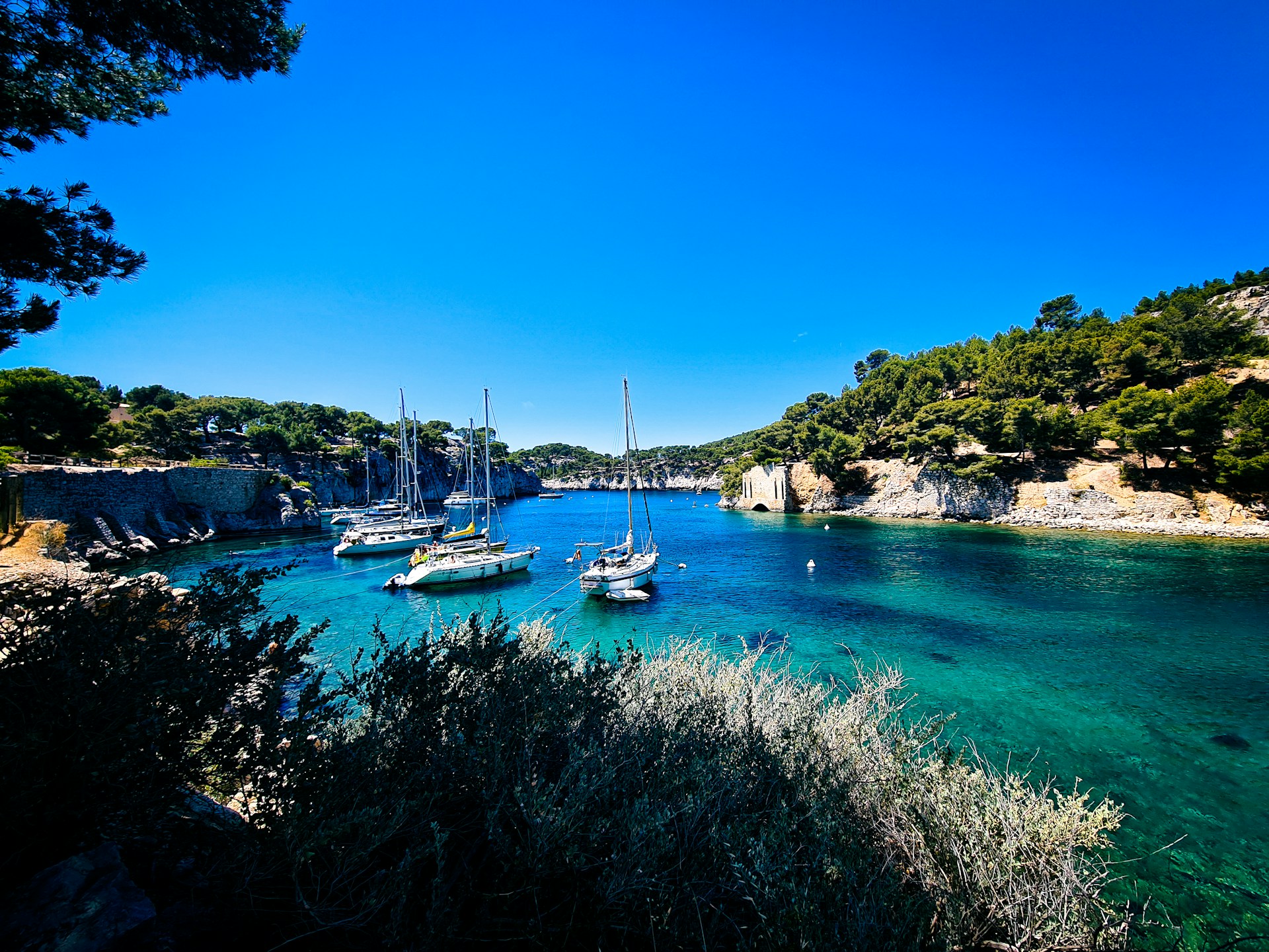 On ne peut accéder à Port-Pin et En-Vau qu’à pied, en grimpant sur le calcaire blanc et rocheux, tout en profitant des effluves de thym sauvage et de romarin. En-Vau est majestueuse : des parois abruptes plongeant dans des eaux turquoise cristallines avec une plage de galets au fond de la crique. Levez les yeux vers les falaises lorsque vous nagez ou ramez à En-Vau et repérez les grimpeurs progressant sur le rocher comme s’ils avaient des ventouses au bout des doigts.