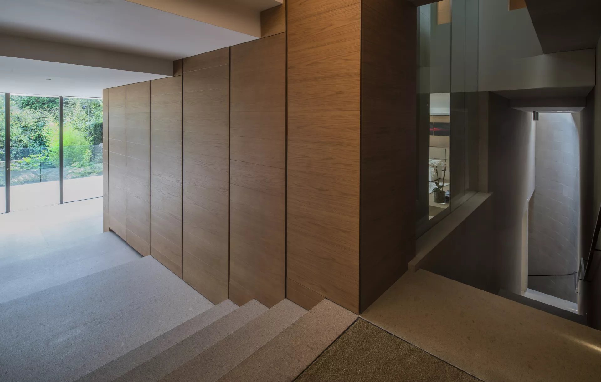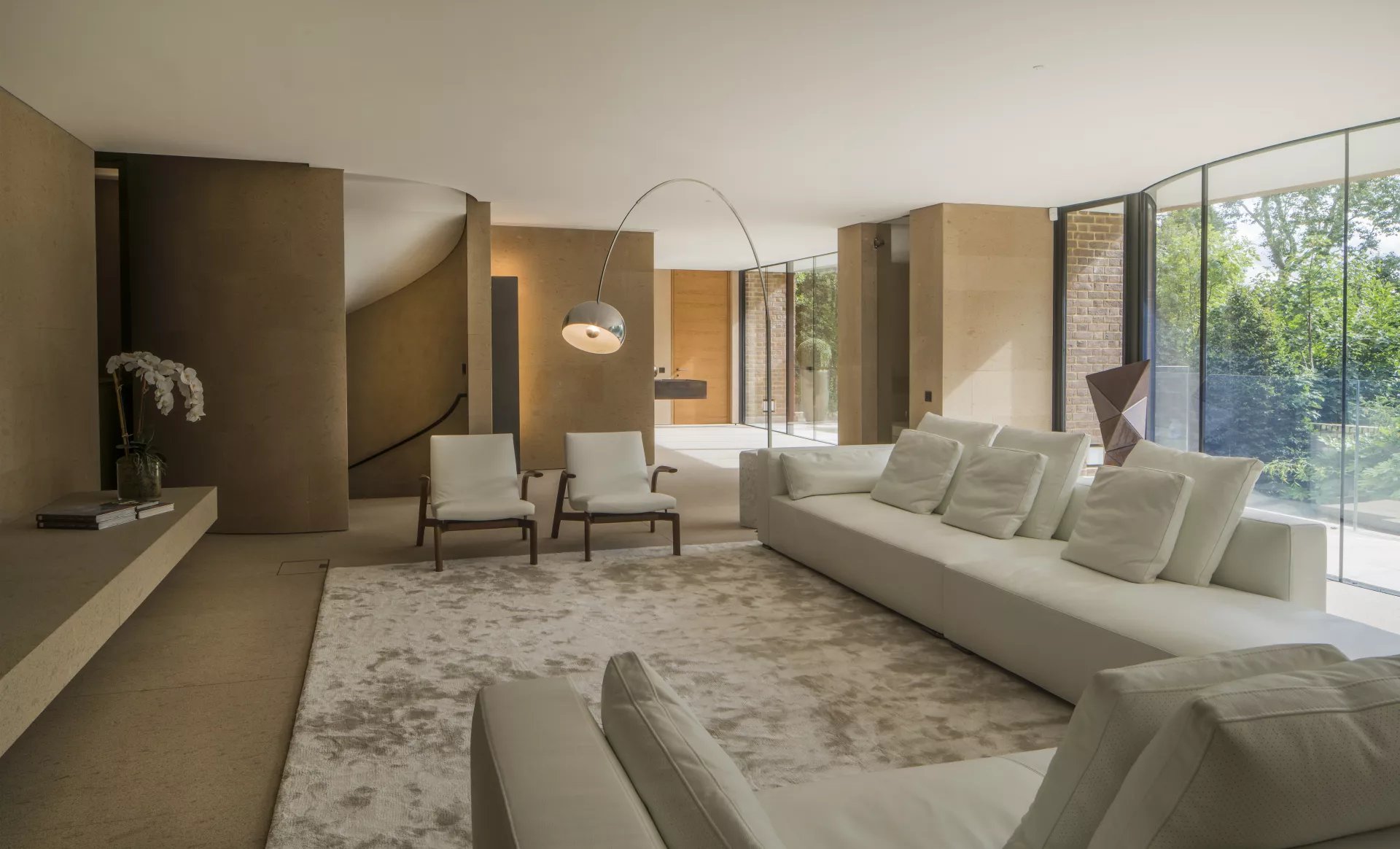 A minimalistic interior designed 21st-century house with plenty of natural light and a cinema room on a picturesque private road in Hampstead.