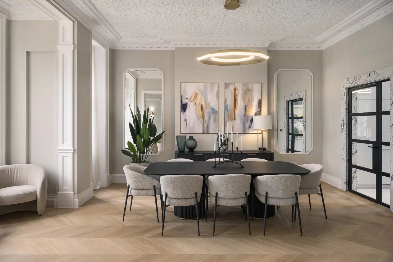 Extending to approximately 2,150 sq ft, the apartment offers generous entertainment and living spaces with fantastic volumes, high ceilings and excellent natural light.