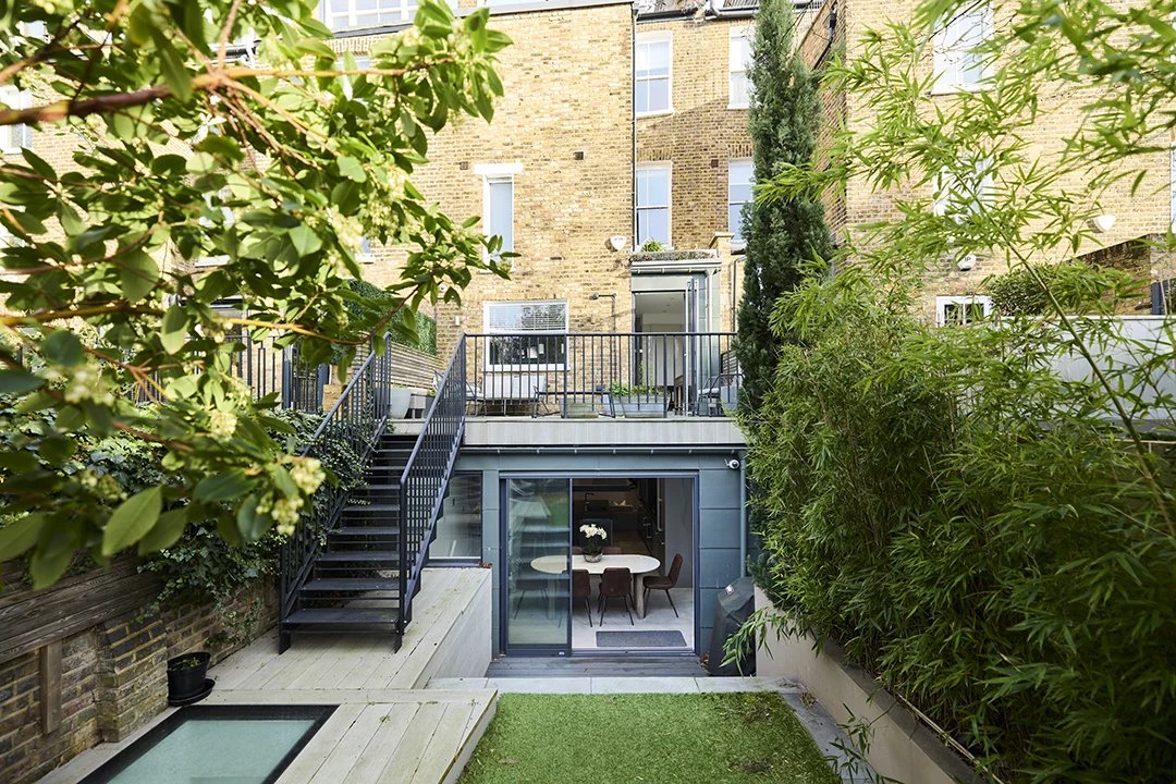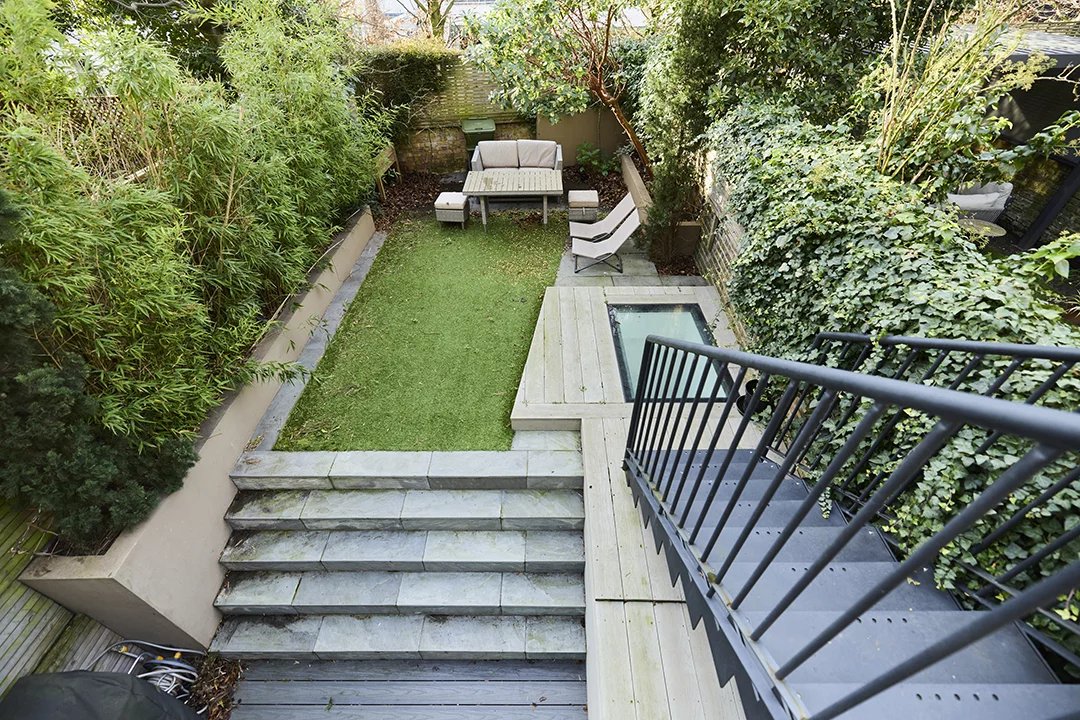 A unique terraced house set over six floors with a garden in a desirable area.