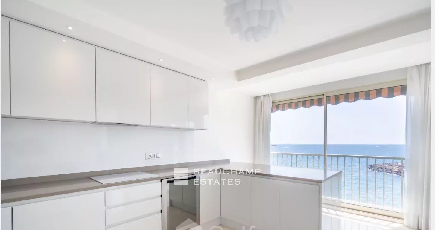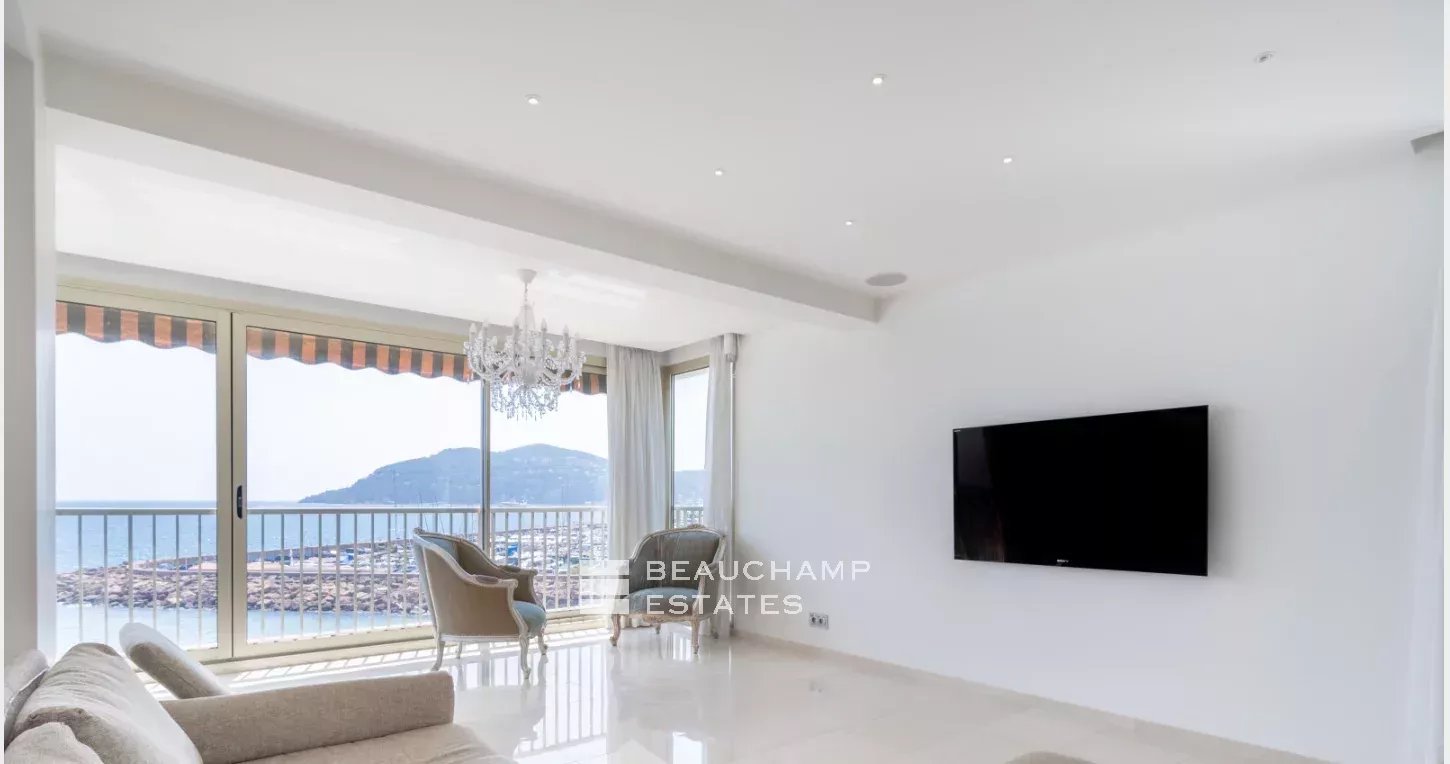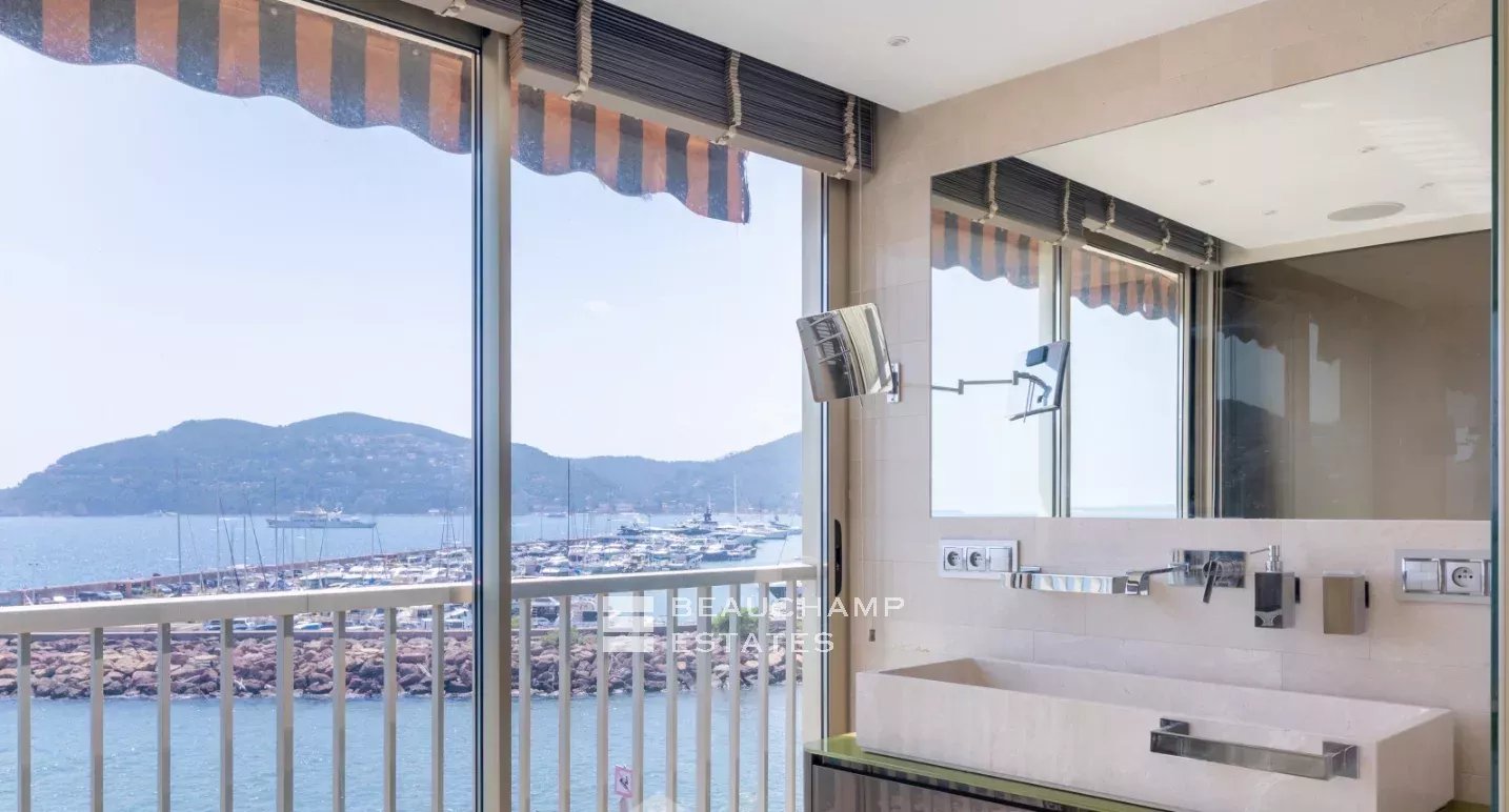 Ce grand appartement de 4 pièces de 179 m², littéralement pieds dans l'eau, offre une vue panoramique à couper le souffle. Situé dans une résidence de standing sécurisée, vous profiterez d'un accès privé à la plage, ainsi que d’une piscine, un restaurant et un court de tennis. L'appartement comprend une entrée, un vaste séjour de 79 m² avec cuisine ouverte et une salle à manger. Deux suites, chacune équipée d'un grand dressing et d'une salle d'eau avec WC, complètent ce bien d'exception. Un cadre de vie unique pour une expérience de luxe au quotidien. Deux caves, une place de parking et un grand garage en sous-sol complètent ce bien.