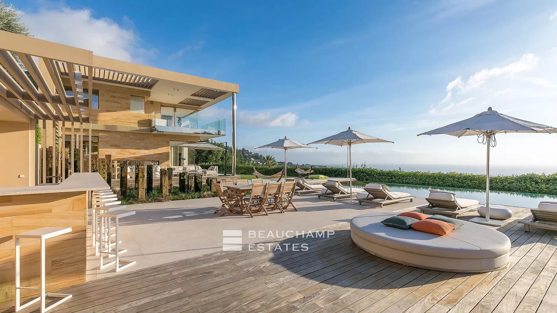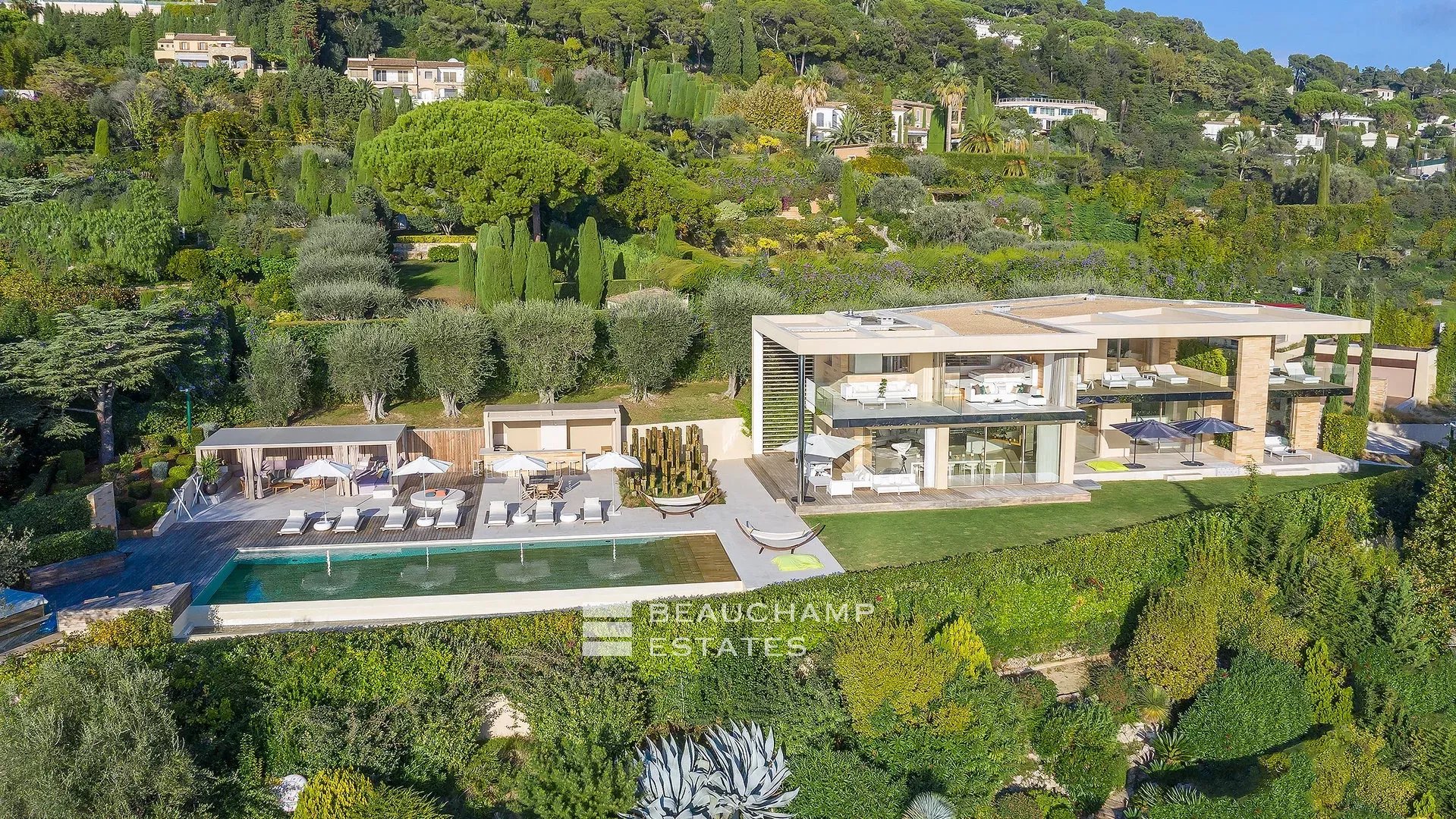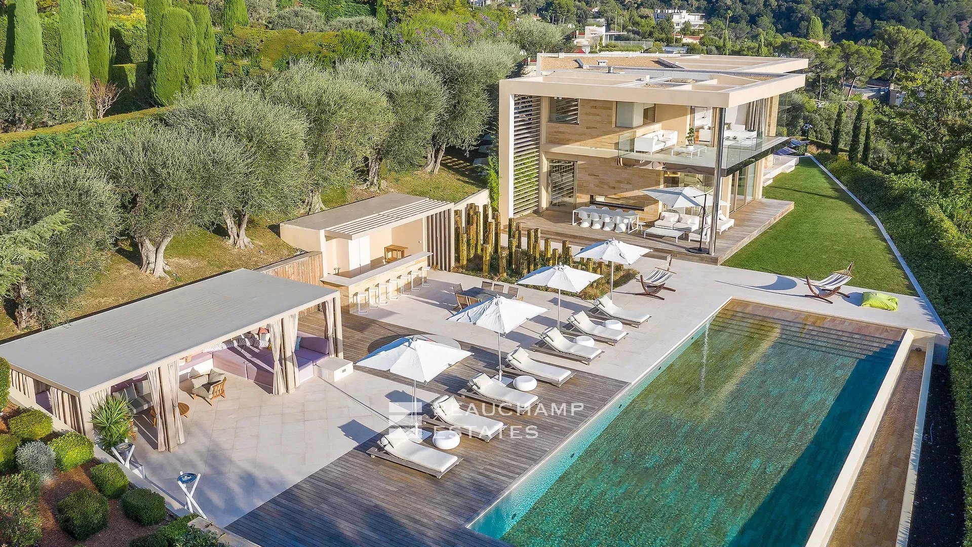 Située dans un domaine privé et sécurisé de la Californie, cette superbe propriété moderne de plus de 700 m2 au total a été entièrement rénovée avec des prestations à la pointe de la modernité et magnifiquement meublée, elle jouit d'une somptueuse vue mer ainsi que d'un jardin paysager de 6.500 m2. Une maison de gardien ainsi qu'un pool house et une espace Fitness complètent cette superbe propriété.