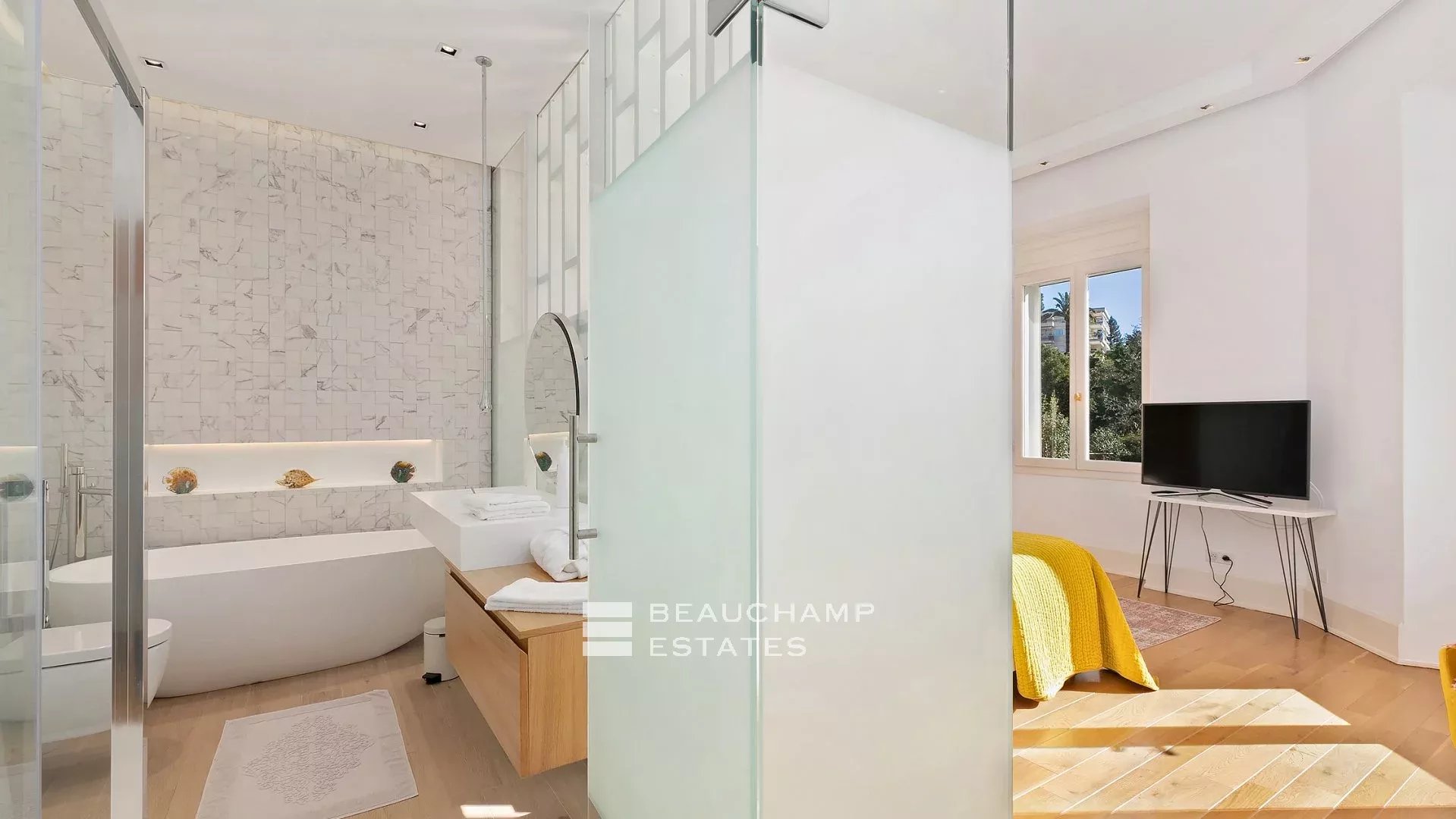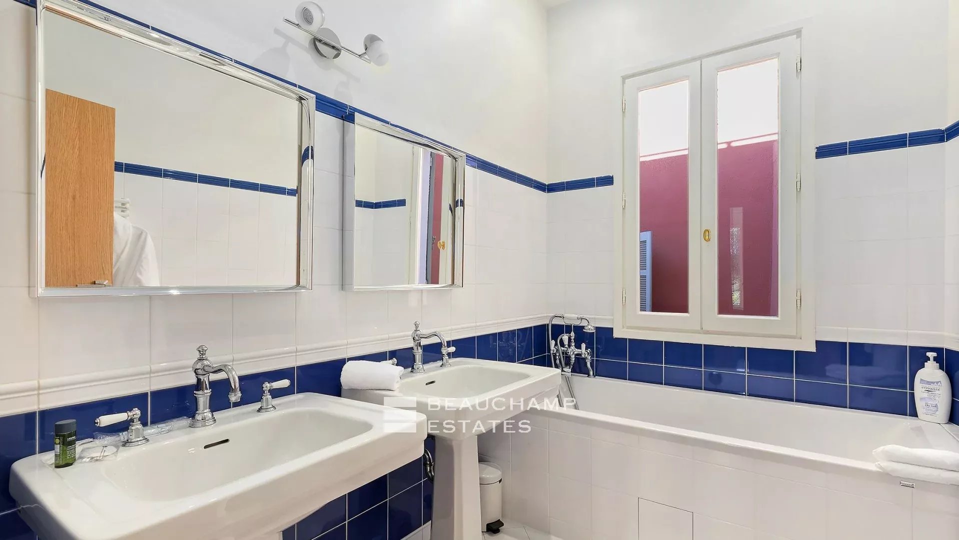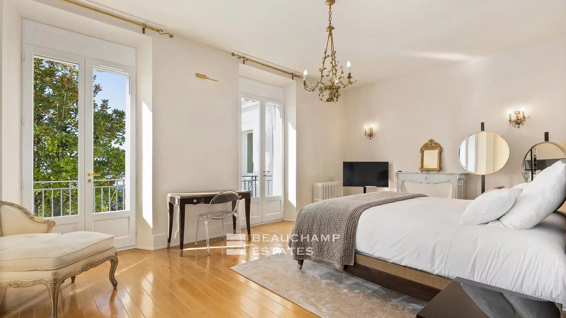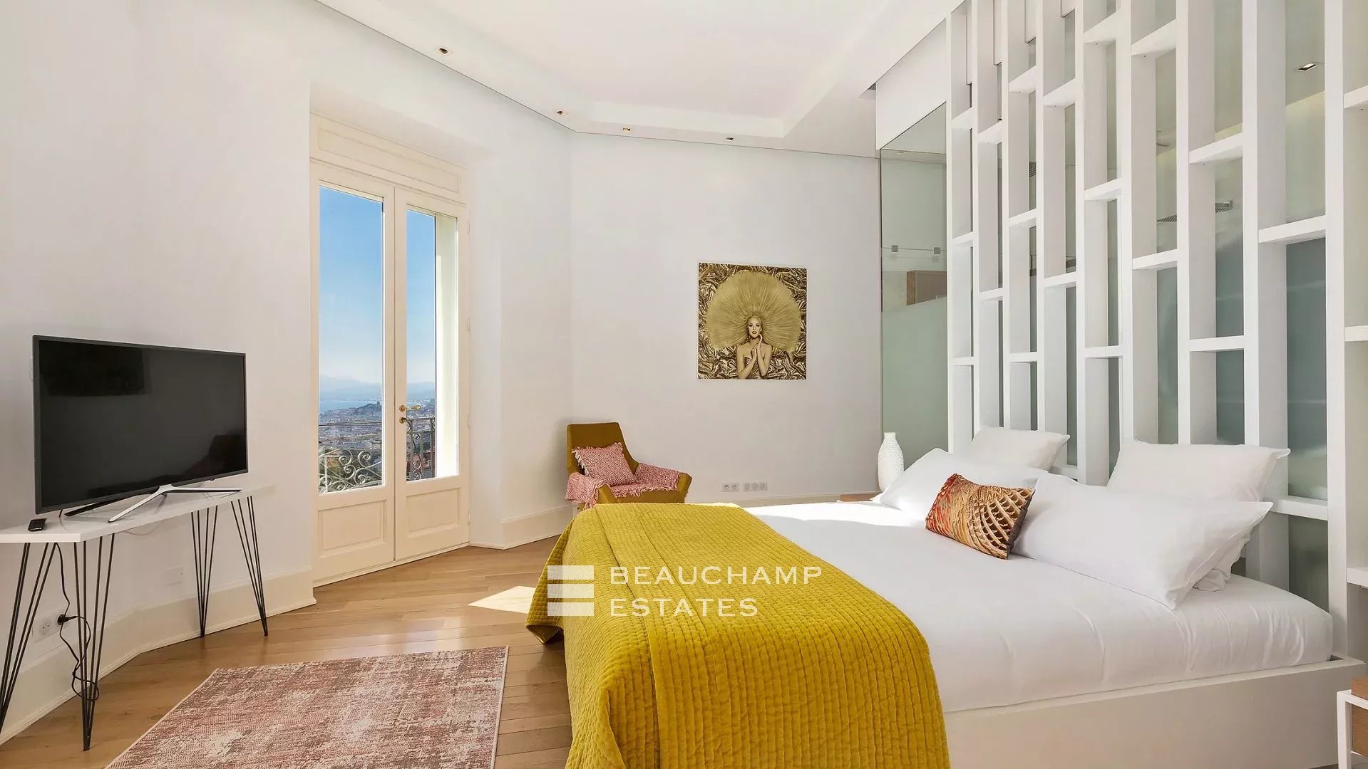 La demeure, bâtie sur la partie supérieure de la Californie, domine la Baie de Cannes et propose de somptueuse vues sur la mer, le vieux port et le massif de l'estérel, et ce à seulement 15 mn à pied (en descendant) de La Croisette et 20 mn du Palais des Festivals.