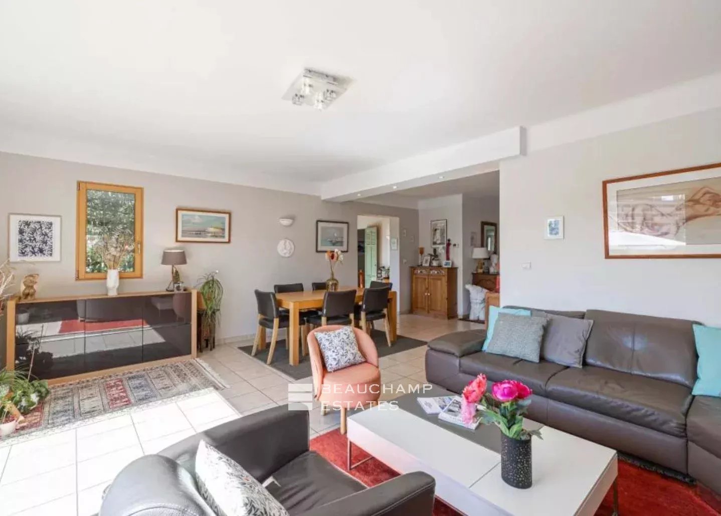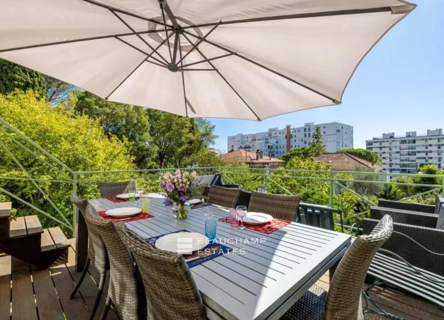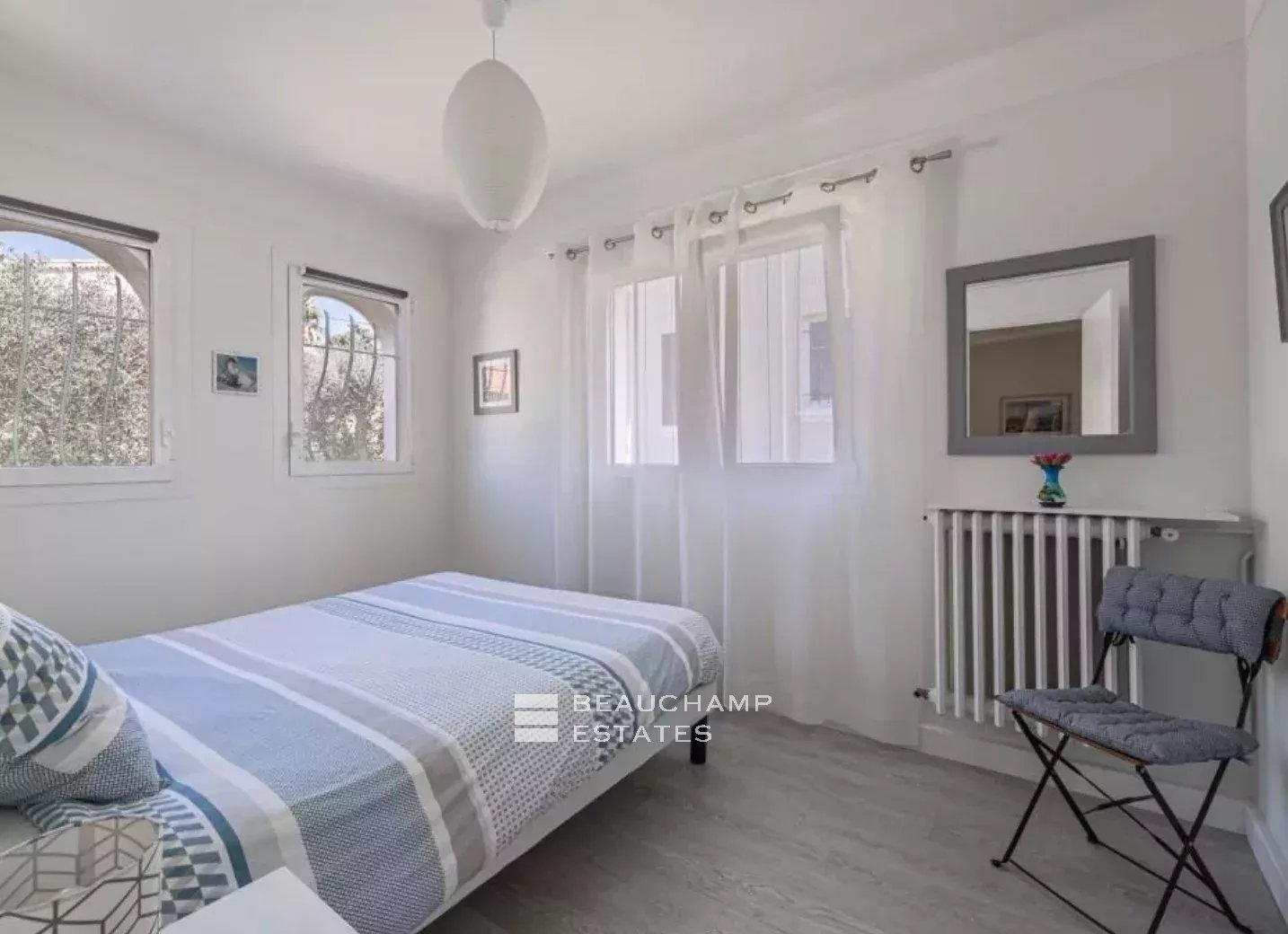 Située dans une impasse calme et recherchée, à seulement 1km de la rue d'Antibes. Villa qui comprend au rez-de-jardin, une chambre, une cave et une buanderie, au rez-de-chaussée une entrée, un salon, une cuisine, une chambre de maître en suite, une deuxième chambre et une salle d'eau. L'étage qui peut être séparé comprend un salon, une cuisine, une chambre en suite avec salle de bains, deux chambres et une salle d'eau. Terrain de 903m² sud et plat. Piscine hors-sol et 4 parkings extérieurs. Honoraires à la charge du vendeur