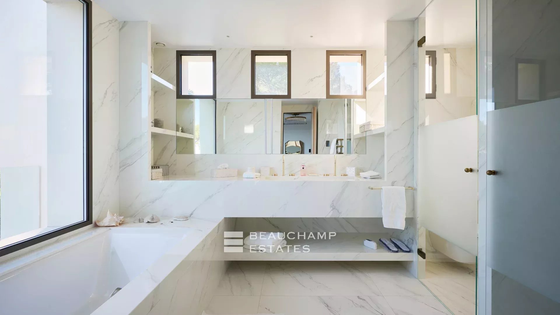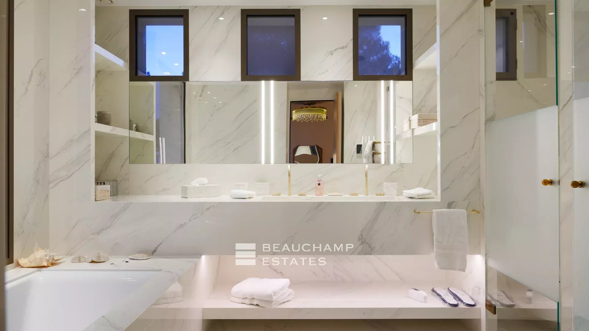 - Une chambre de maître avec dressing séparé, salle de bains et douche italienne et terrasse privative avec vue sur la mer