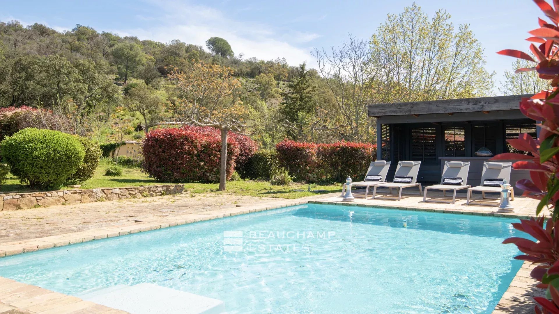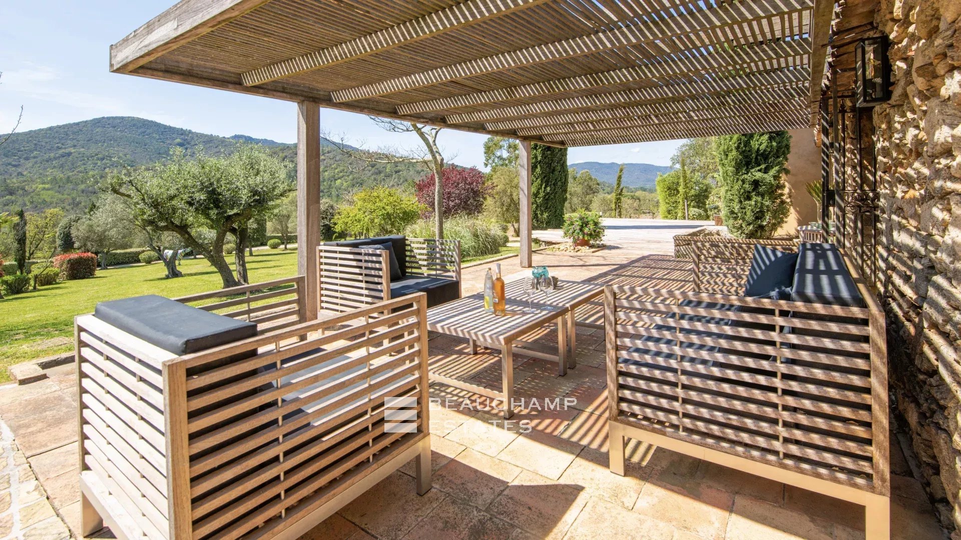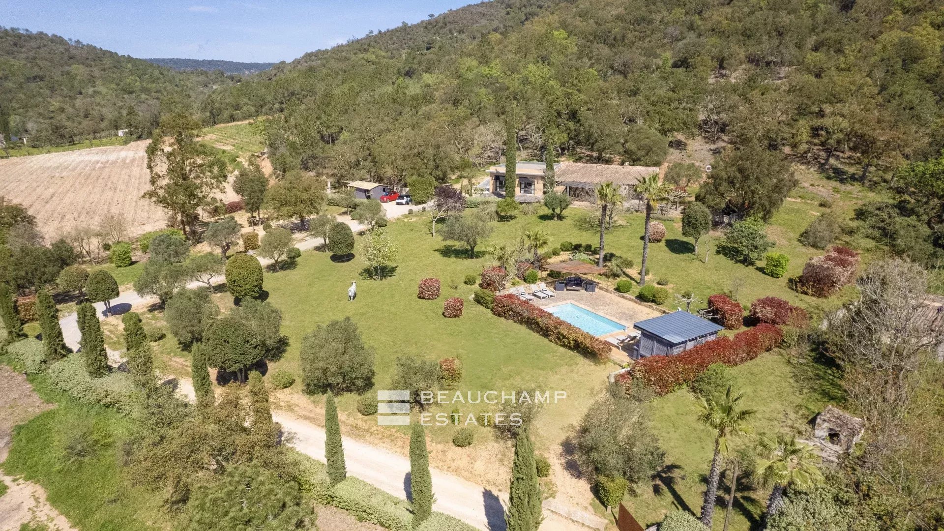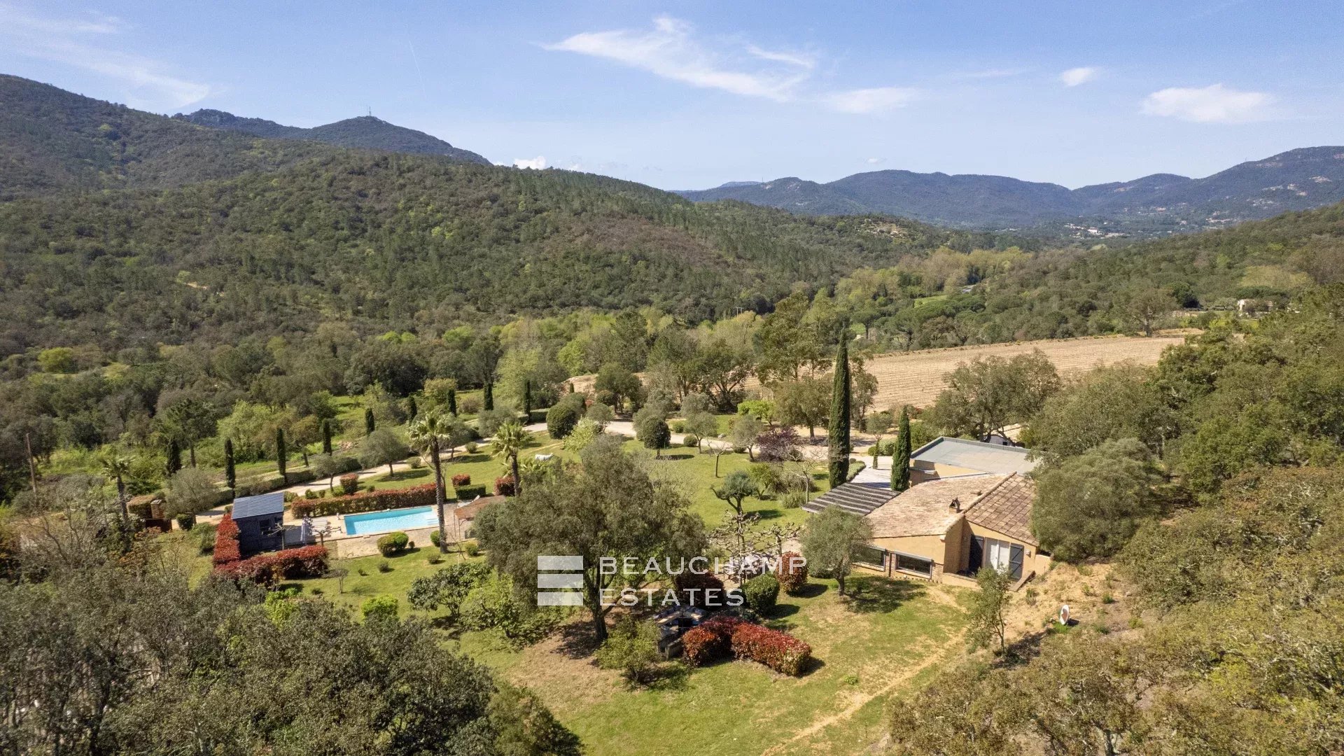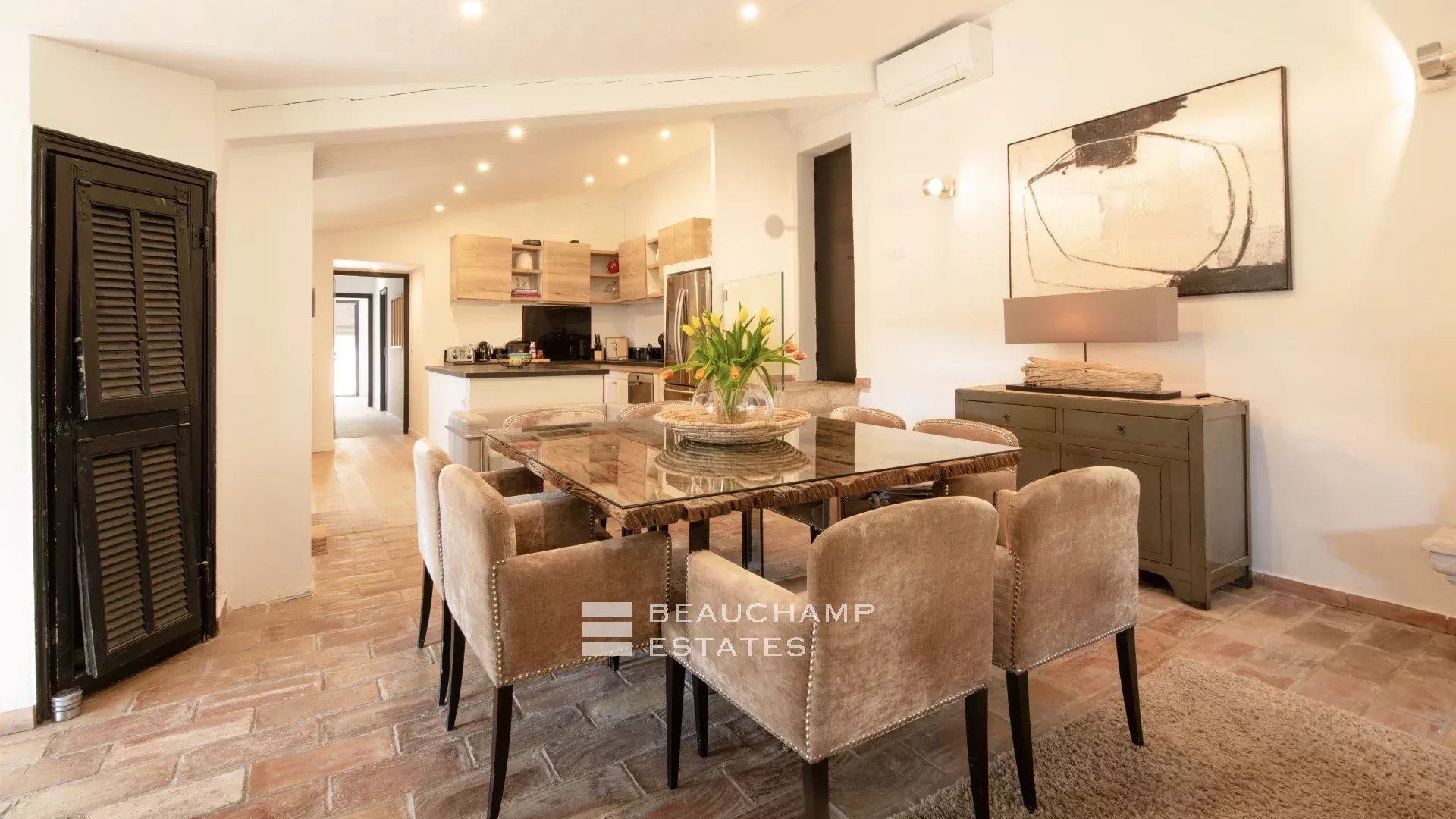 Charmante propriété située dans un coin très paisible à 10 minutes du centre ville de Sainte-Maxime. Avec une superficie de 200m2 cette bergerie entièrement rénovée se compose de 4 chambres avec chacune leur salles de bain, d'un salon et salle à manger extérieur avec coin barbecue . La villa est entièrement climatisée et possède une belle exposition avec une vue dégagée sur les collines.