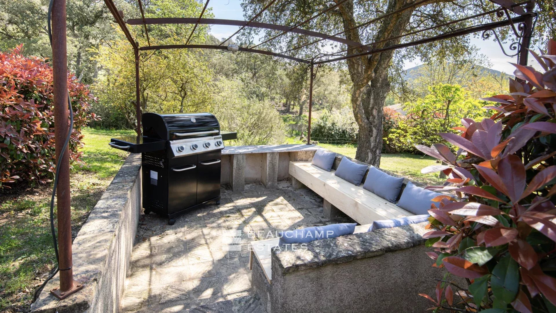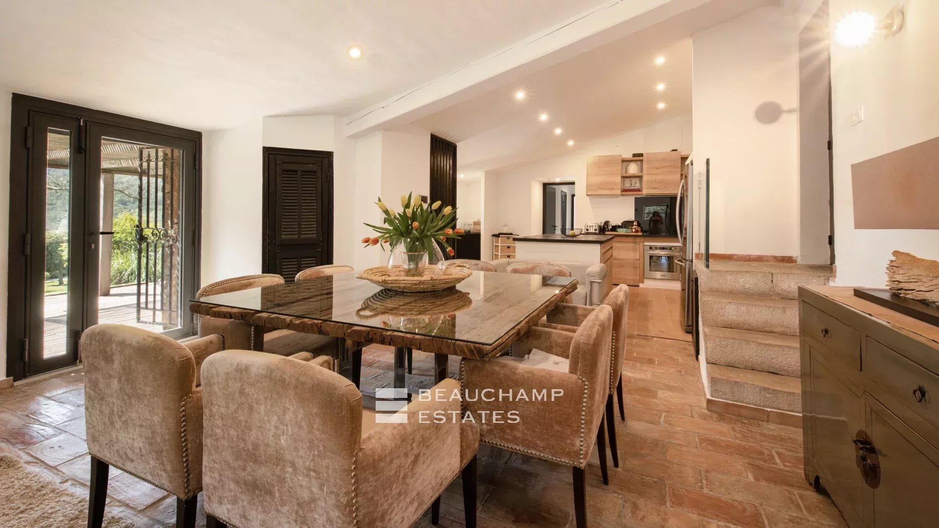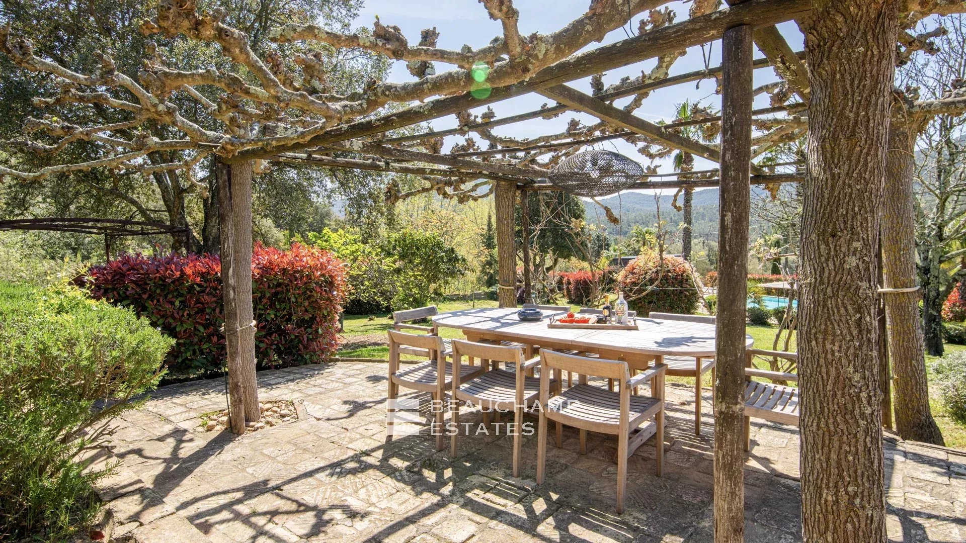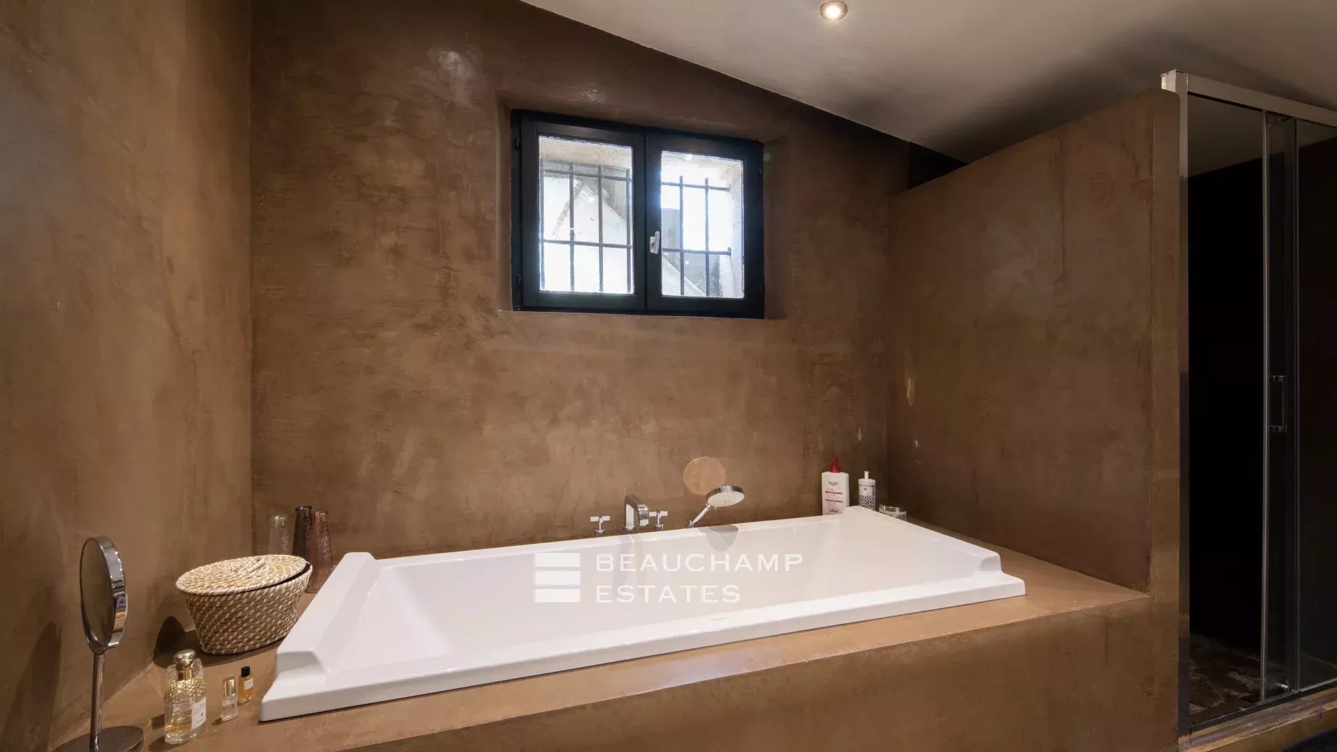 Charmante propriété située dans un coin très paisible à 10 minutes du centre ville de Sainte-Maxime. Avec une superficie de 200m2 cette bergerie entièrement rénovée se compose de 4 chambres avec chacune leur salles de bain, d'un salon et salle à manger extérieur avec coin barbecue . La villa est entièrement climatisée et possède une belle exposition avec une vue dégagée sur les collines.