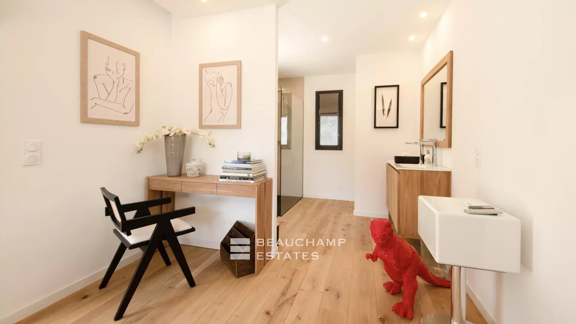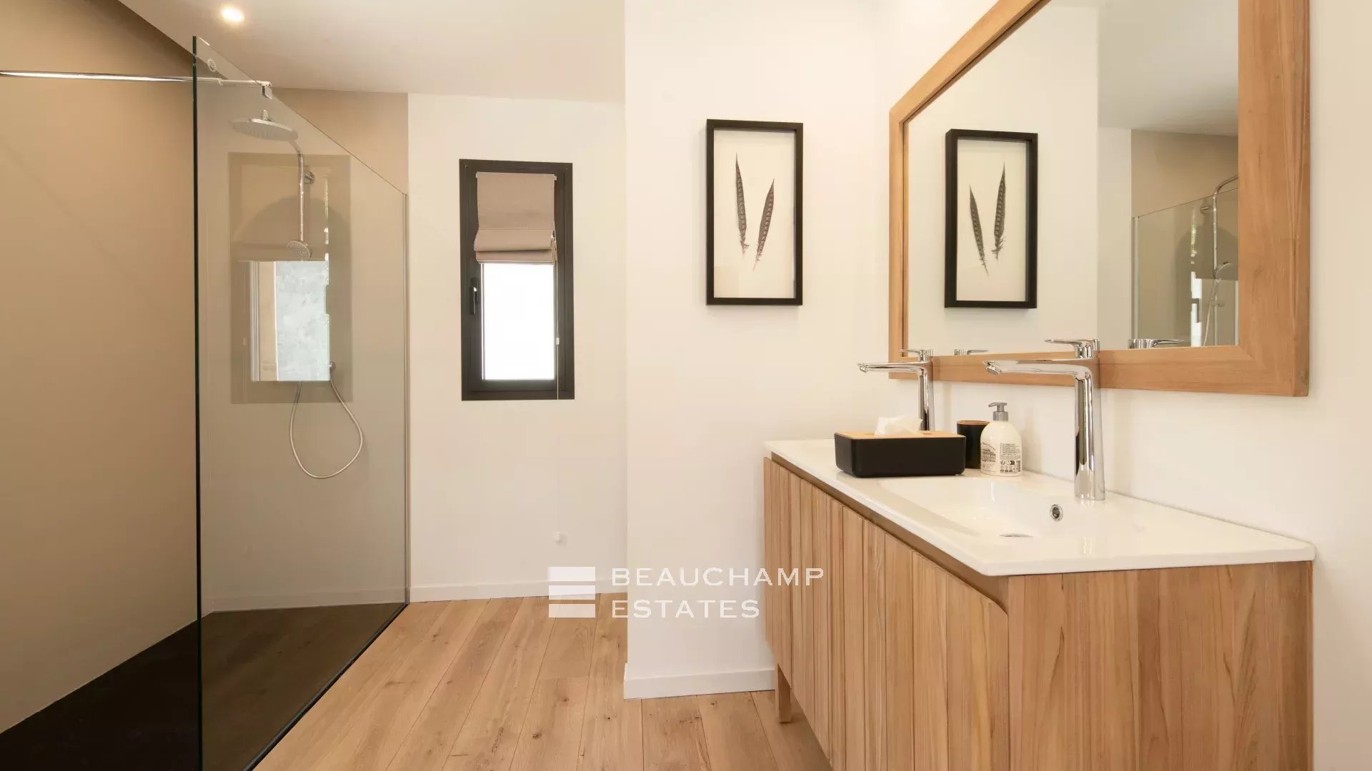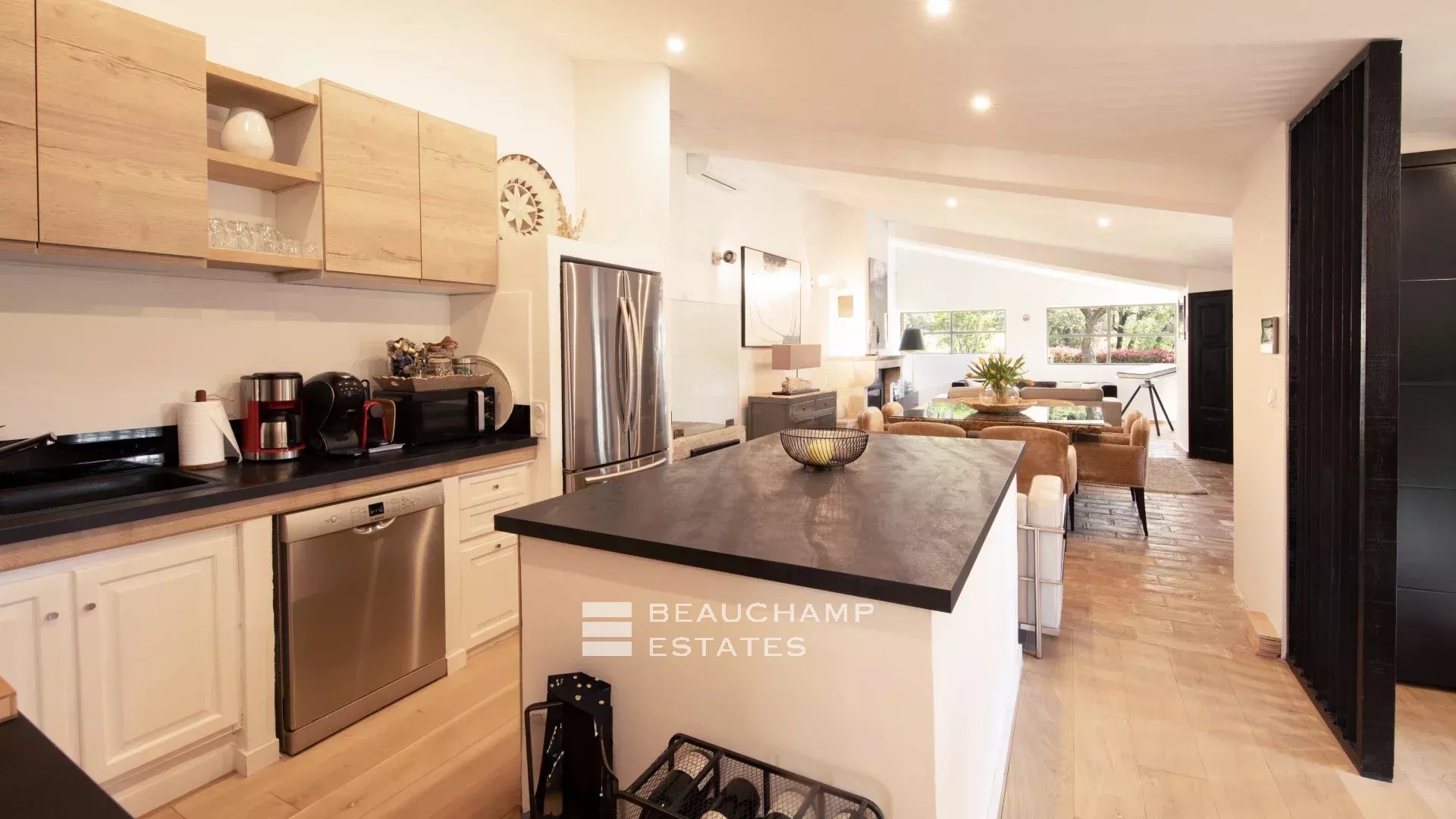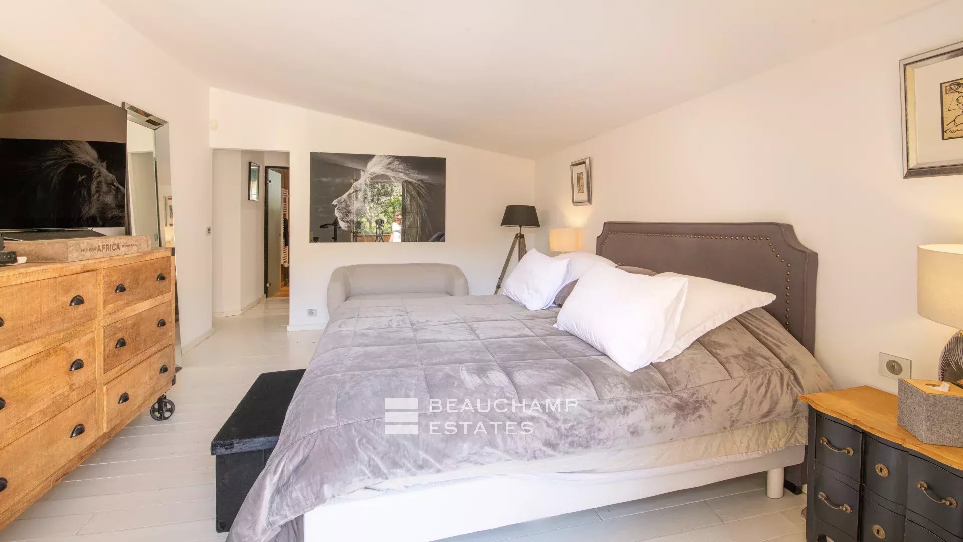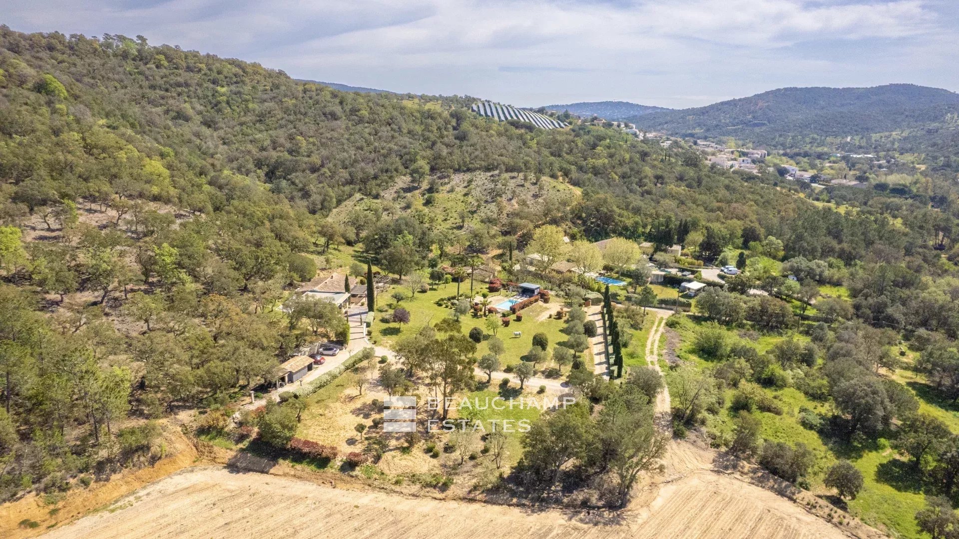 Charmante propriété située dans un coin très paisible à 10 minutes du centre ville de Sainte-Maxime. Avec une superficie de 200m2 cette bergerie entièrement rénovée se compose de 4 chambres avec chacune leur salles de bain, d'un salon et salle à manger extérieur avec coin barbecue . La villa est entièrement climatisée et possède une belle exposition avec une vue dégagée sur les collines.