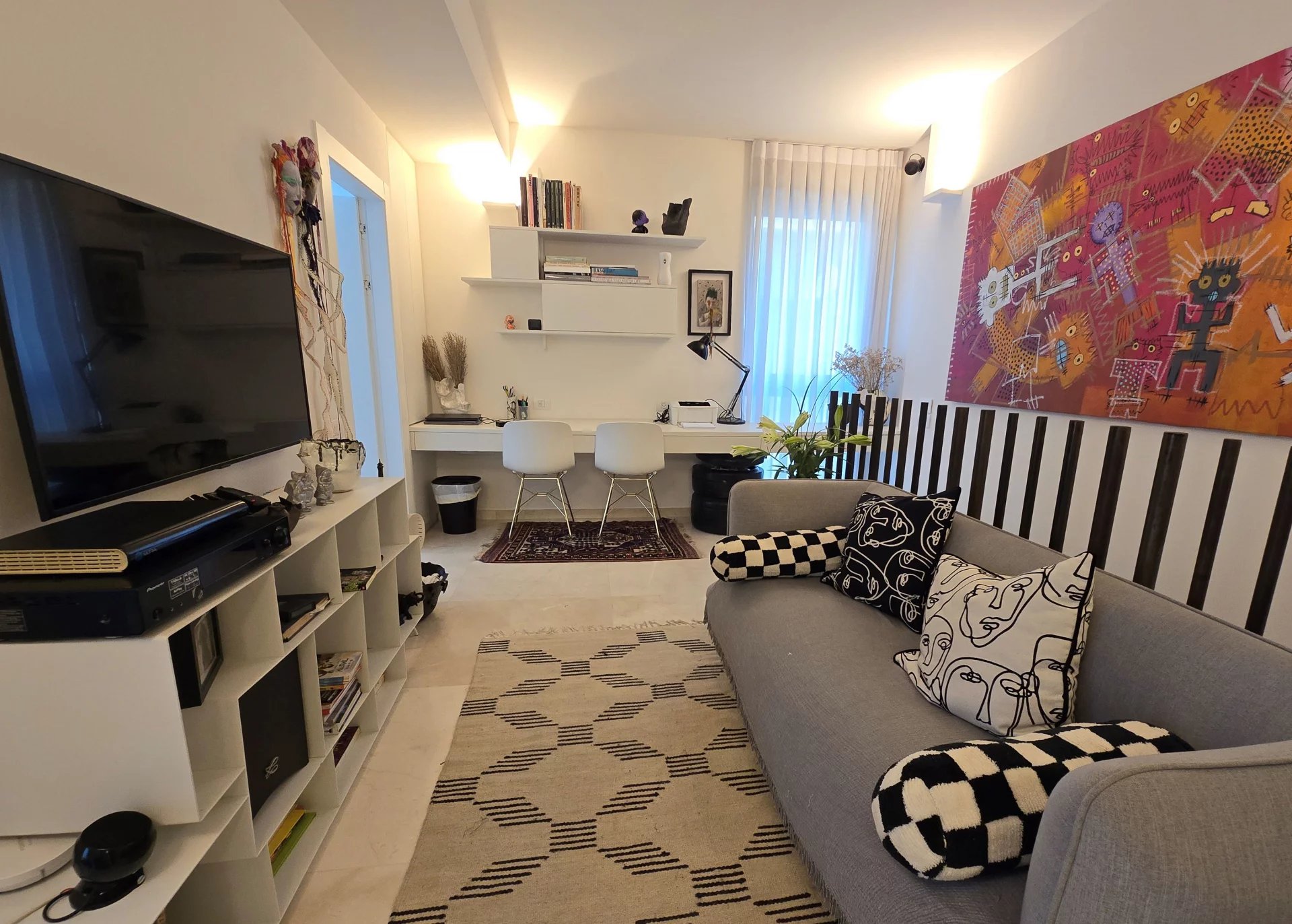 A 150 sqm duplex apartment with a 12 sqm south-facing balcony, located on a quiet street in Central Tel Aviv. Finished to a high standard, the property offers light-filled interiors and generous living space across two levels.