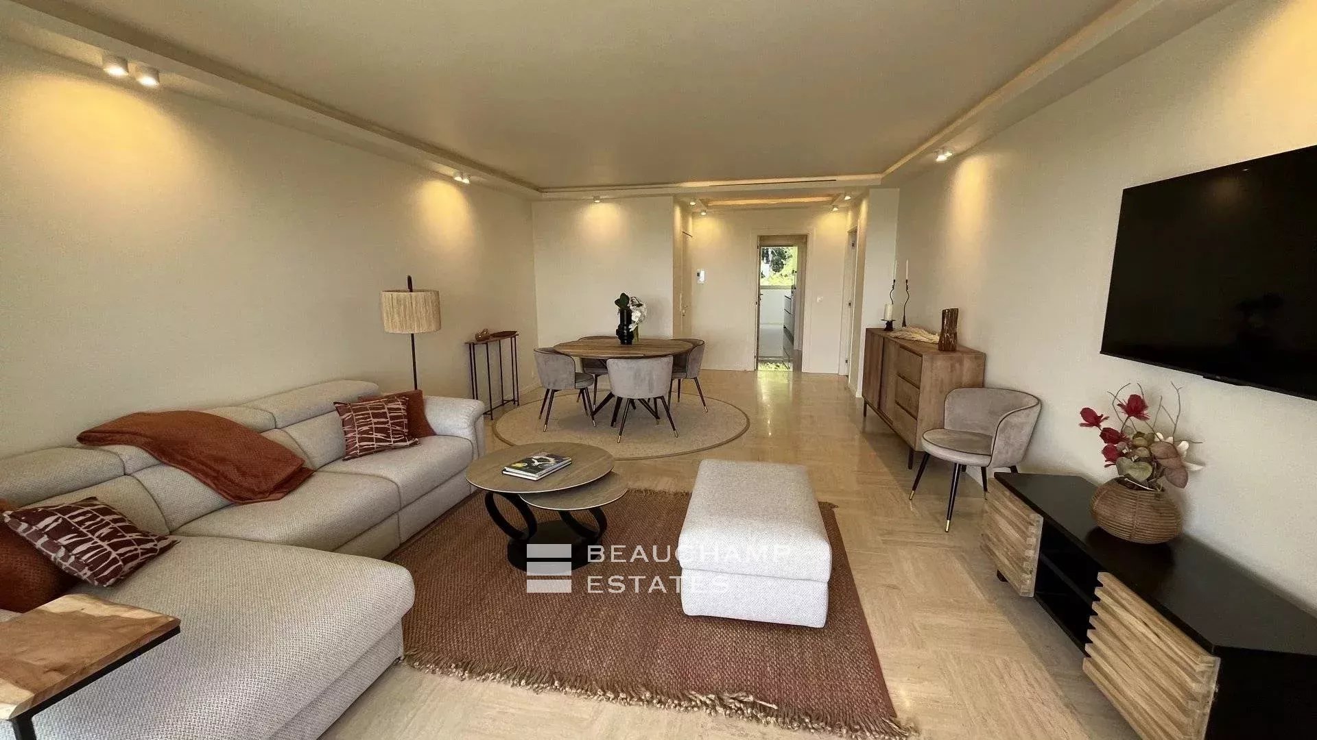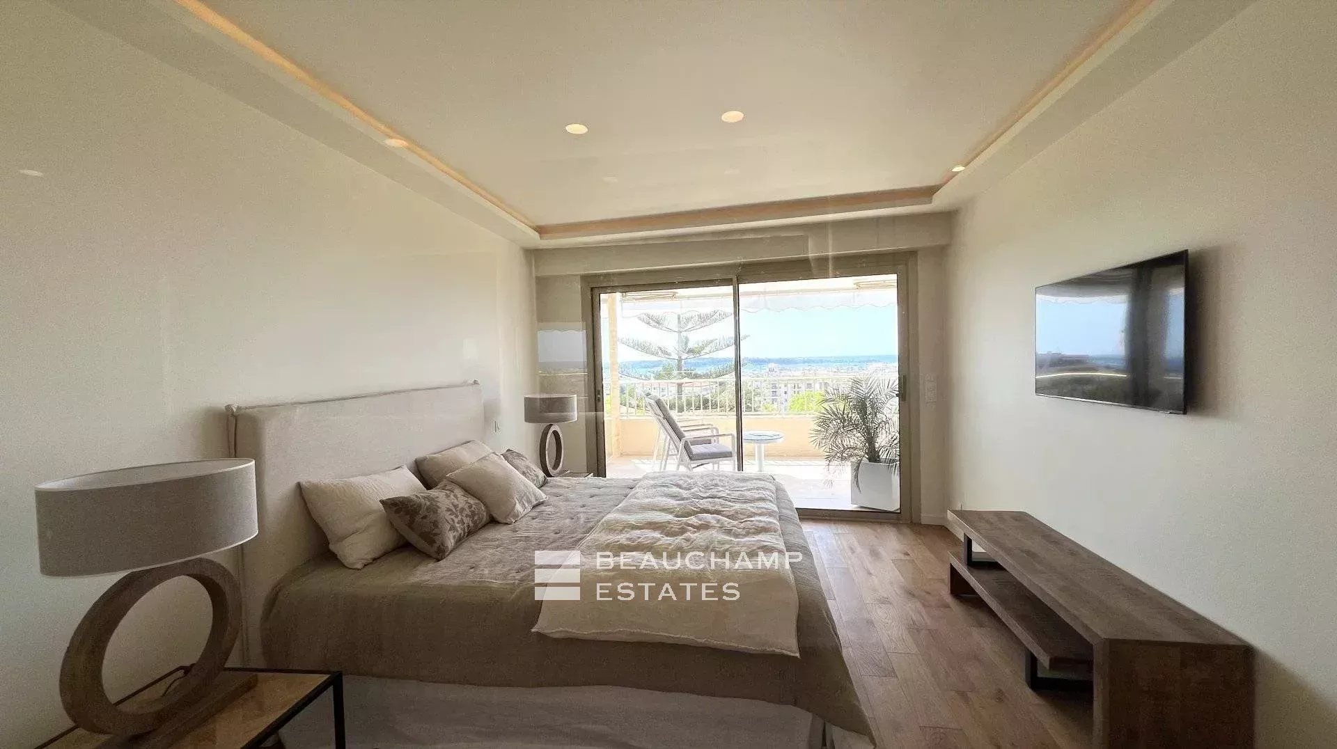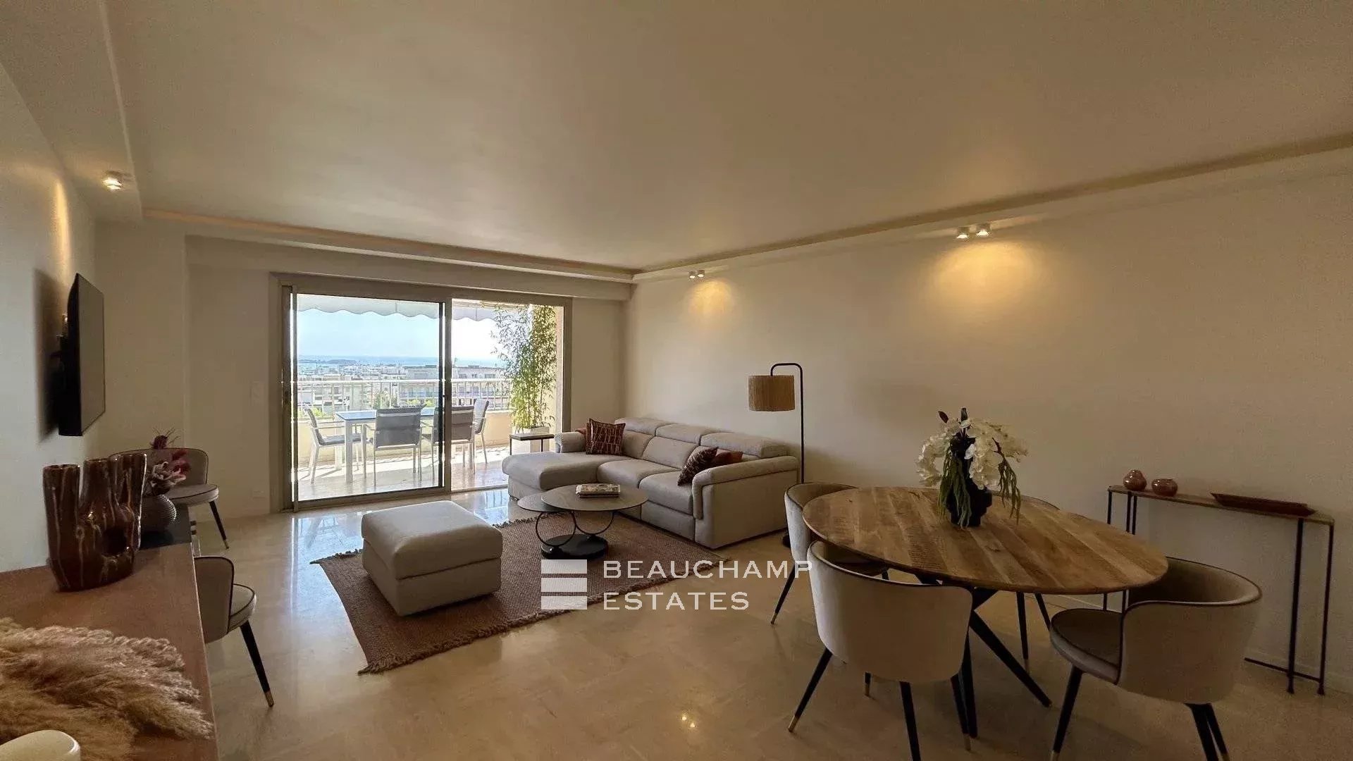 Découvrez ce superbe appartement de 4 pièces, entièrement rénové, à quelques pas de la célèbre rue d’Antibes, dans l’esprit raffiné de la Basse Californie. Offrant 115 m² habitables (103,69 m² Carrez), il séduit par un séjour lumineux ouvrant sur une remarquable terrasse d’environ 25 m², face à une vue mer panoramique.