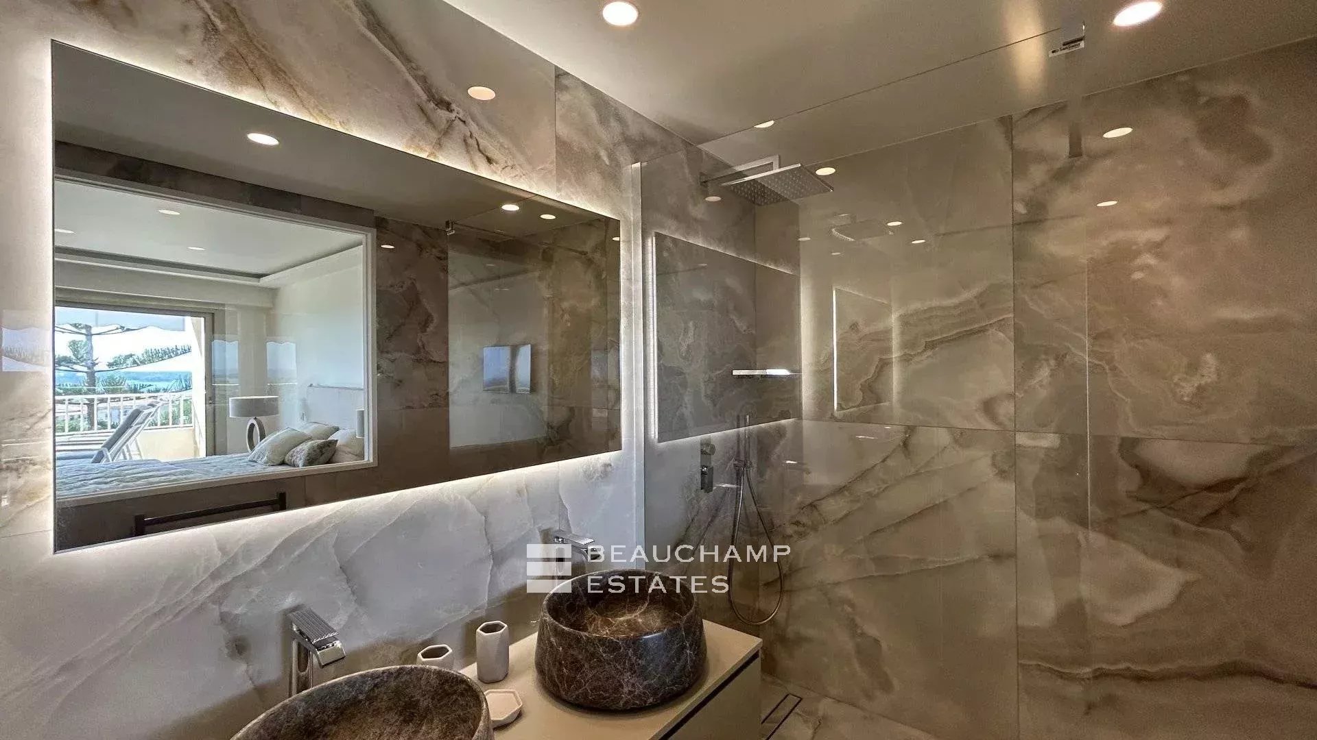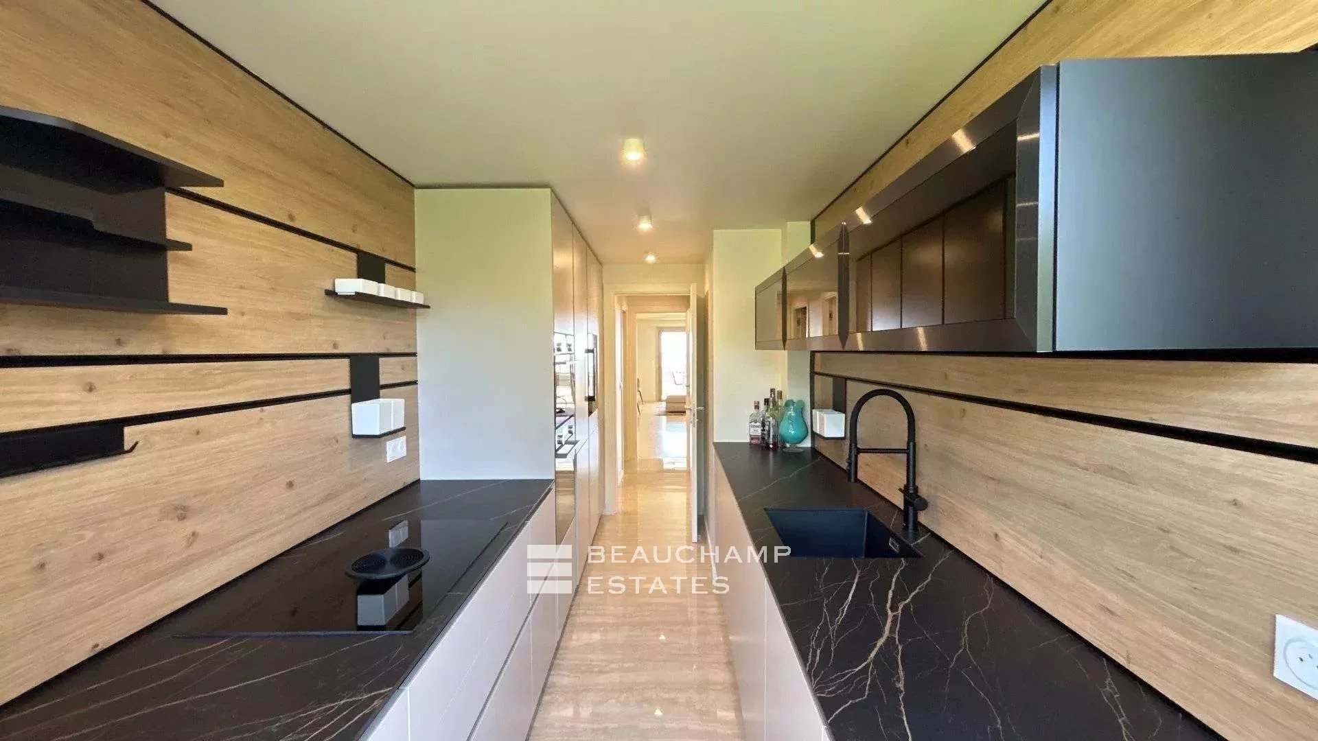 La cuisine indépendante, entièrement équipée, ravira les épicuriens. La master bedroom avec vue mer dispose de sa salle de bain privative et d’un dressing. Deux autres chambres en suite, chacune avec salle de douche — dont l’une pouvant bénéficier d’un accès indépendant — complètent cet agencement idéal.
