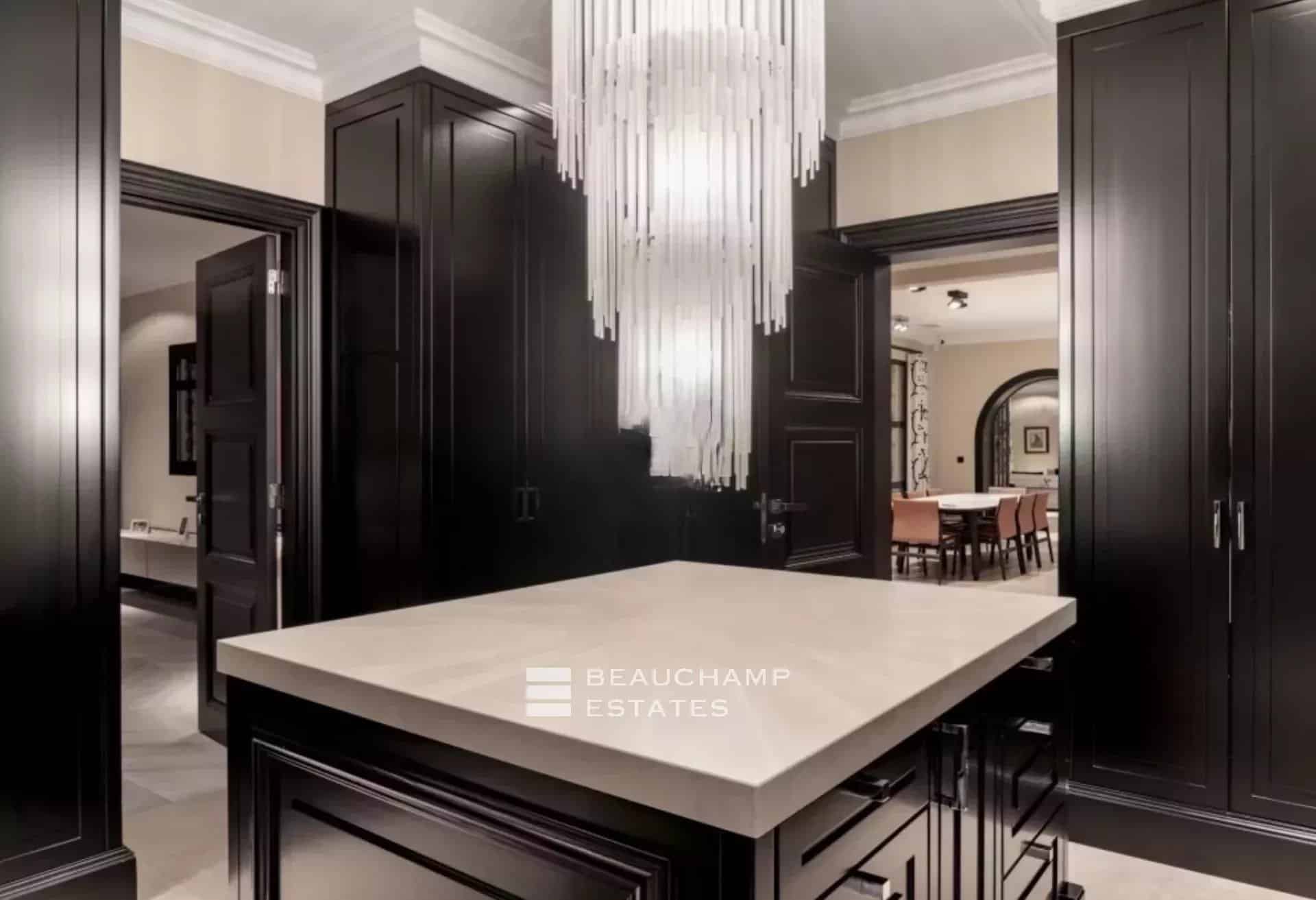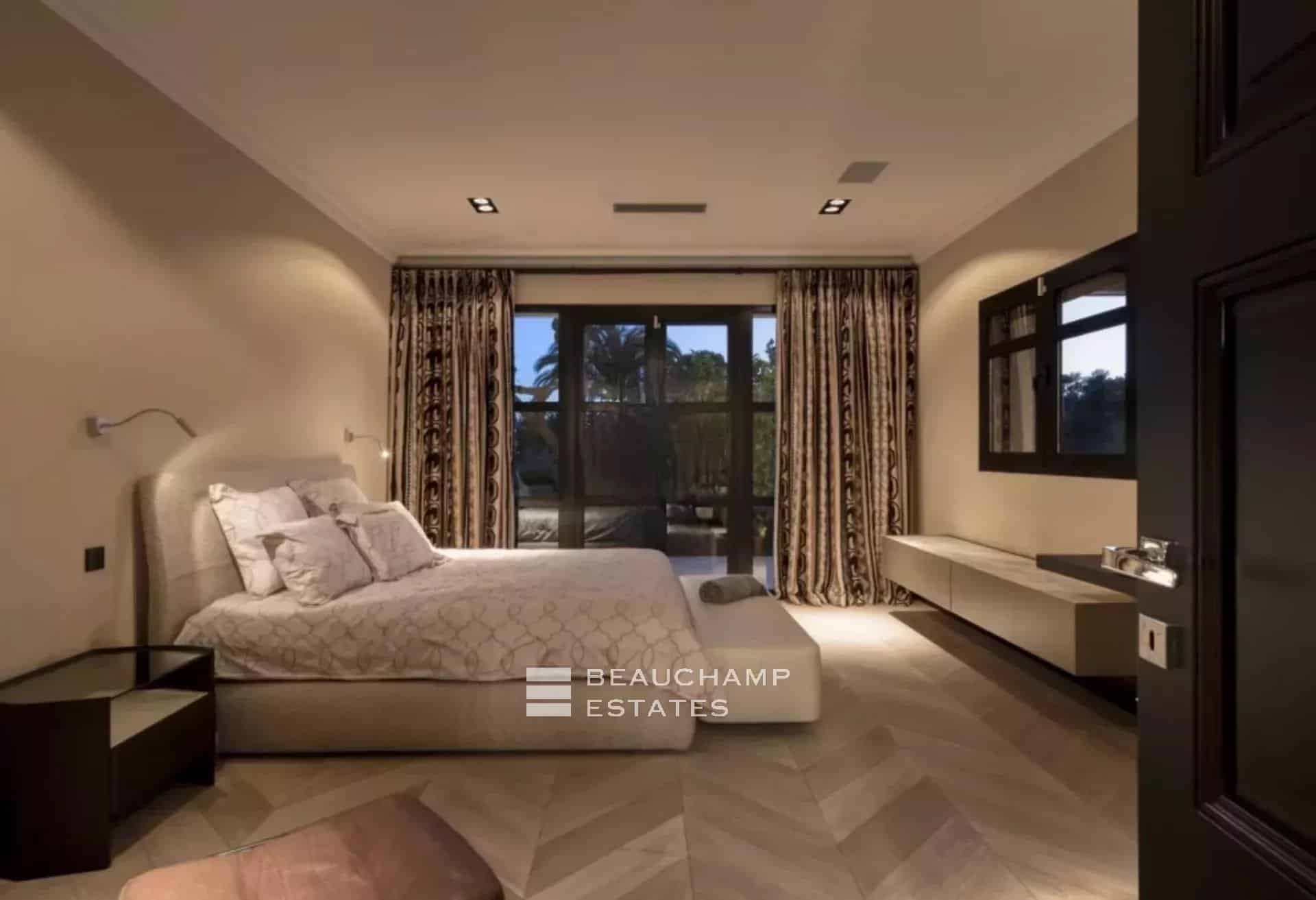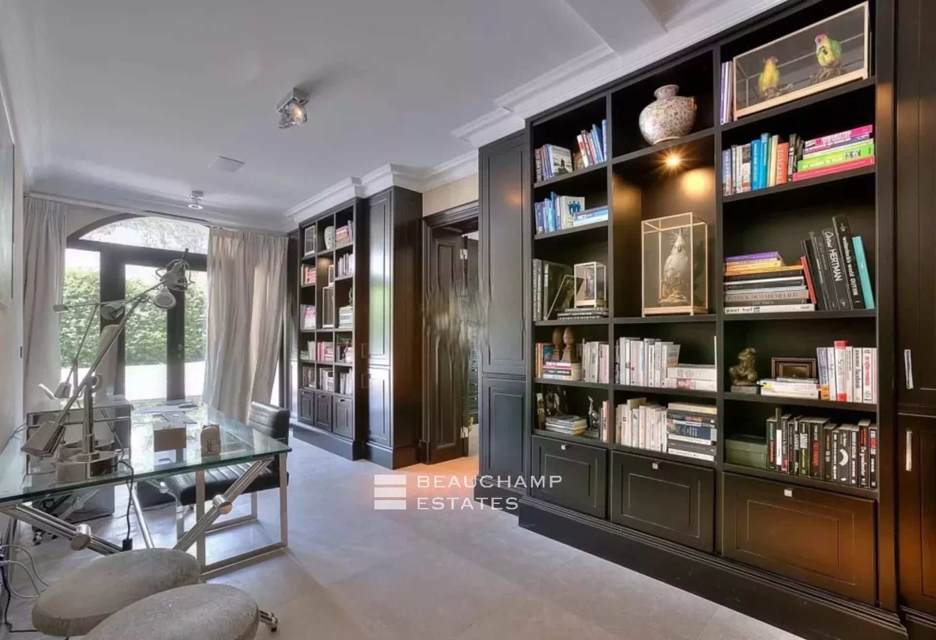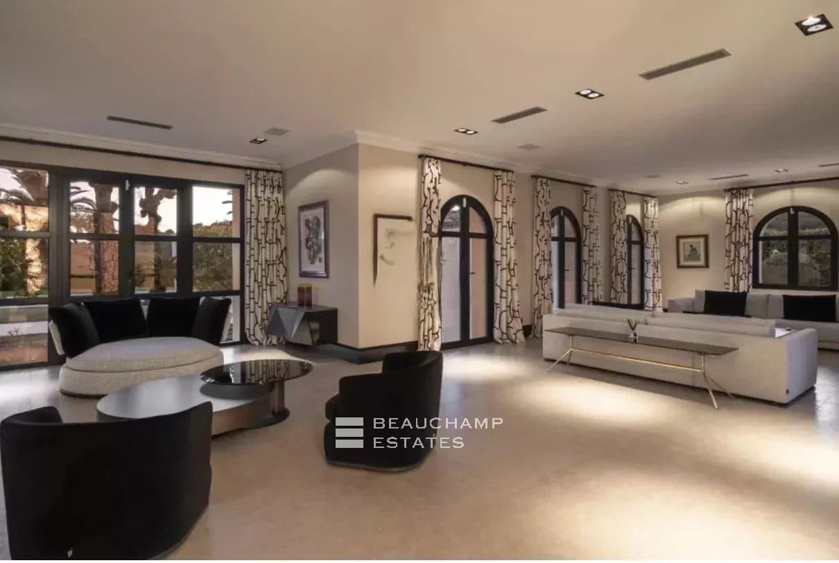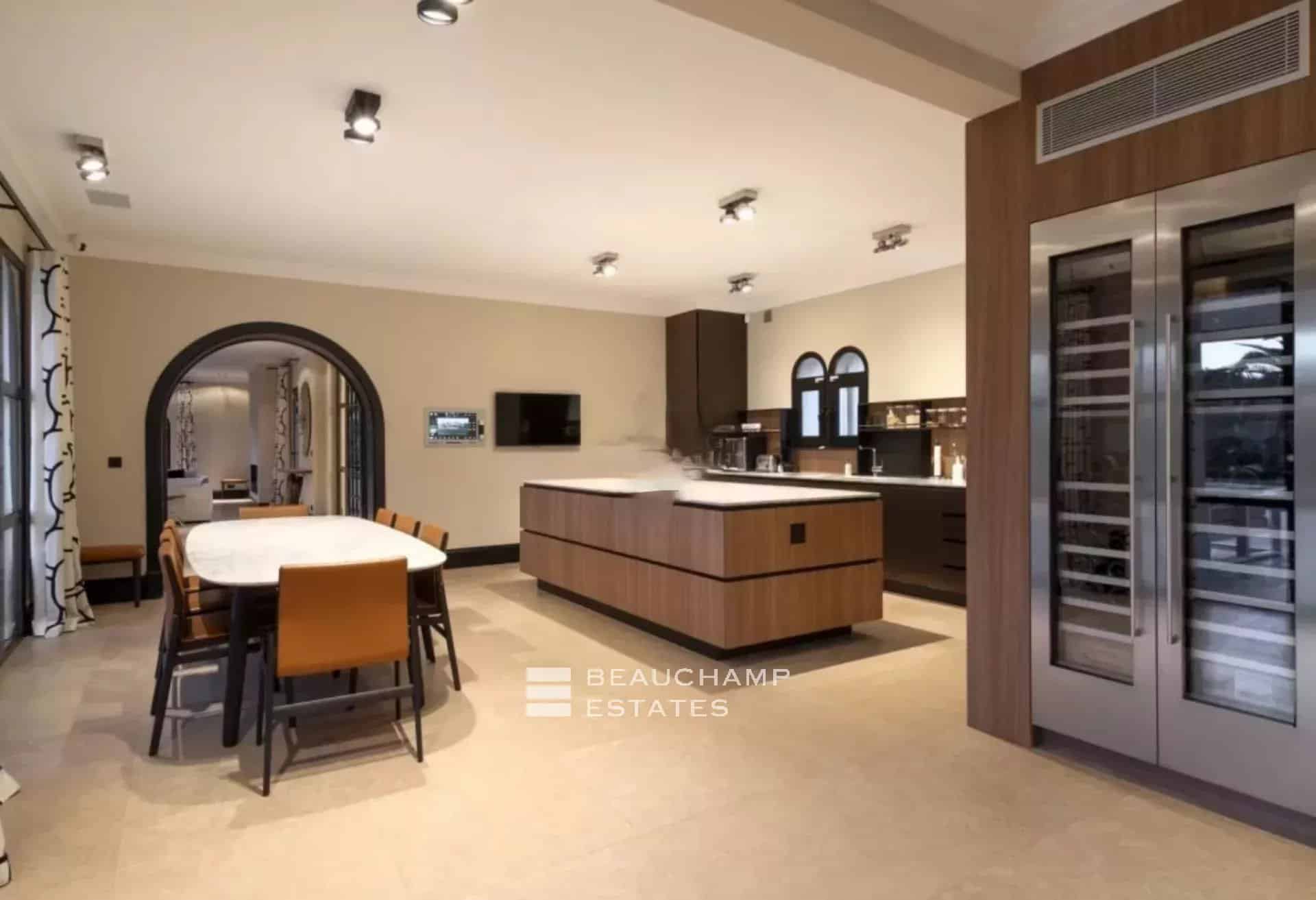 Outre les beaux volumes de réception, ainsi qu'une vaste cuisine (équipée Gaggeneau), cette villa dispose de 5 chambres en suite dont une sublime de chambre de maître de plain-pied, d'une family room avec bureau et salon TV. Une lingerie et un garage fermé viennent compléter cet ensemble. Le volet technique n'est pas en reste avec : climatisation réversible, chauffage au sol dans les salles de bain et la cuisine, système domotique pouvant gérer l'ensemble de la maison (caméra, chauffage, lumière...) à distance, un système de musique intégré dans toutes les pièces, une alarme volumétrique, des caméras extérieures, un puits alimentant l'eau du jardin.