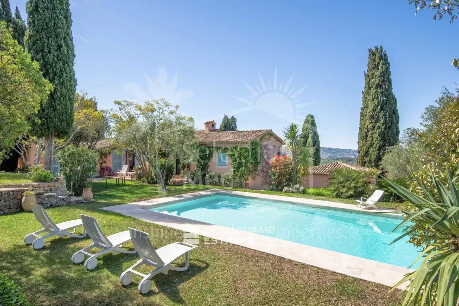 Exceptionnelle propriété provençale traditionnelle à vendre à seulement 5 minutes en voiture du village de Valbonne,(Plascassier) avec des vues dominantes sur la campagne et la mer.