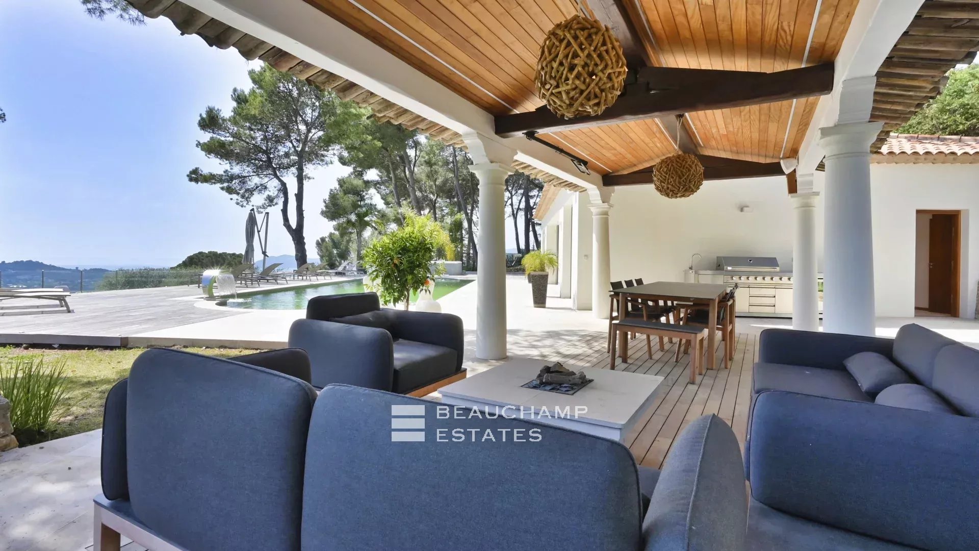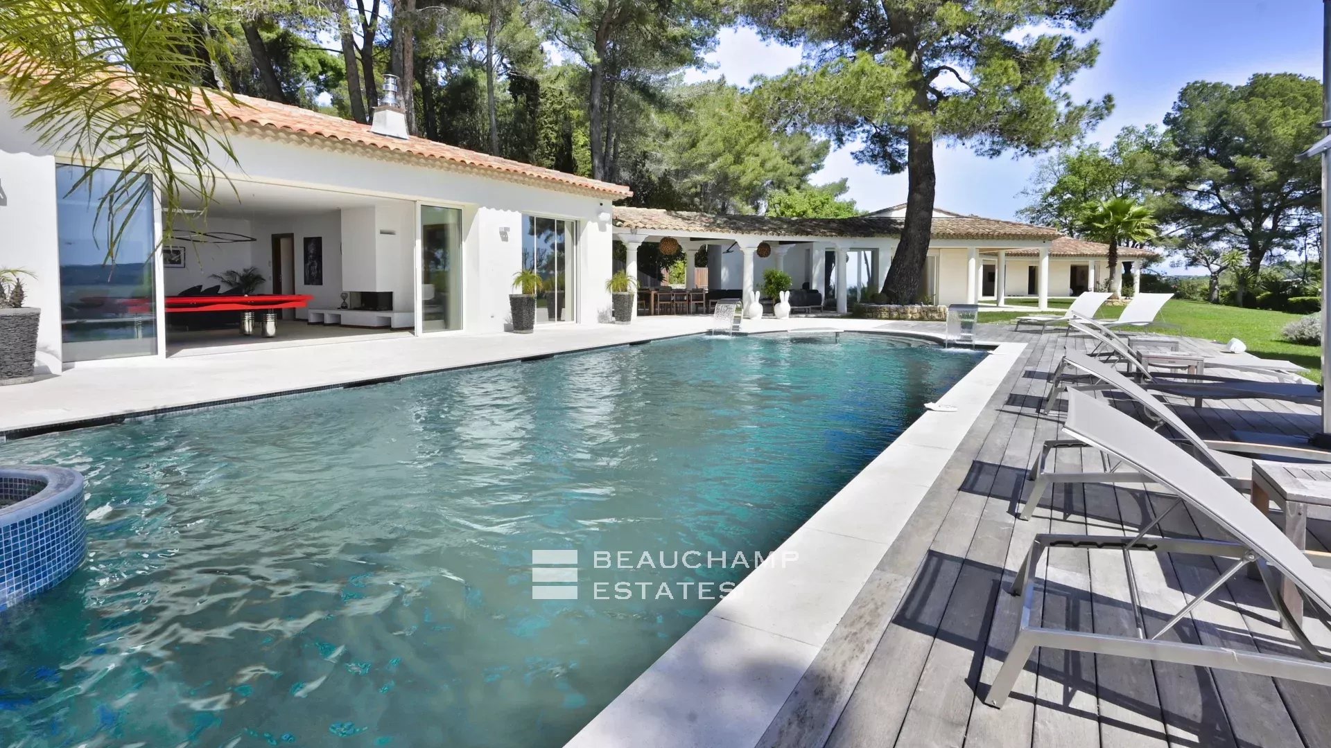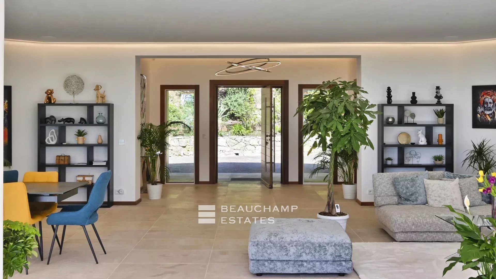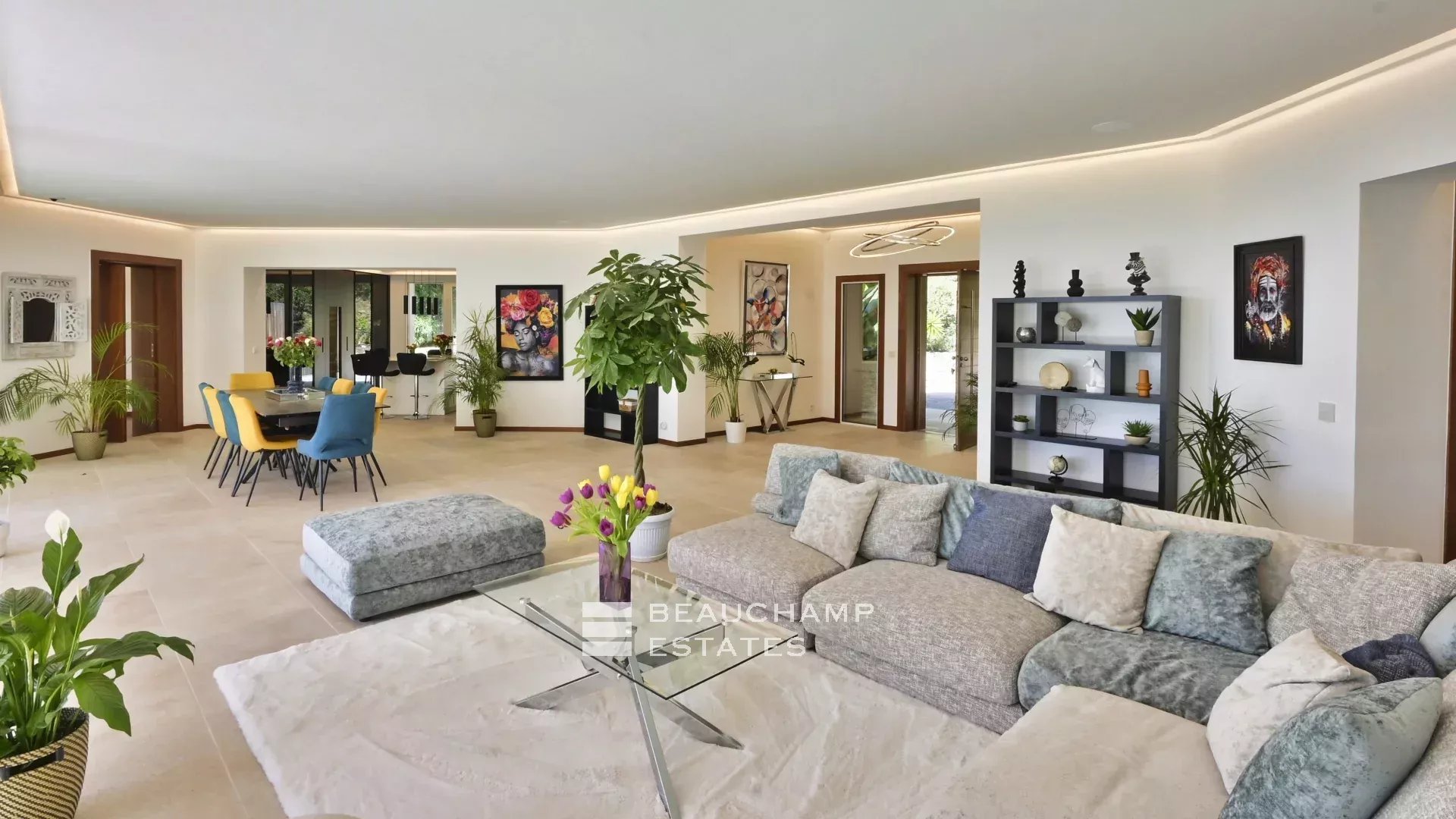 Situé au sein d'un des quartiers résidentiels les plus réputées de Mougins, cette somptueuse propriété entièrement rénovée et dominant la baie de Cannes, bénéficie d’une magnifique vue sur la mer, les collines et le village de Mougins.