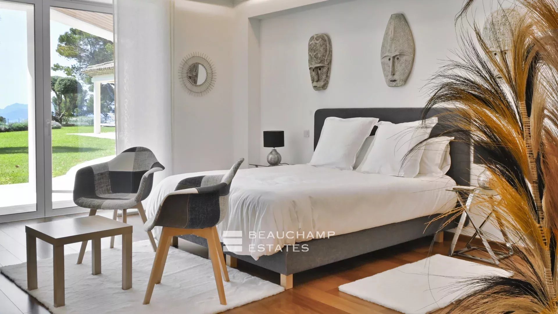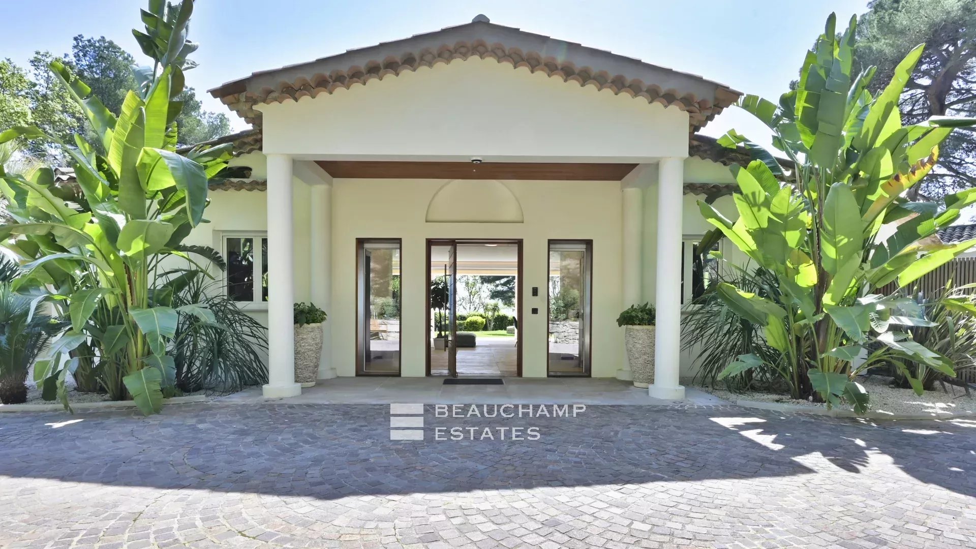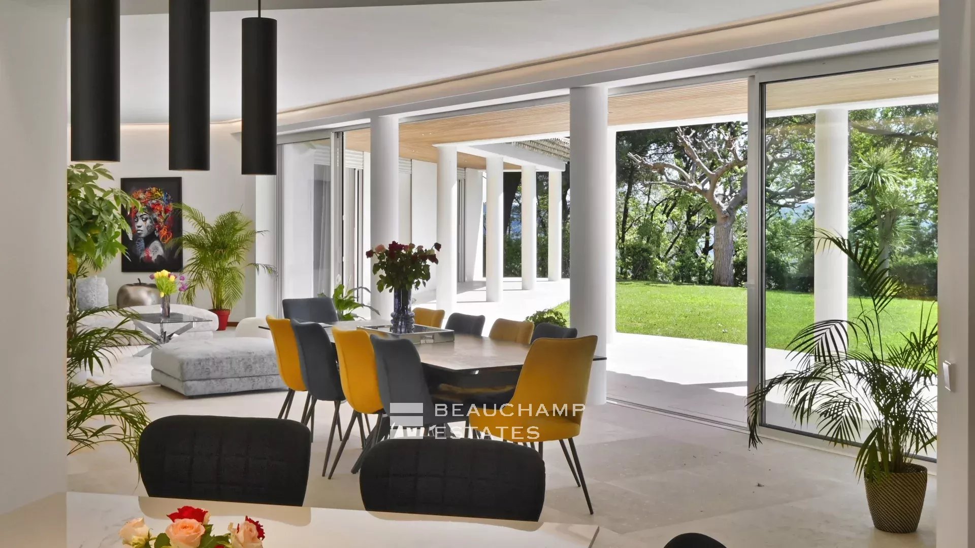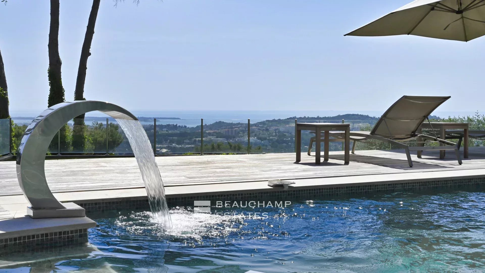 Situé au sein d'un des quartiers résidentiels les plus réputées de Mougins, cette somptueuse propriété entièrement rénovée et dominant la baie de Cannes, bénéficie d’une magnifique vue sur la mer, les collines et le village de Mougins.
