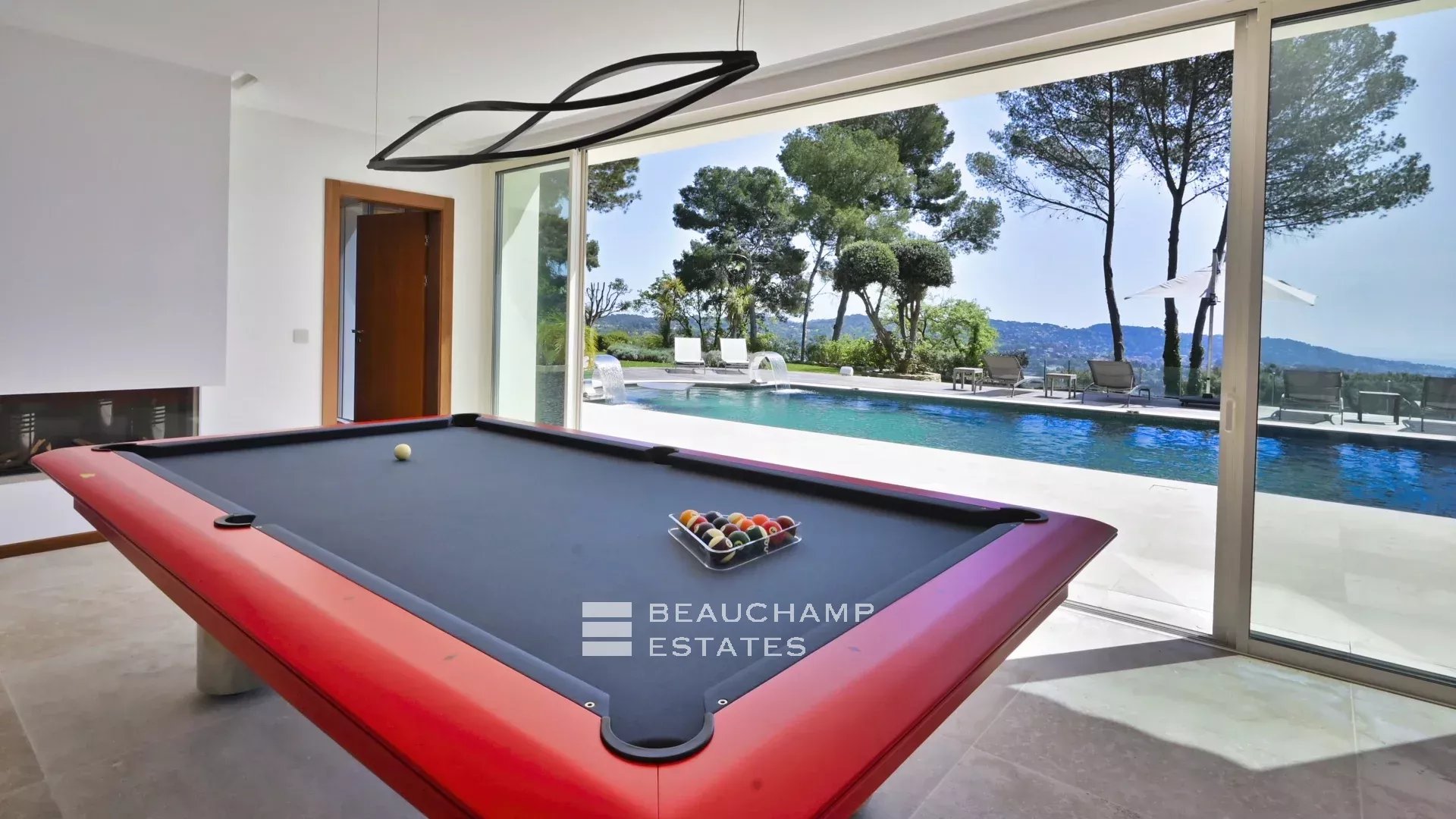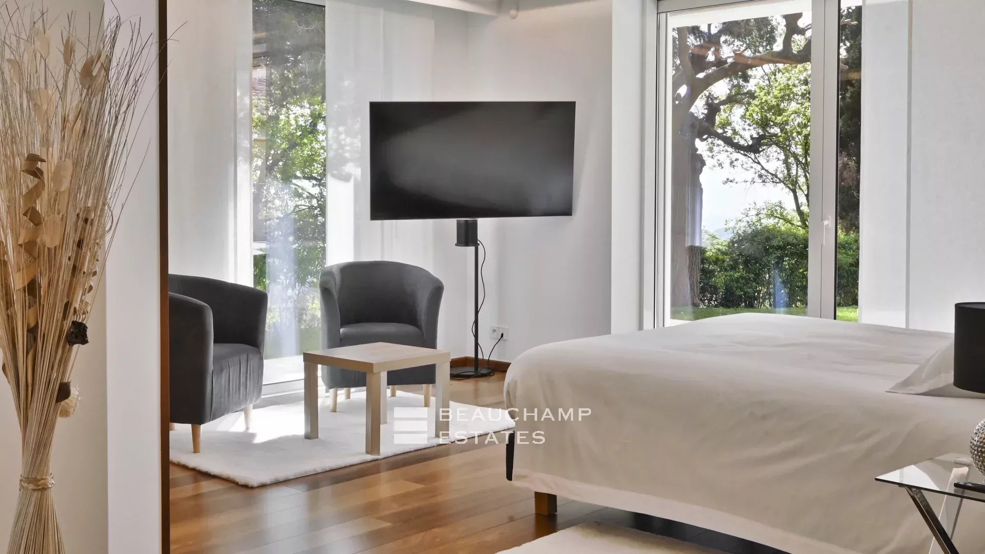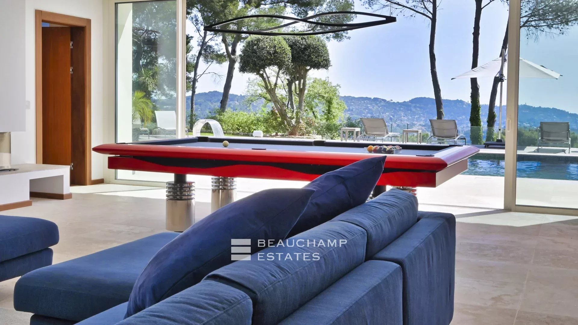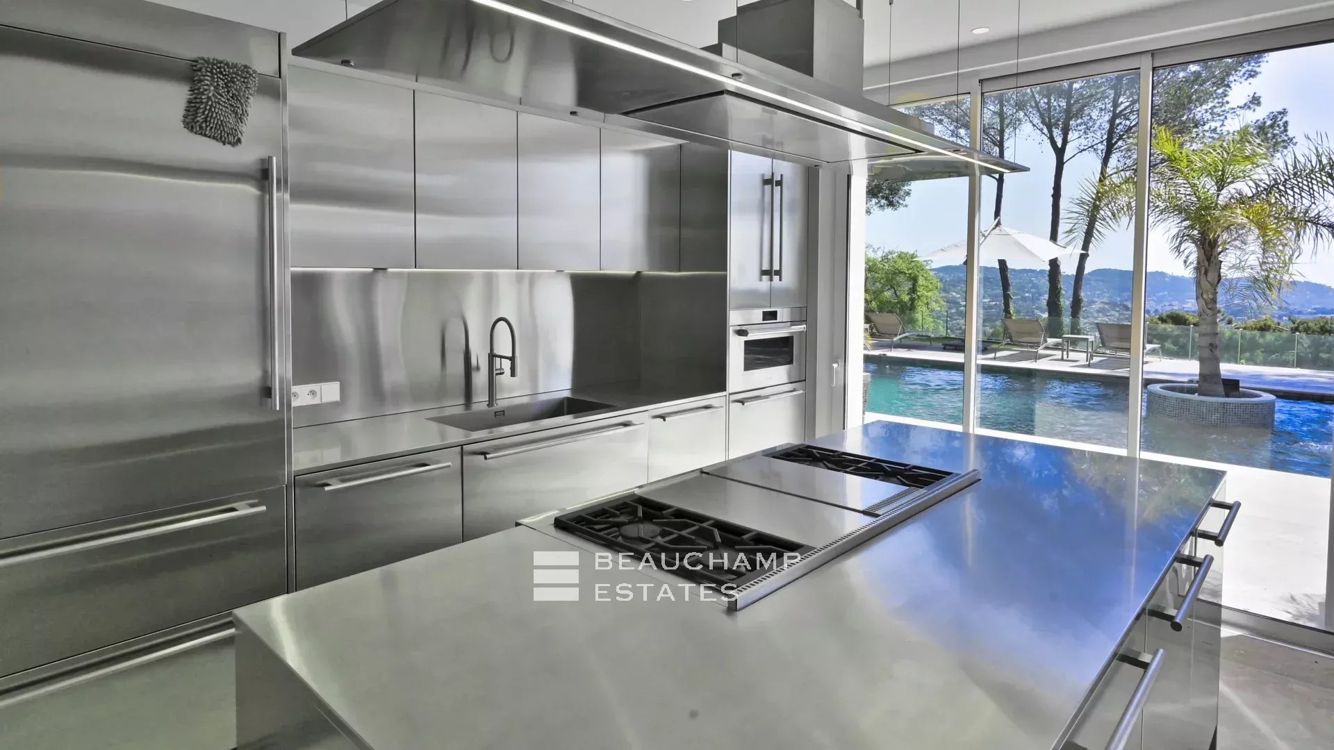 Situé au sein d'un des quartiers résidentiels les plus réputées de Mougins, cette somptueuse propriété entièrement rénovée et dominant la baie de Cannes, bénéficie d’une magnifique vue sur la mer, les collines et le village de Mougins.