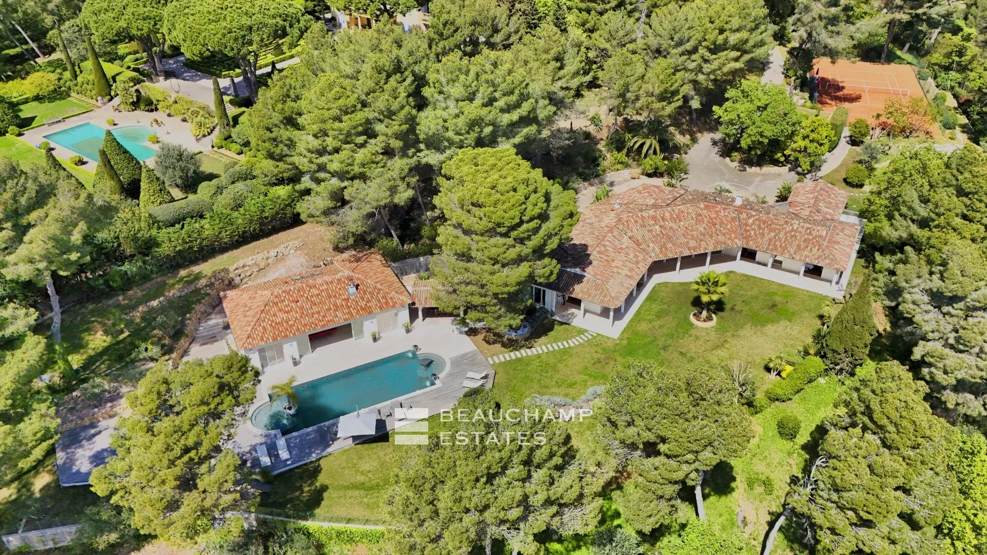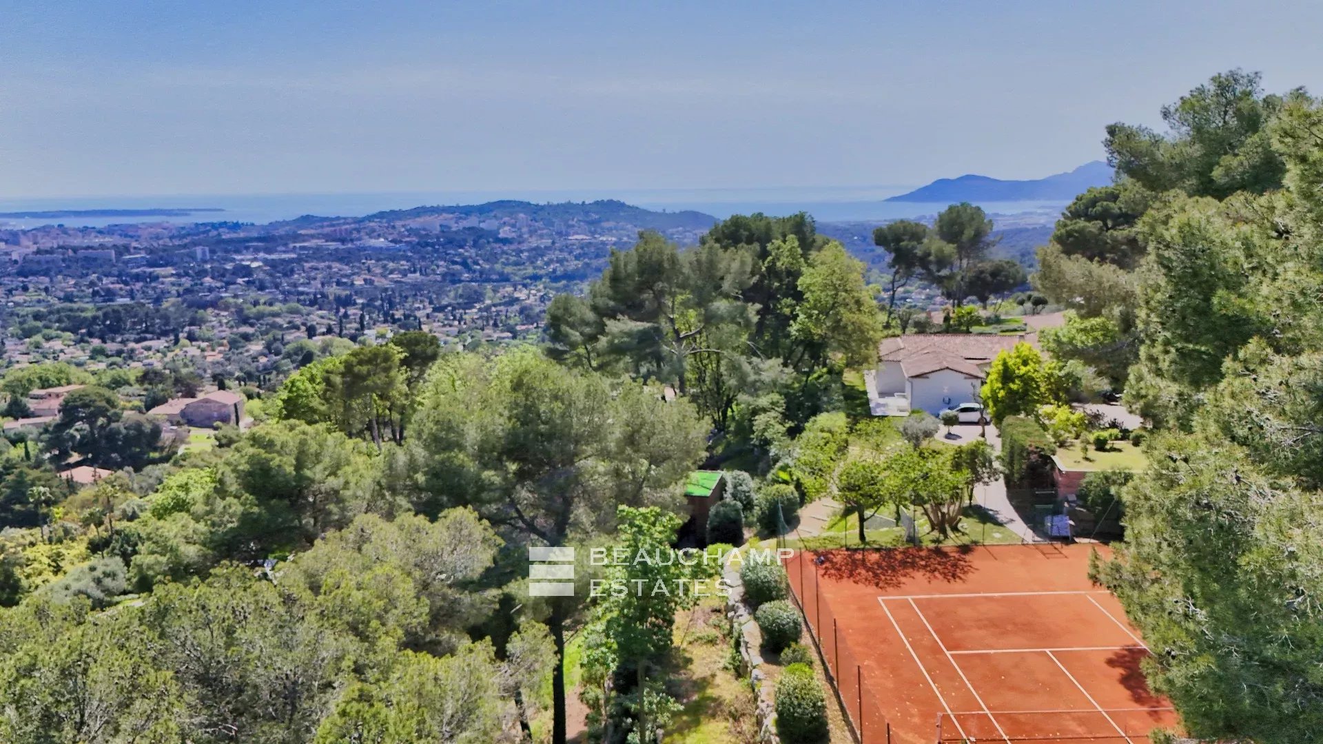 Luxueuse propriété de 5 chambres avec vue mer, piscine, terrain de tennis, salle de sport et sauna à Mougins