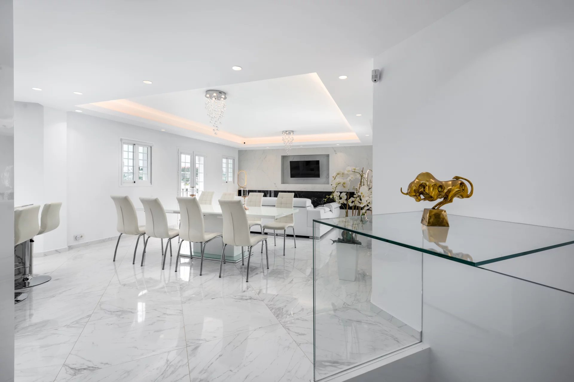 Completely renovated 3-bedroom townhouse situated in a prestigious urbanization in the heart of Nueva Andalucia´s golf valley. Built with the highest quality materials and extra features such as electric underfloor heating with separate control zones, Led spotlights and led strips with dimmers in all ceilings.