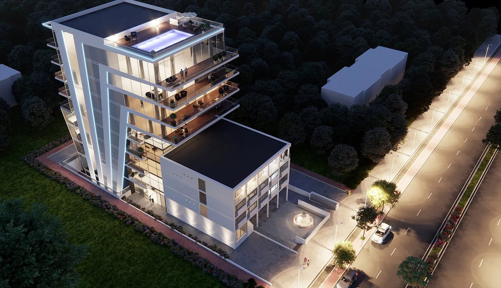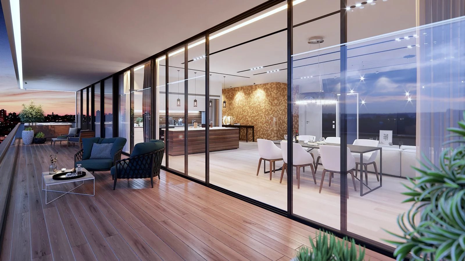 The area of the apartment is 357 square meters plus 90 square meters of balconies and a private roof with a 126 square meter pool.