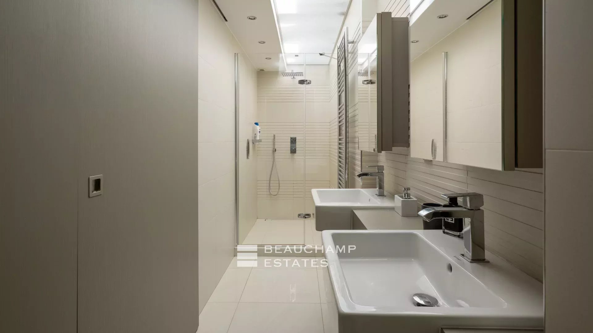 Cette superbe propriété comprend un spacieux salon avec accès à la terrasse, une cuisine entièrement équipée, deux chambres à coucher avec chacune une salle de douche attenante, et une luxueuse chambre principale avec un dressing et une salle de douche. En outre, elle dispose d'une généreuse terrasse avec un coin bar et un ascenseur privé. En outre, deux des chambres disposent d'un balcon privé de 25 mètres carrés chacune.