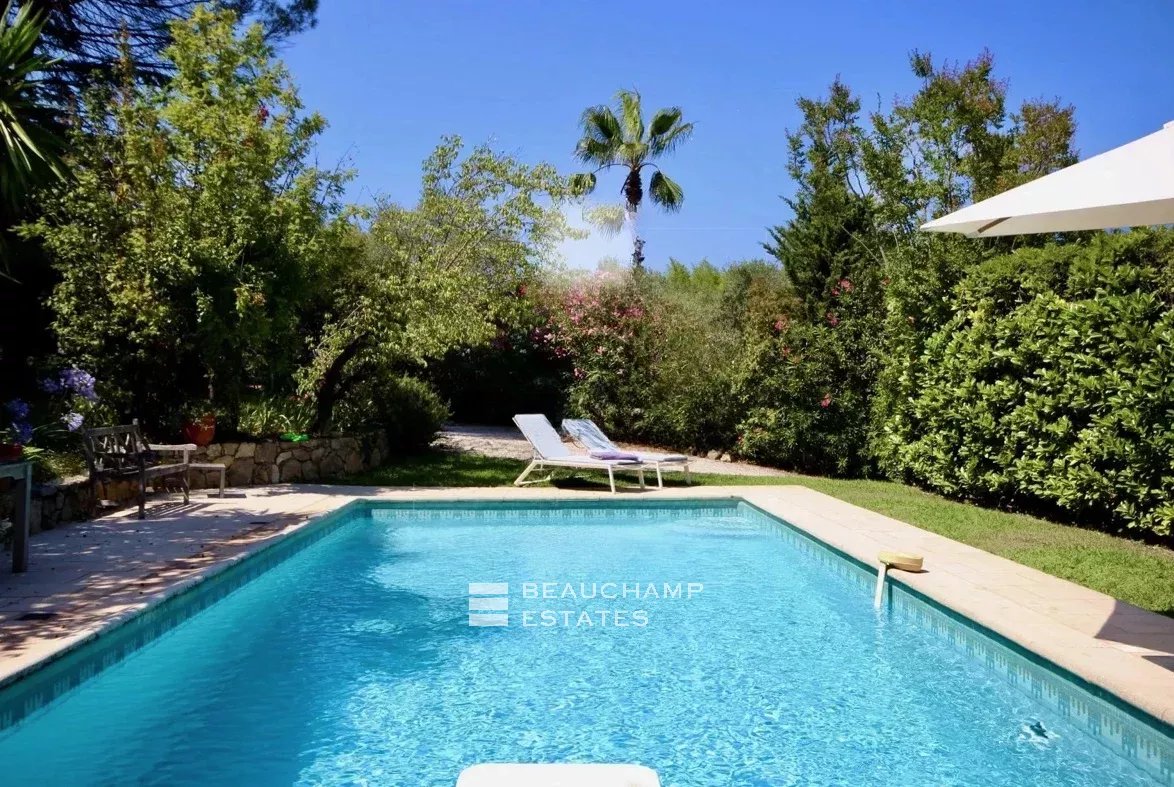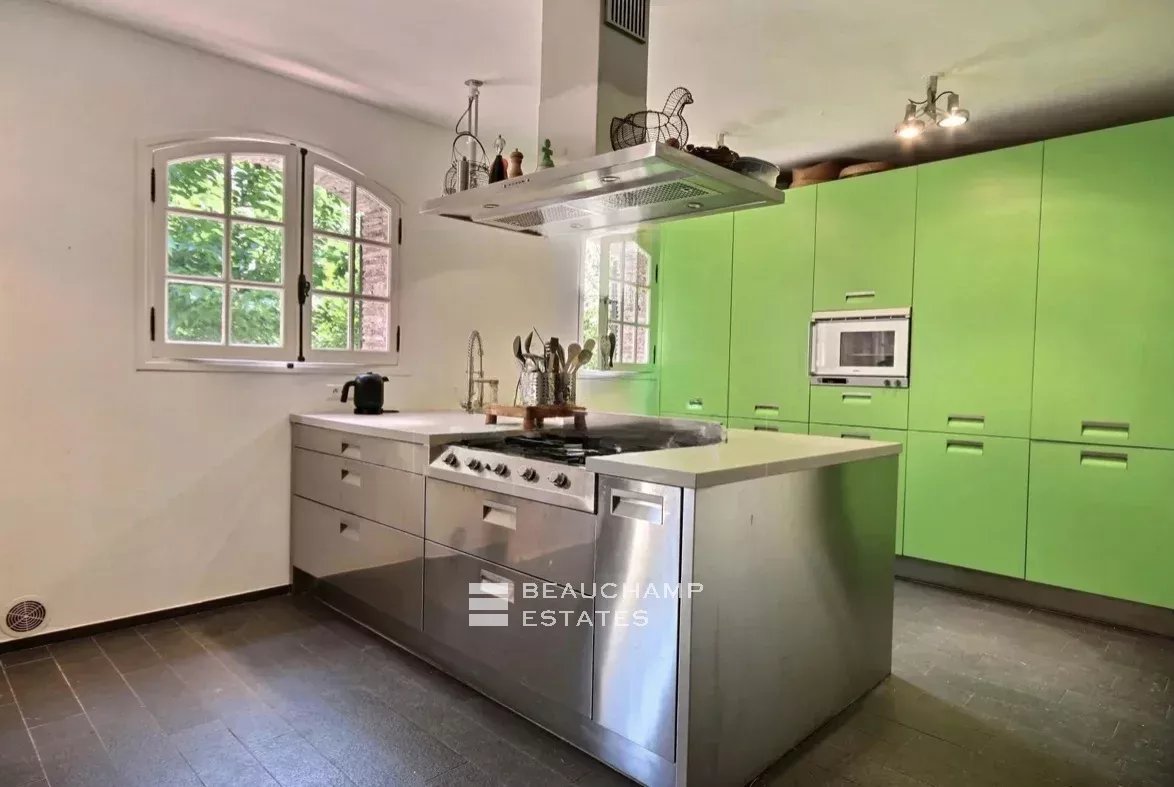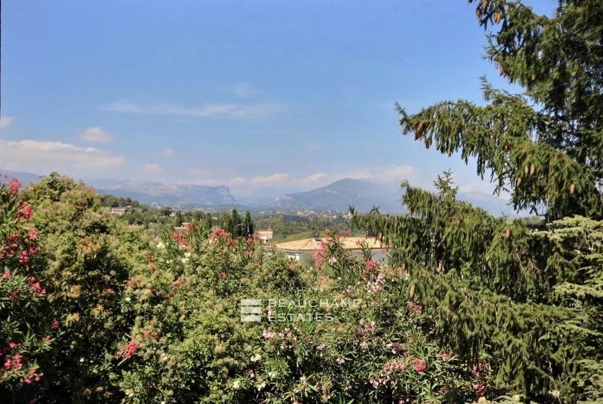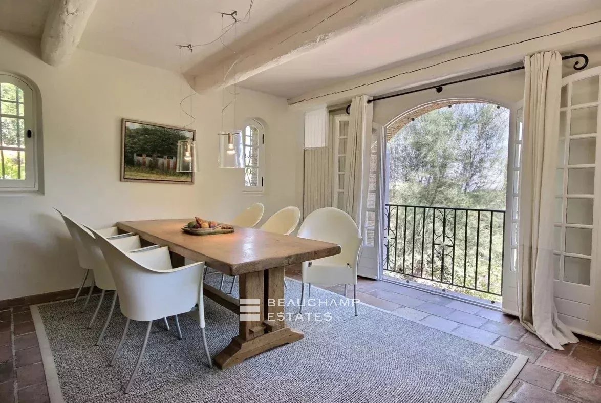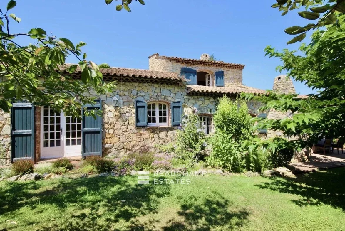 Proche du village de Valbonne et des écoles internationales : charmante provençale, style bergerie en pierres, d'une surface d'environ 190m2 + grand sous-sol avec garage, sur un très joli terrain arboré d'environ 4373 m2 avec piscine.