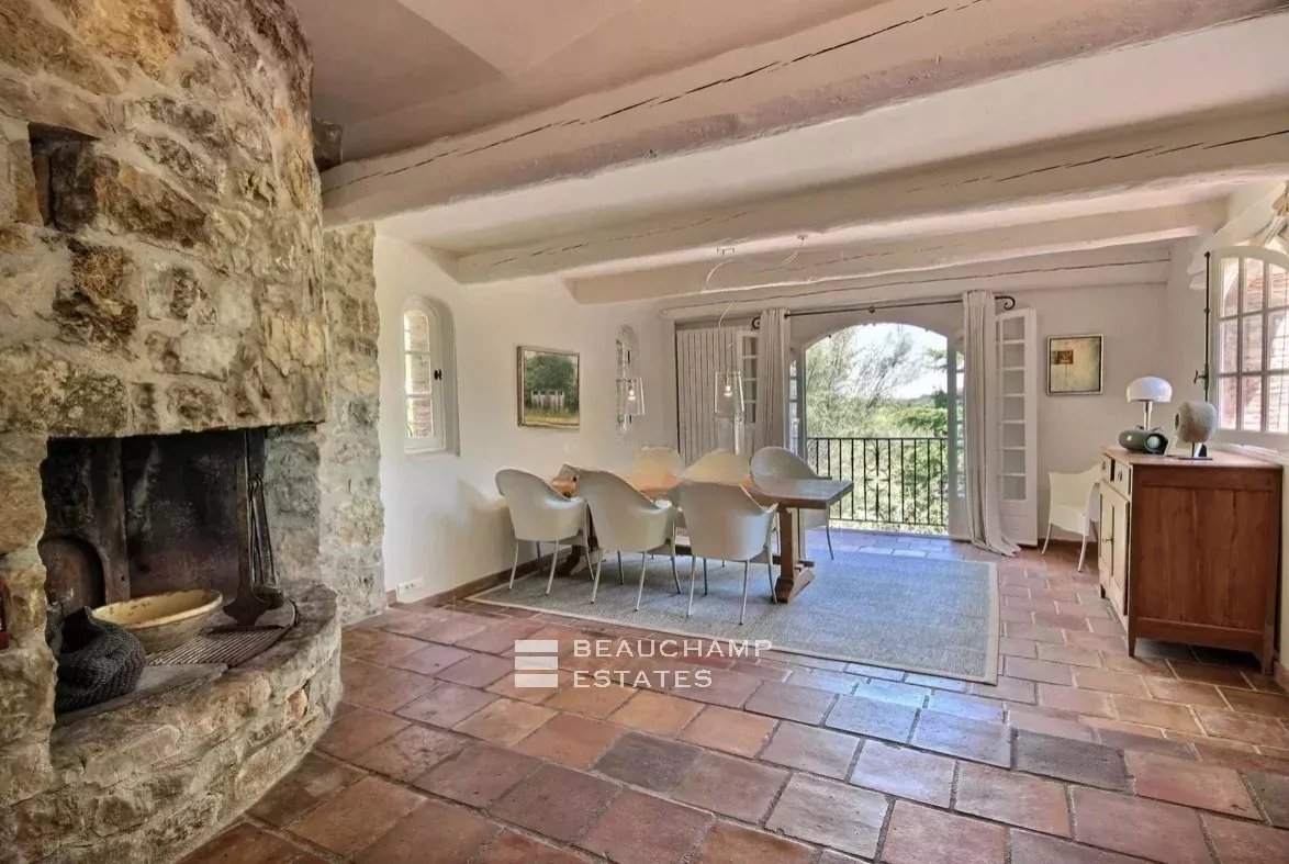 Elle est composée, d'une belle entrée, d'une double réception avec cheminée, une cuisine moderne avec accès sur une terrasse couverte et le jardin, cellier/buanderie, une chambre principale spacieuse avec salle de bains attenante, 2 autres chambres se partagent une salle de bains et à l'étage, une spacieuse 4ème chambre avec salle de bains attenante, donnant sur une ravissante terrasse Tropézienne. Le jardin est complanté de très beaux arbres, le style architectural provençal et l'ambiance chaleureuse et agréable raviront les amateurs de maison de charme.