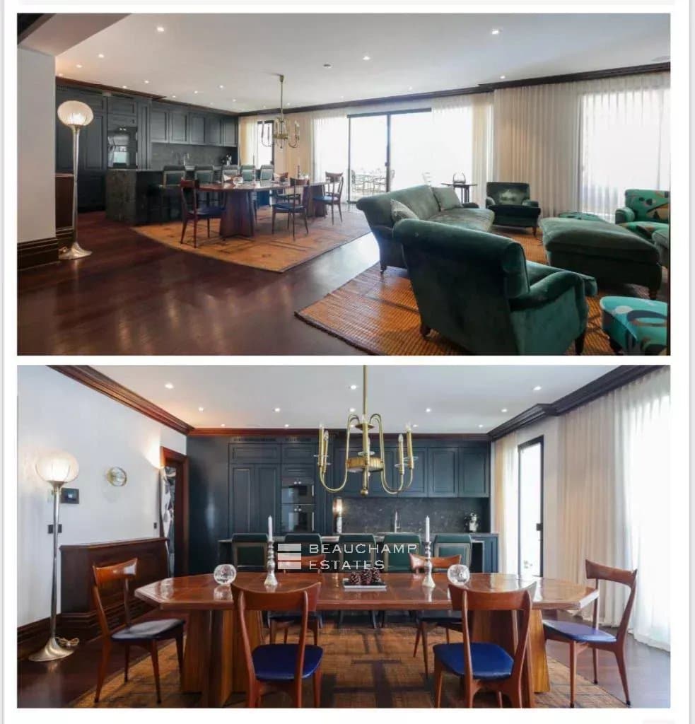 Entièrement rénové par des architectes et des décorateurs d'intérieur, l'appartement offre des matériaux de grande qualité, notamment du marbre et des boiseries raffinées.