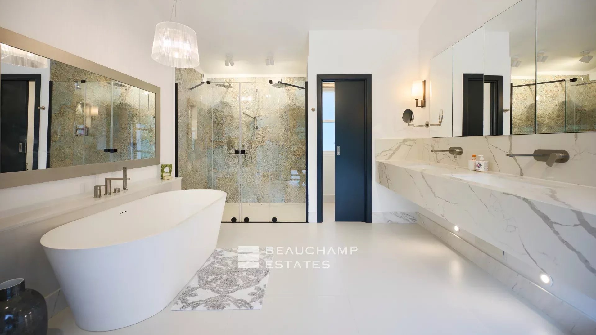 À l’étage se trouvent trois chambres en suite dont la suite de maître avec sa grande terrasse privative.