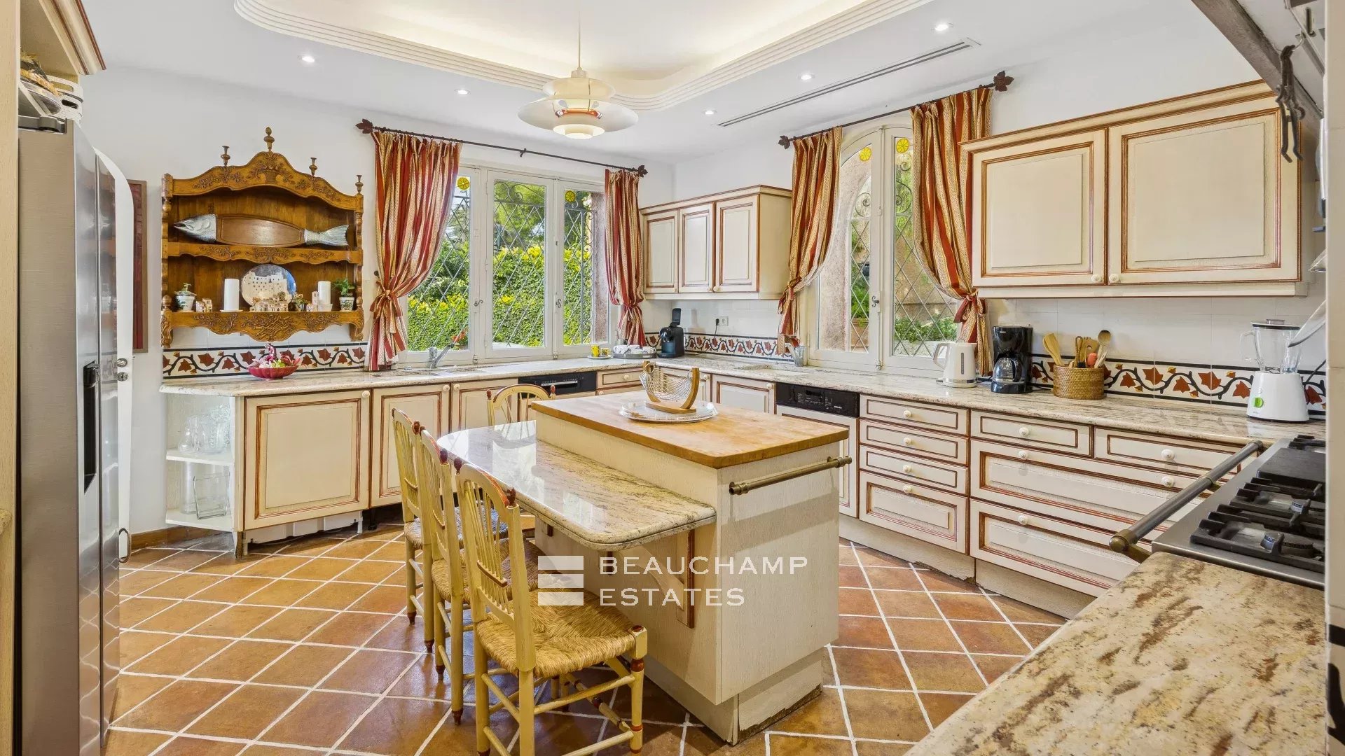 Les prestations haut de gamme assurent un confort absolu : piscine chauffée et rafraîchissante avec pool house aménagé, salle de sport équipée, climatisation dans toutes les pièces, Wi-Fi haut débit, garage fermé pour deux véhicules et jardin paysager.