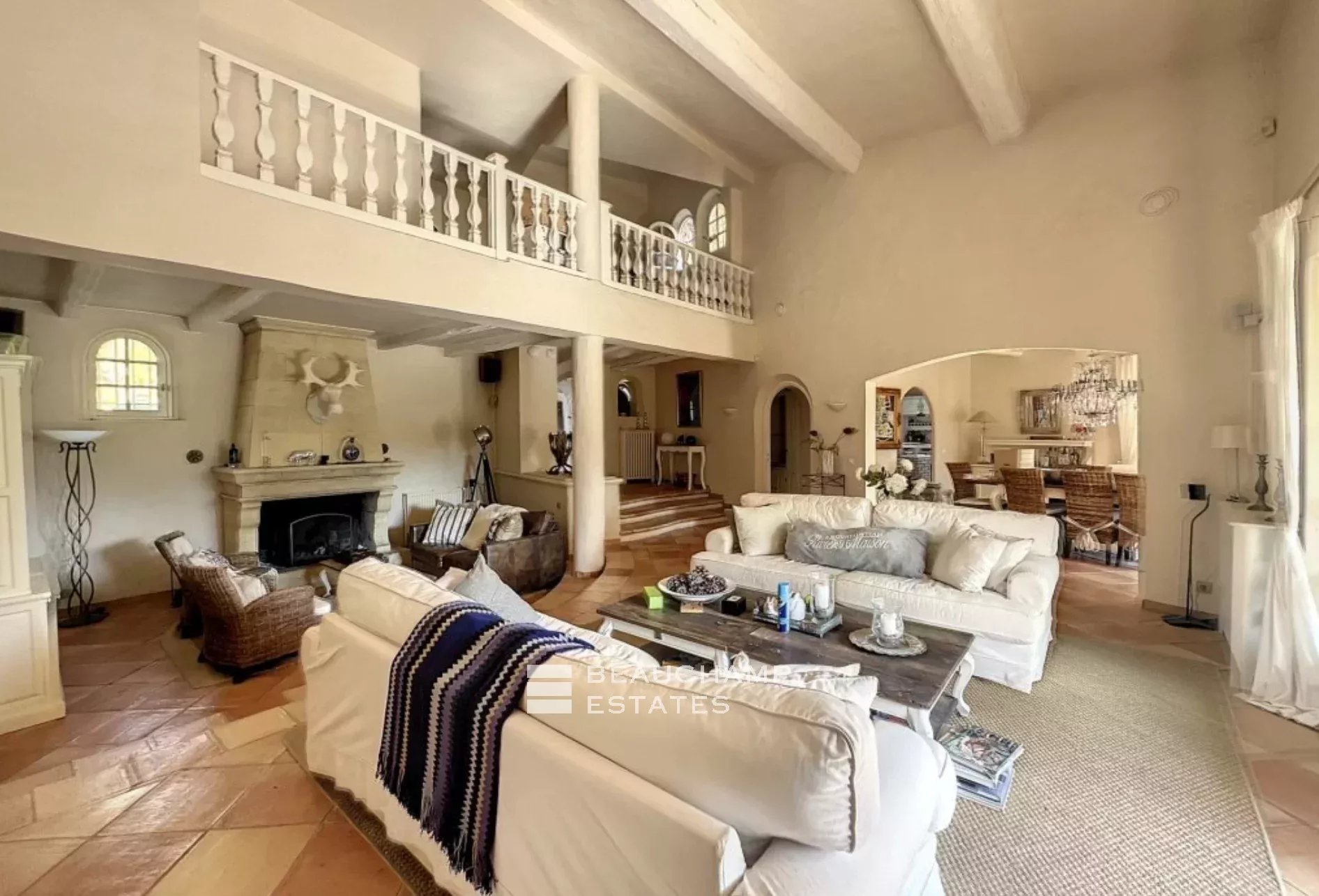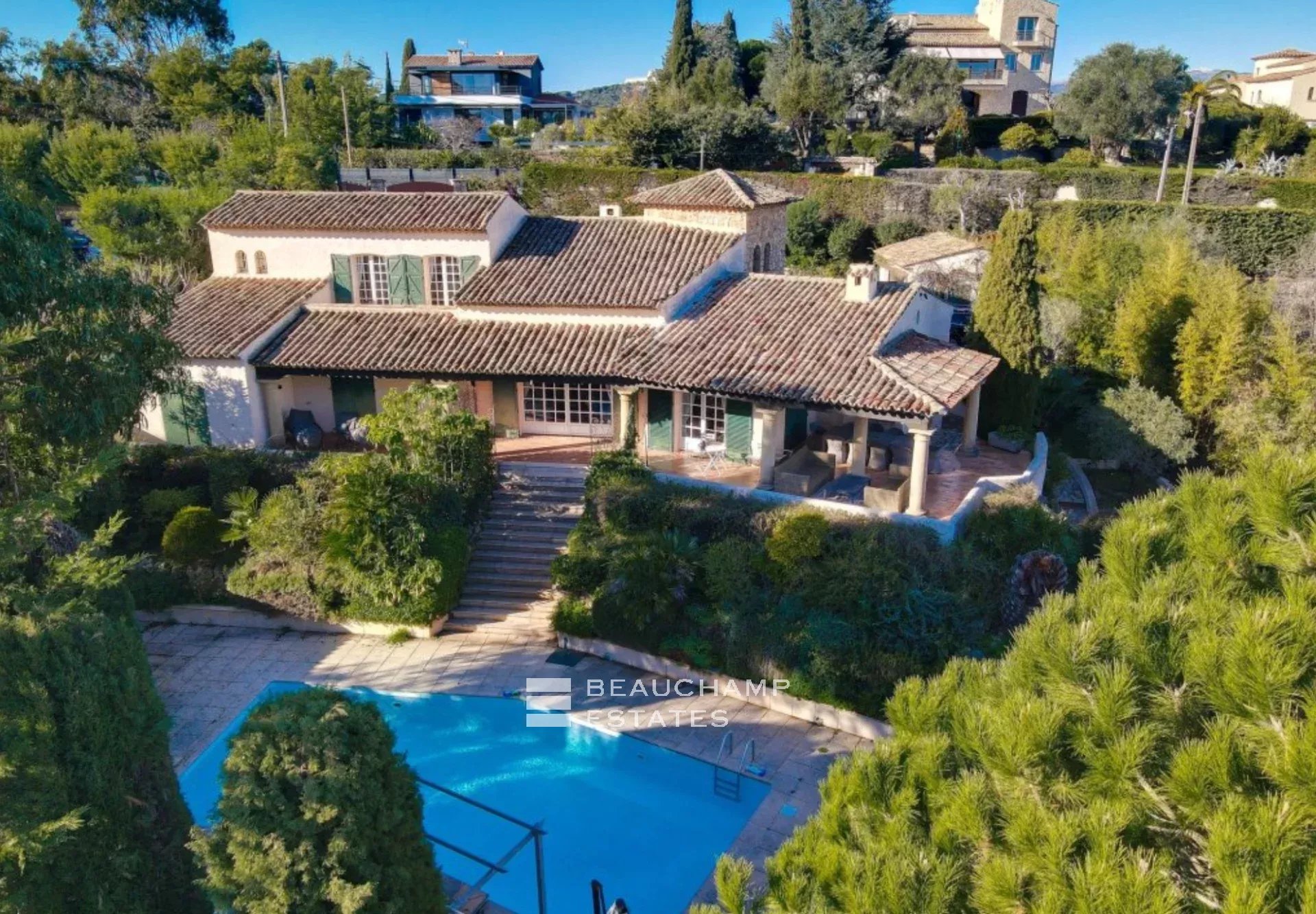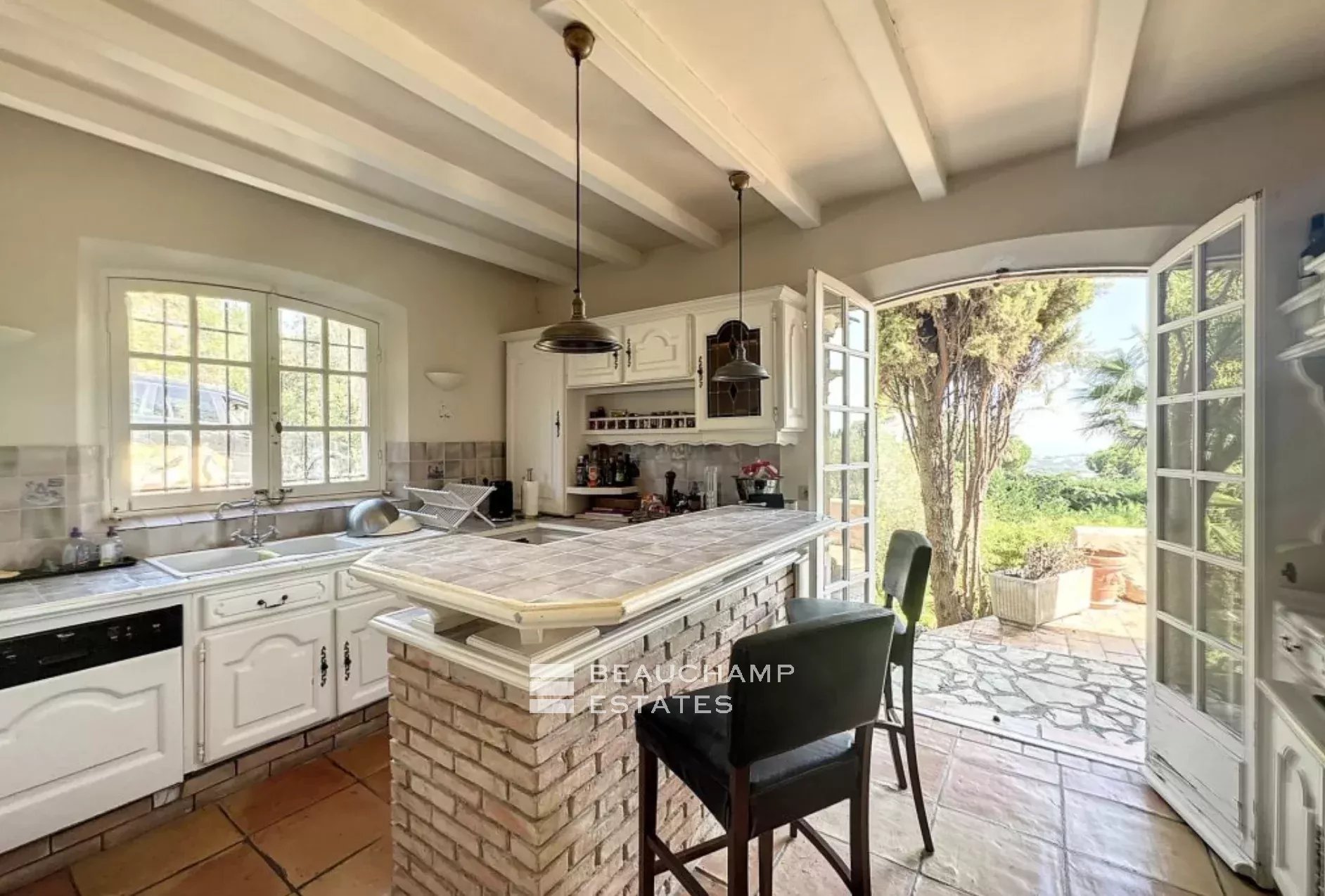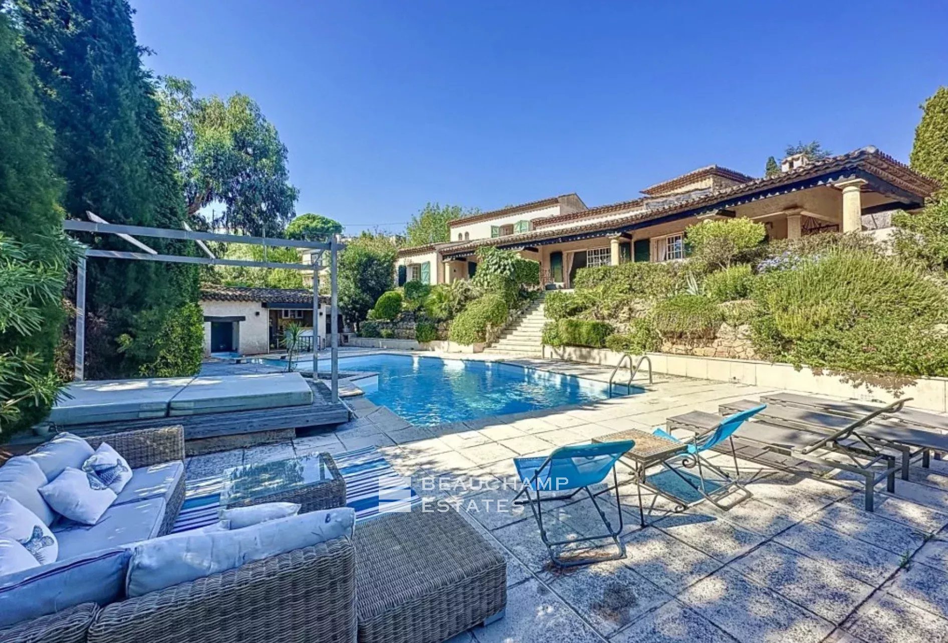 Super Cannes - Villa provençale en position dominante se situant dans un quartier recherché au calme absolu, se compose d'un séjour avec une cheminée, d'une espace salle à manger, d'une cuisine fermée et équipée, 3 chambres, 2 salles de douches, WC indépendant.