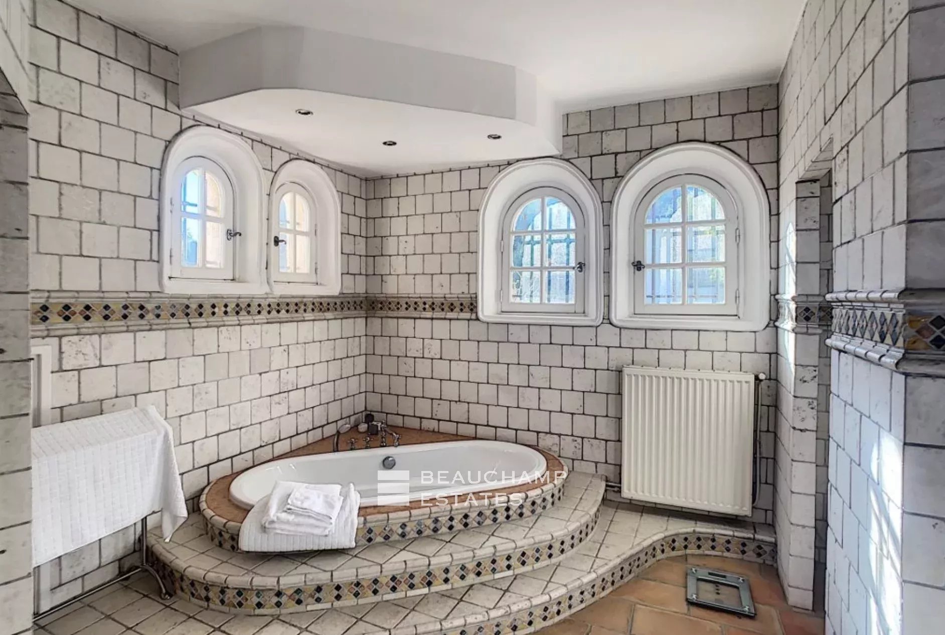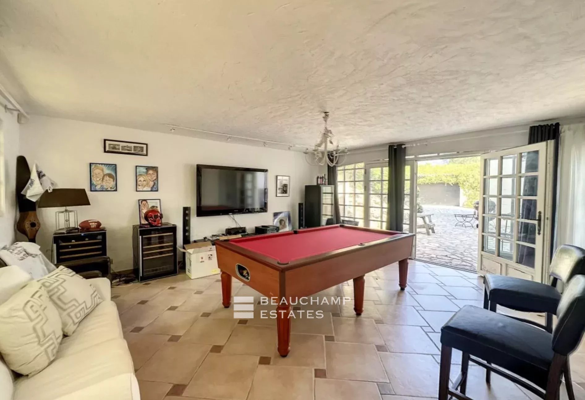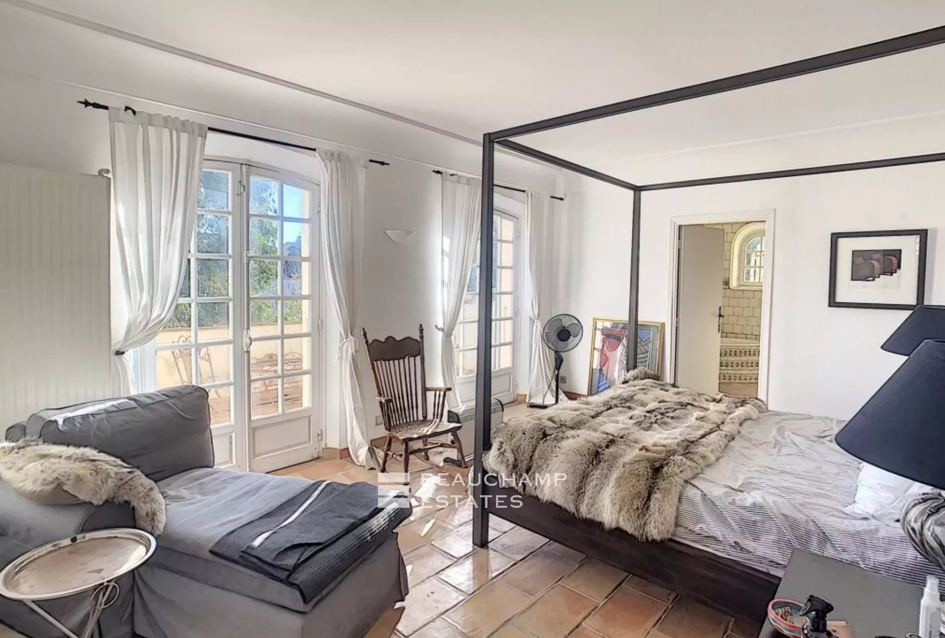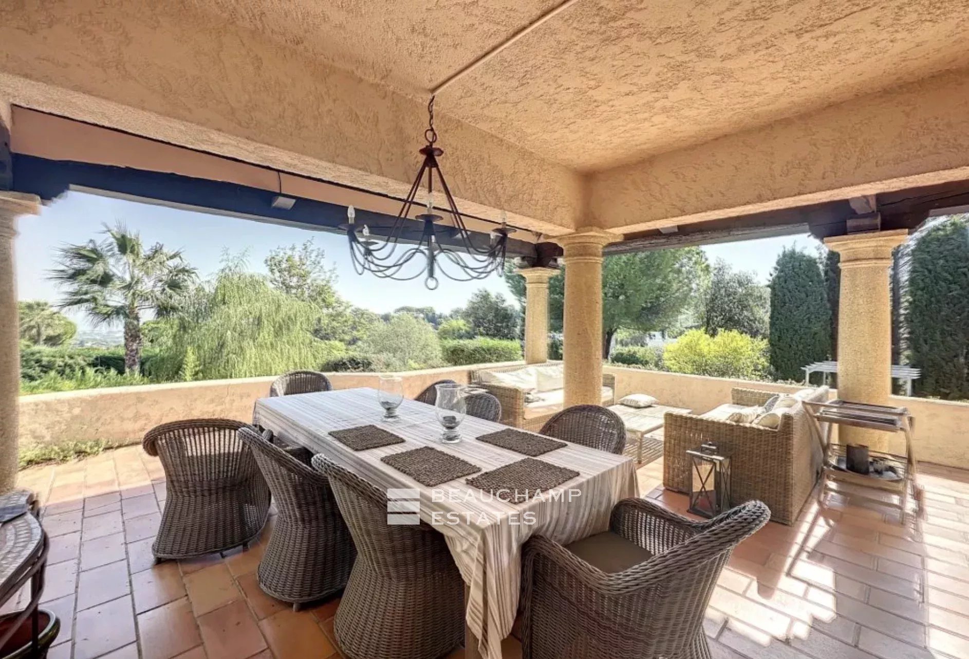 Super Cannes - Villa provençale en position dominante se situant dans un quartier recherché au calme absolu, se compose d'un séjour avec une cheminée, d'une espace salle à manger, d'une cuisine fermée et équipée, 3 chambres, 2 salles de douches, WC indépendant.
