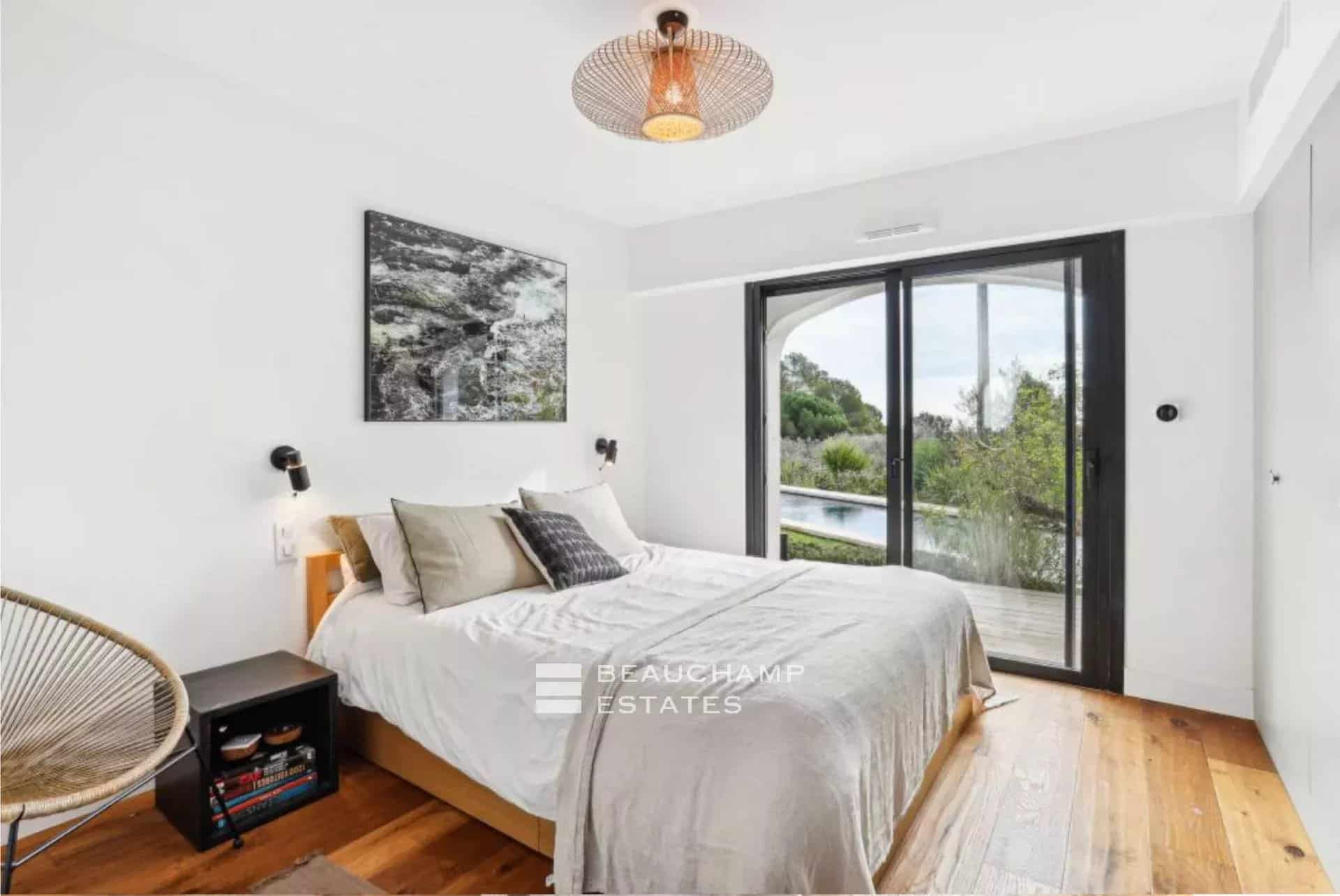 A l’étage inférieur, vous profiterez d’une très grande chambre