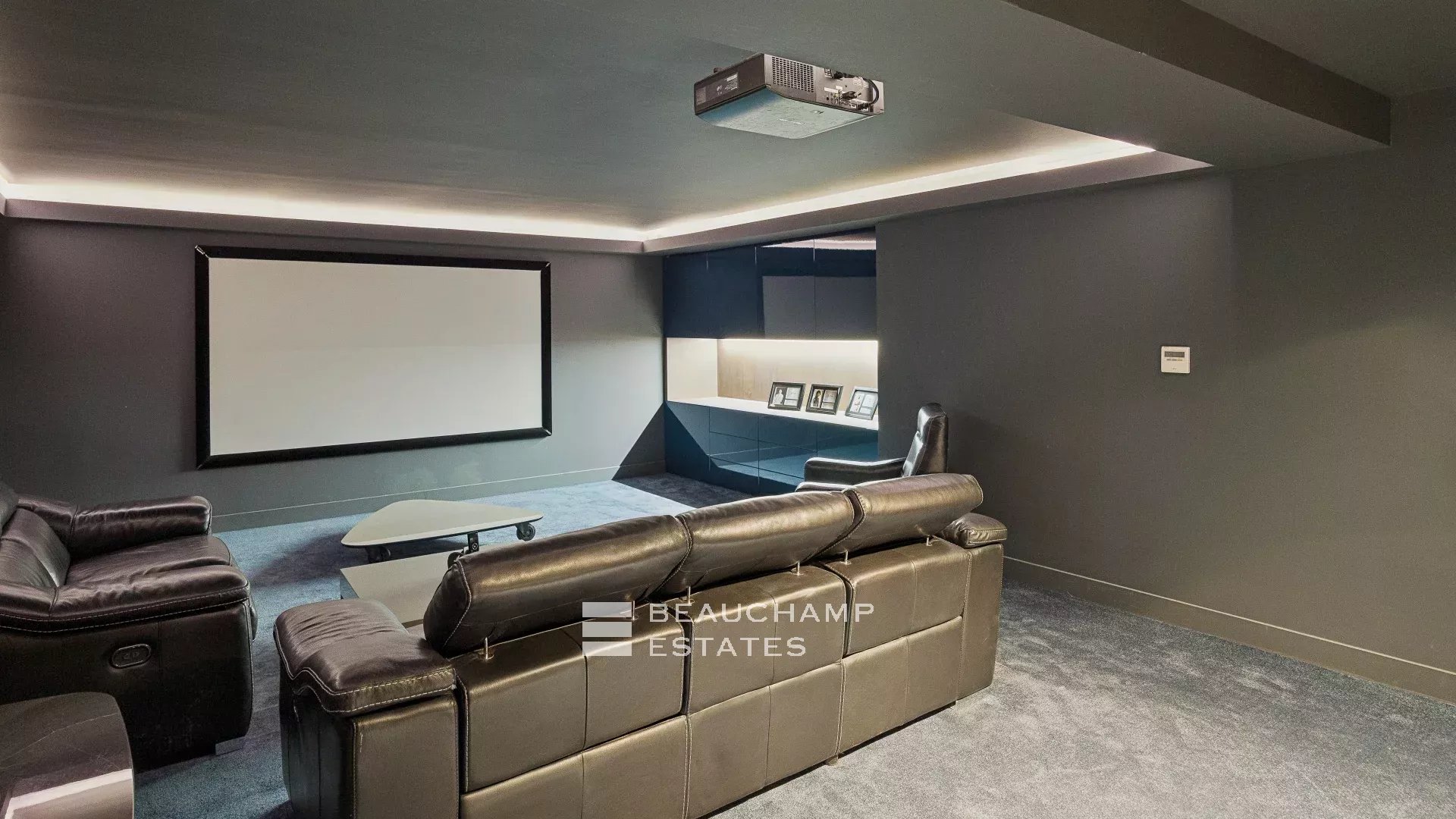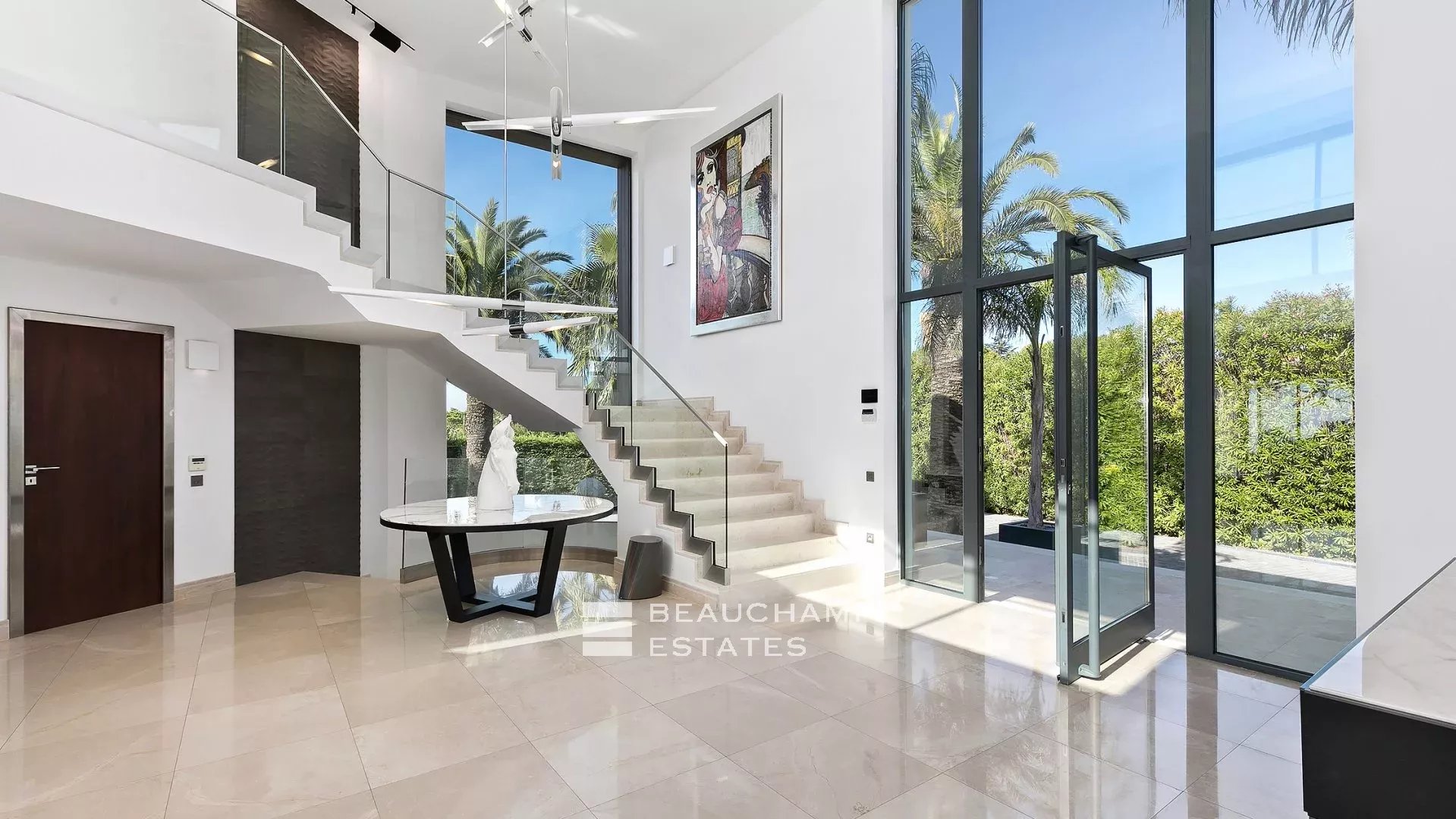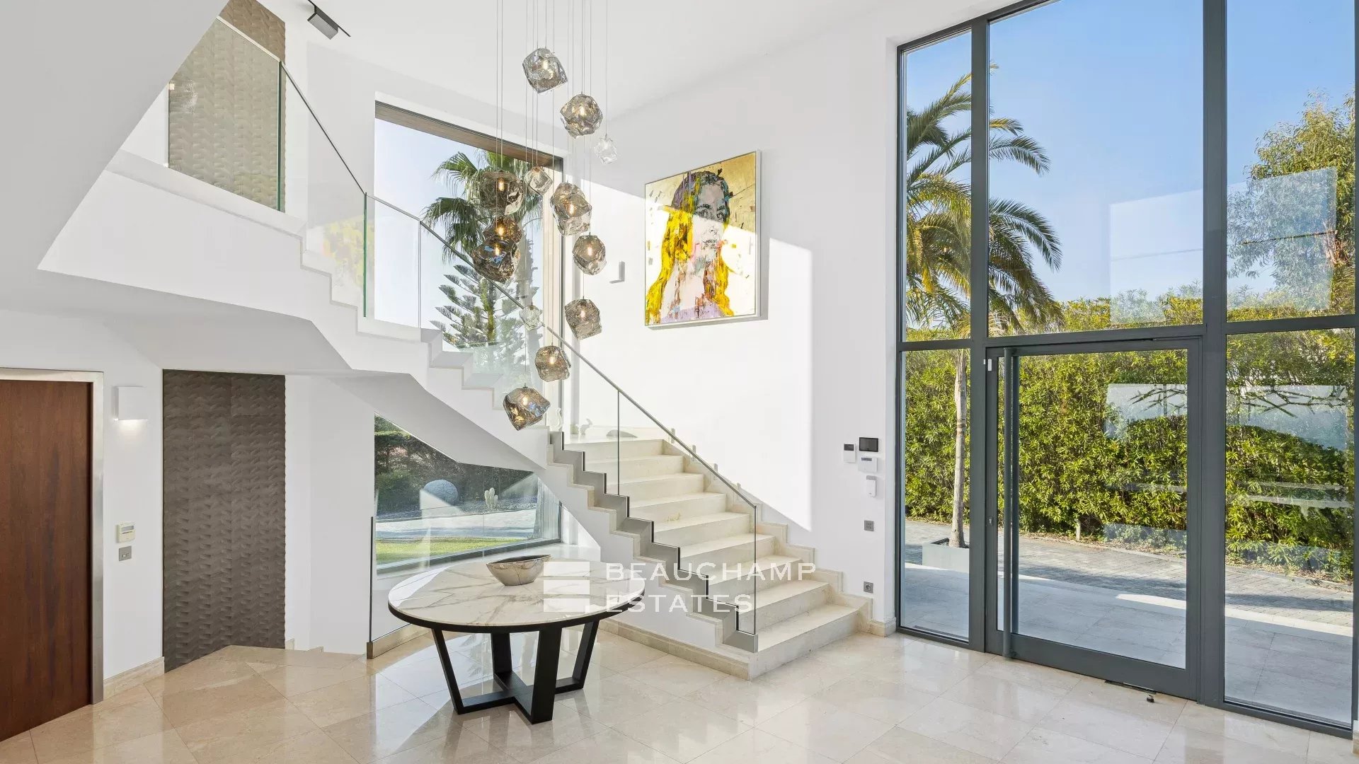 La maison est entièrement équipée de volets électriques, de caméras de sécurité, d'une salle de sécurité et de commandes domotiques haut de gamme.