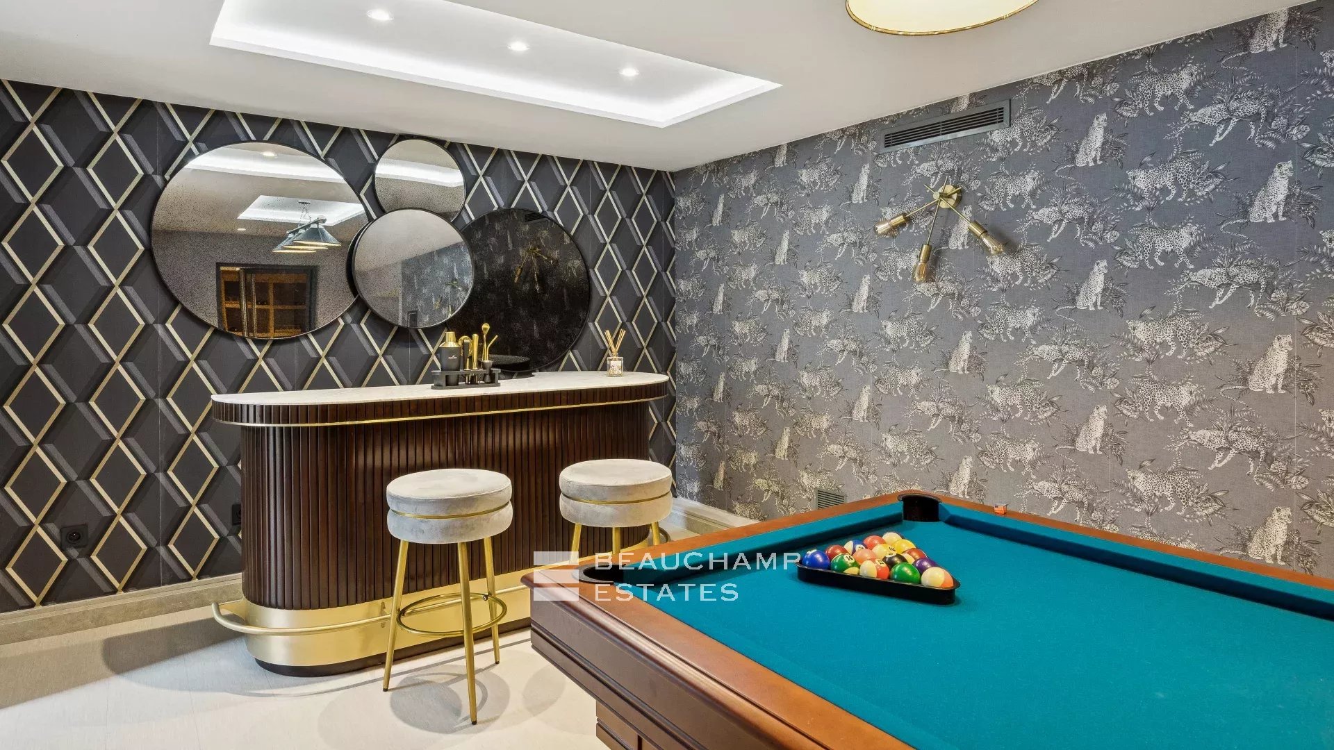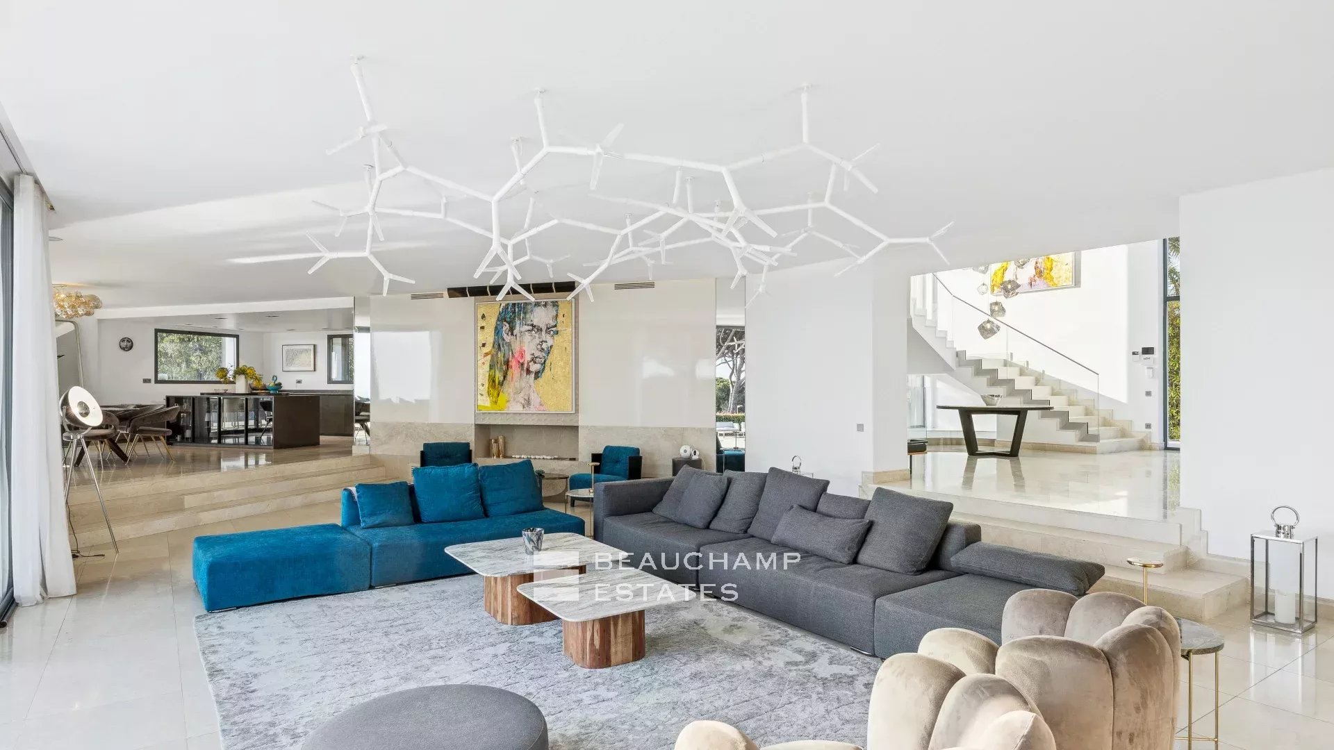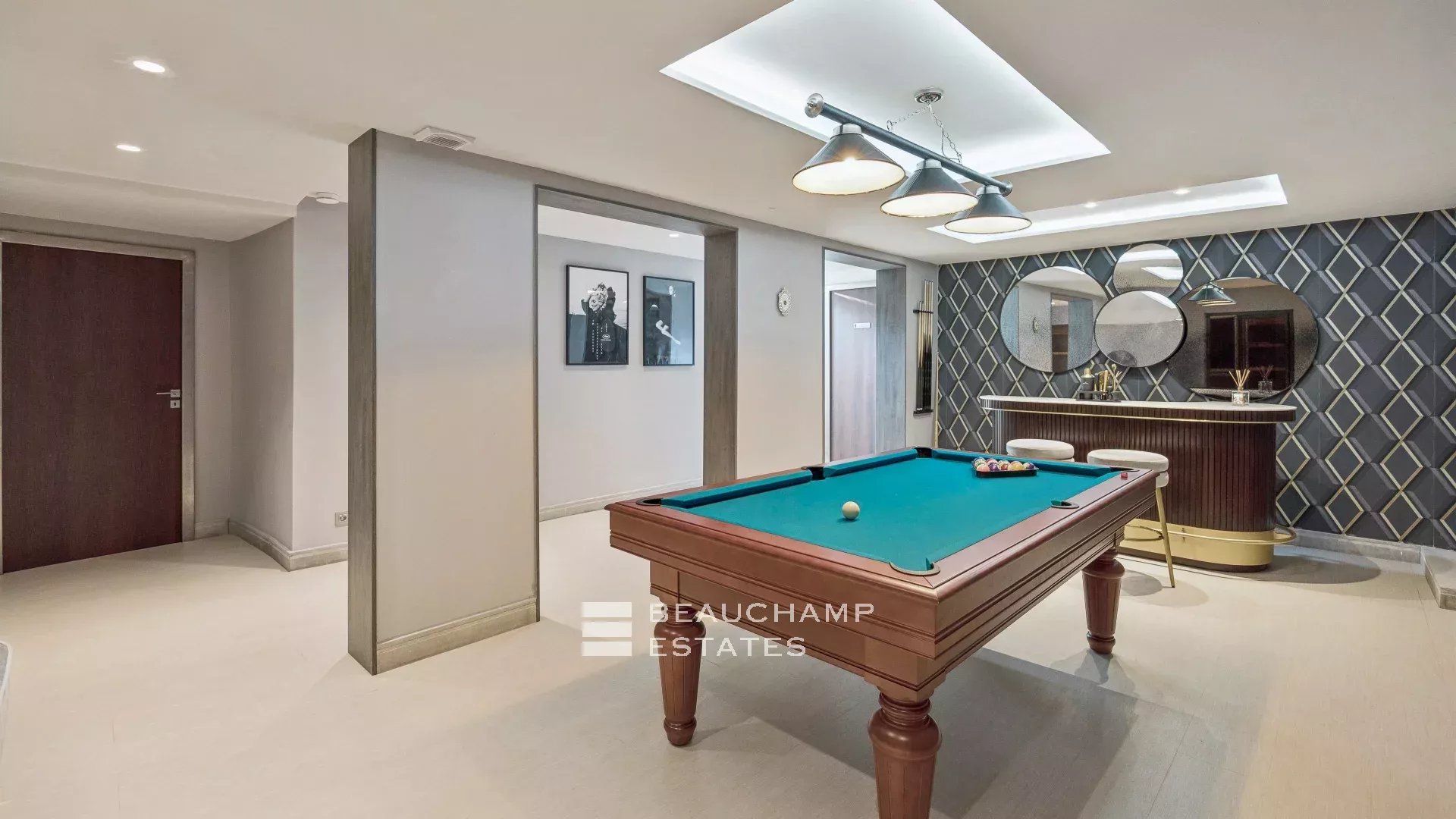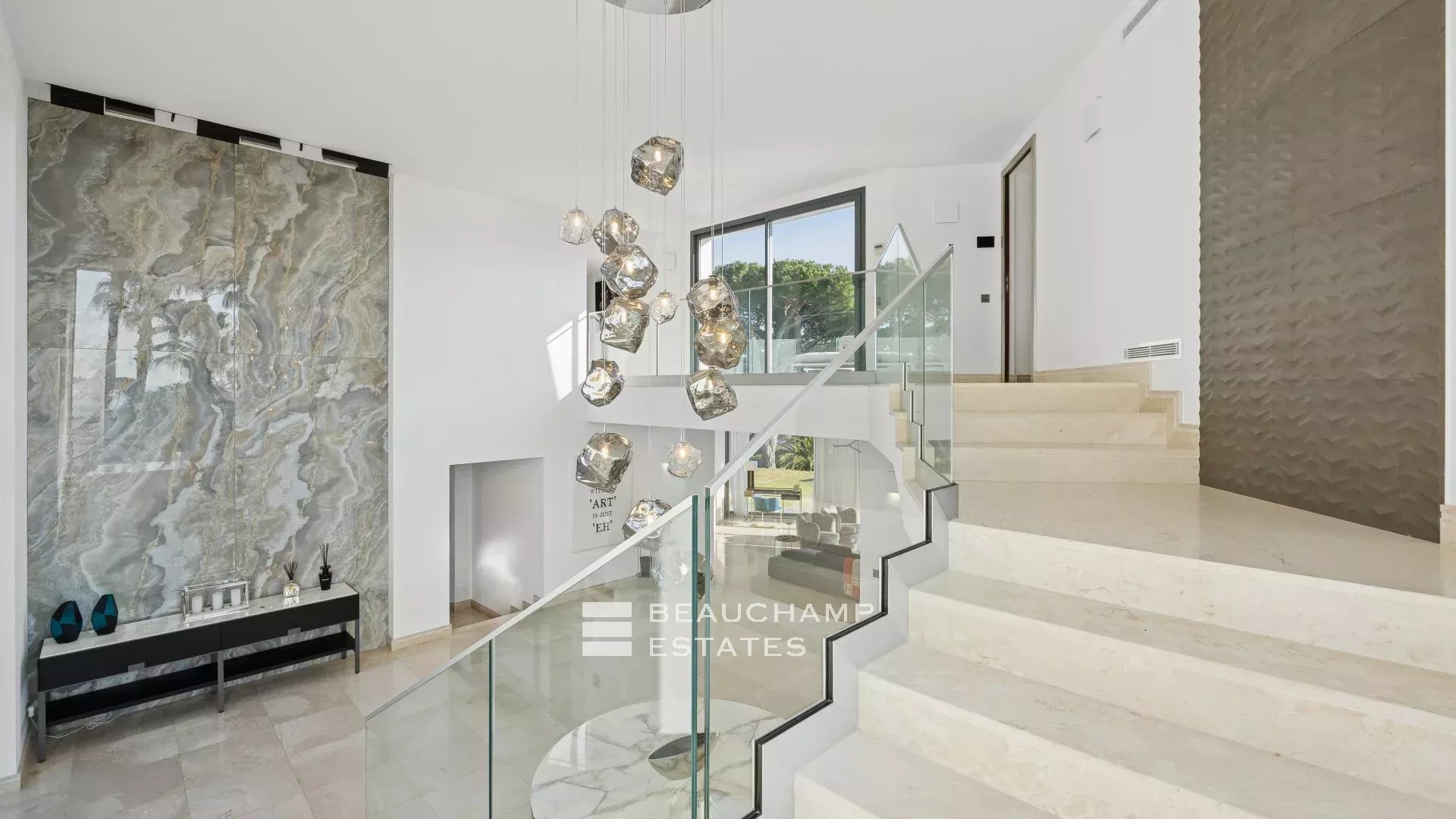 La maison est entièrement équipée de volets électriques, de caméras de sécurité, d'une salle de sécurité et de commandes domotiques haut de gamme.