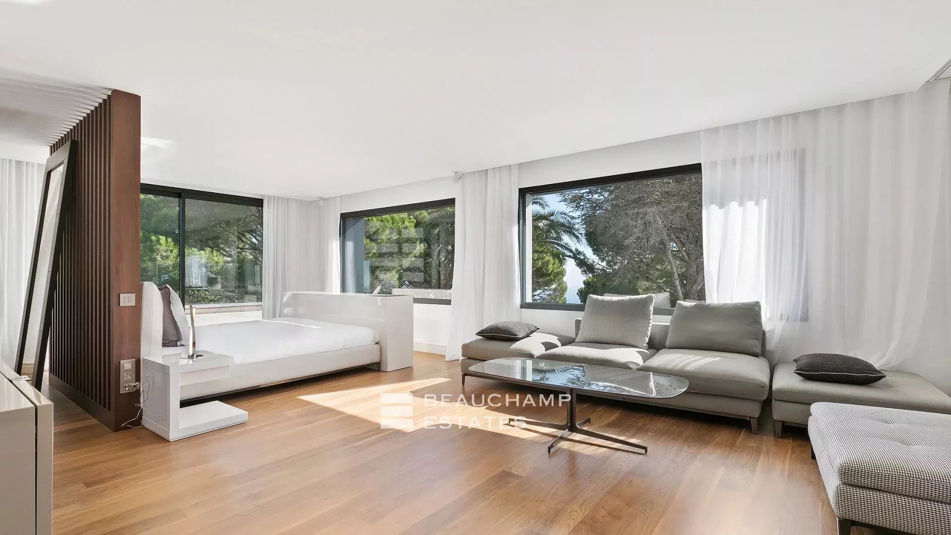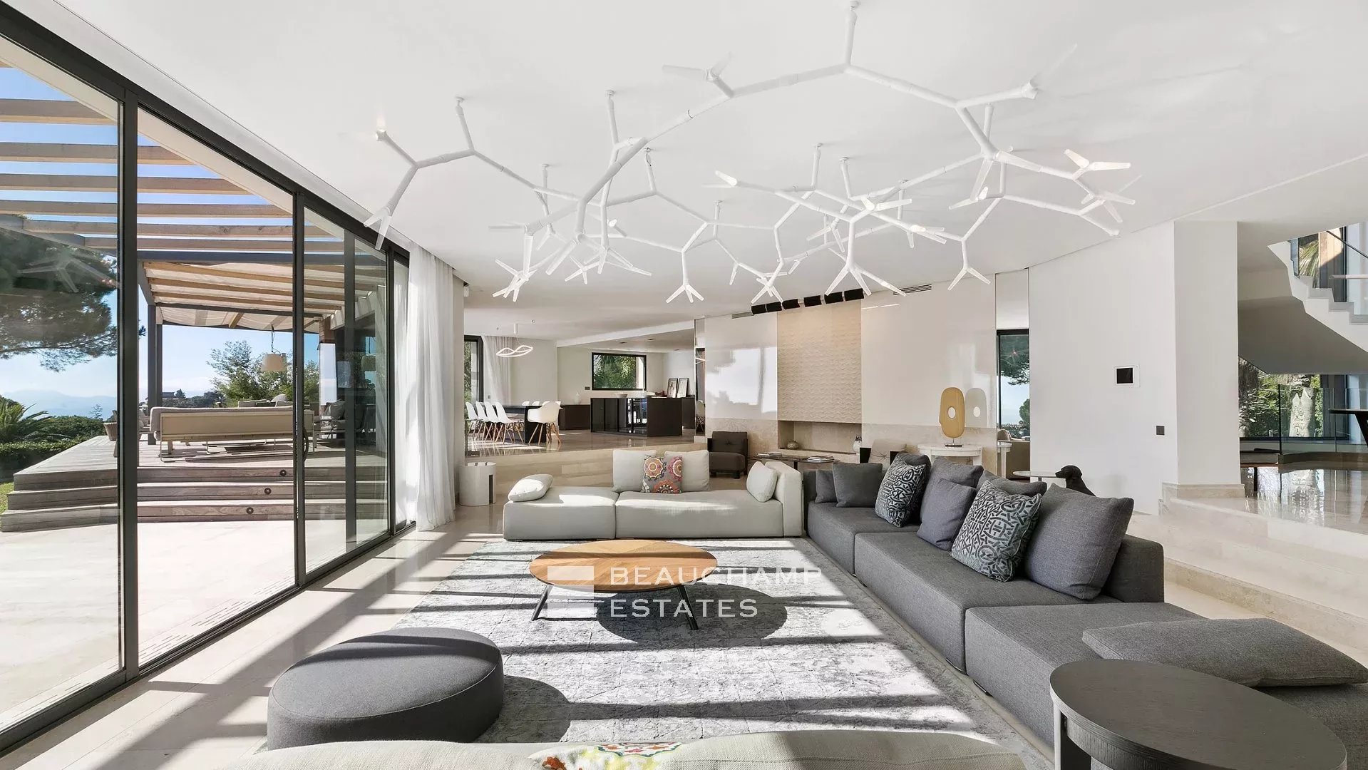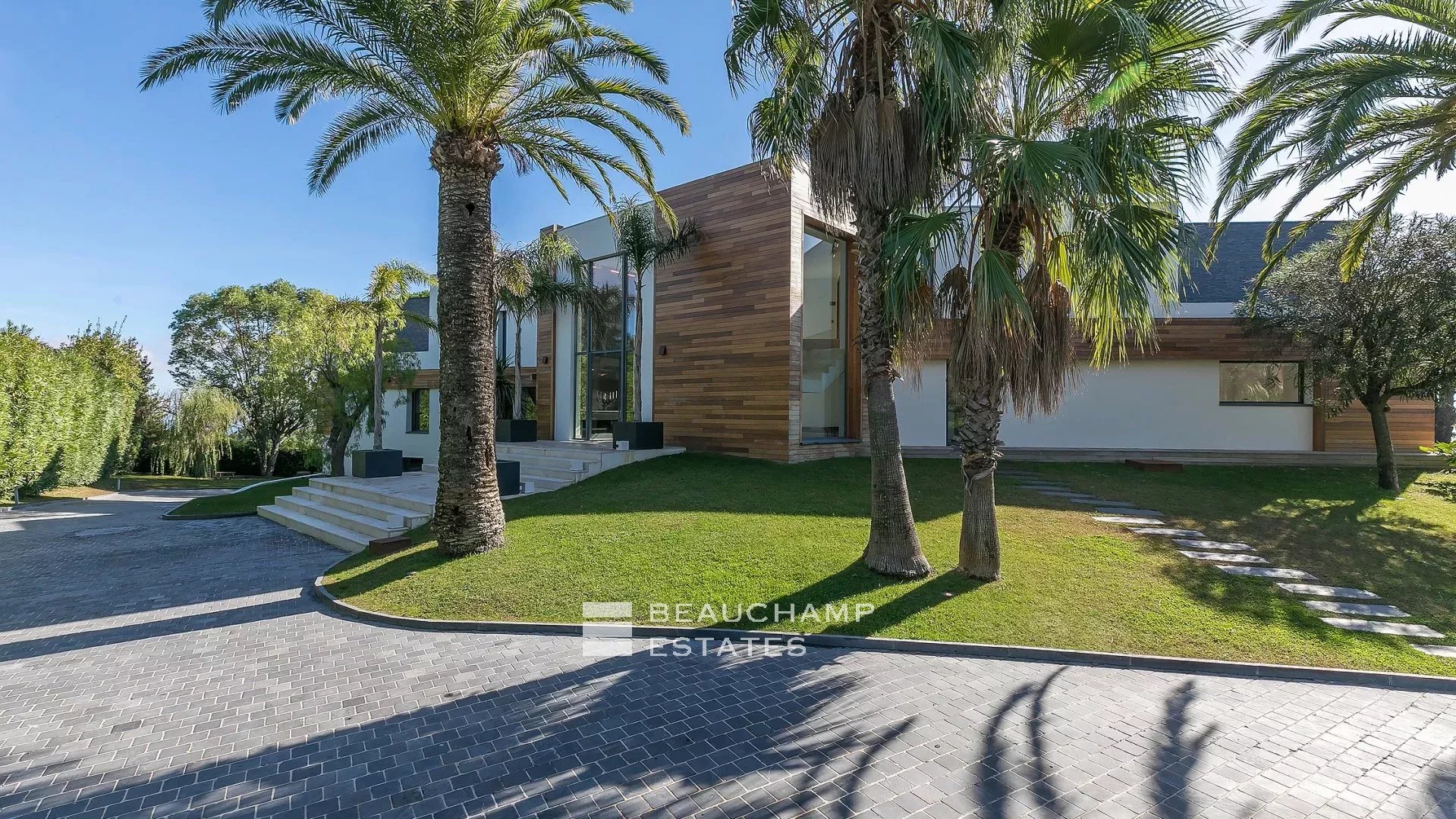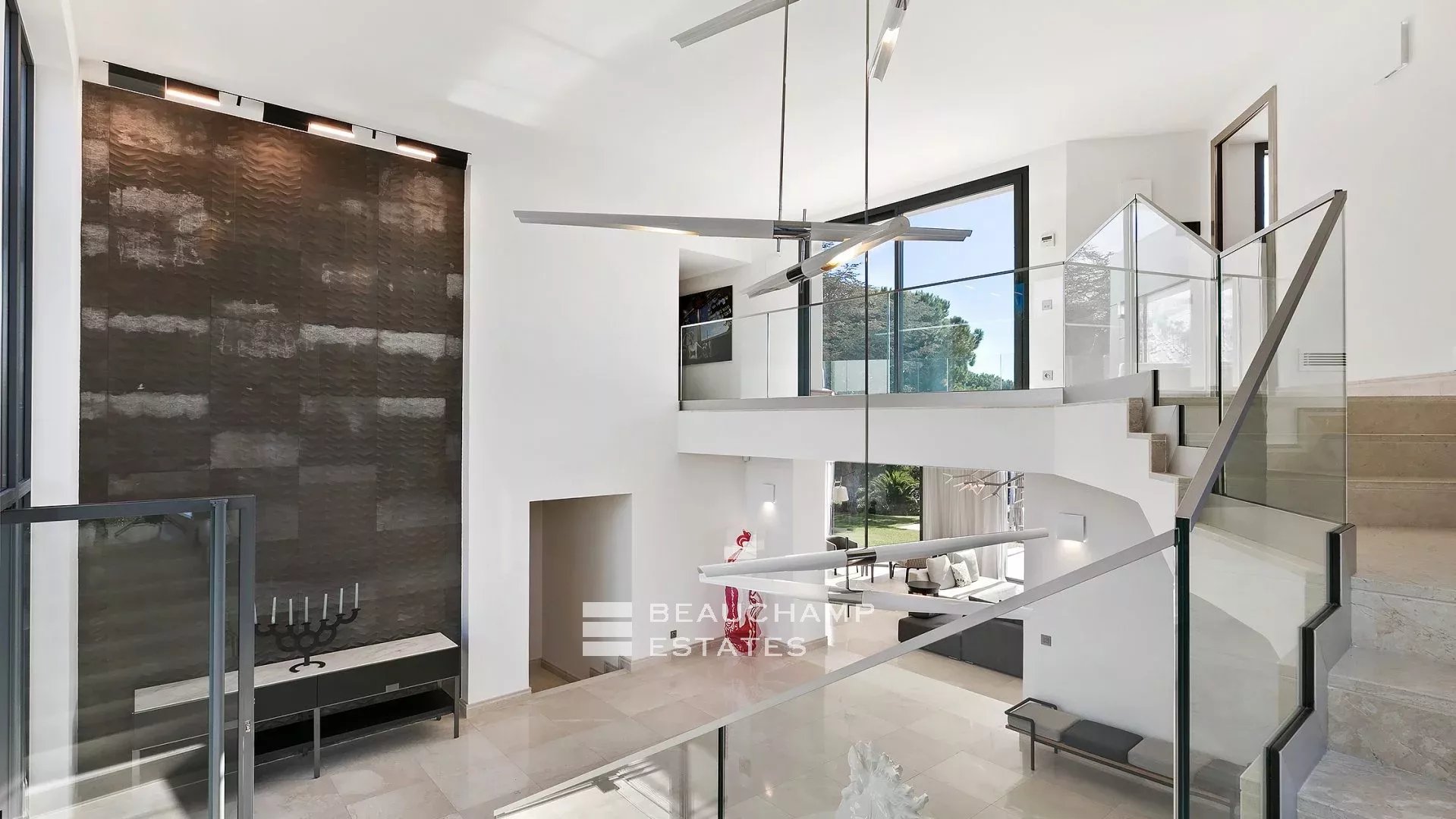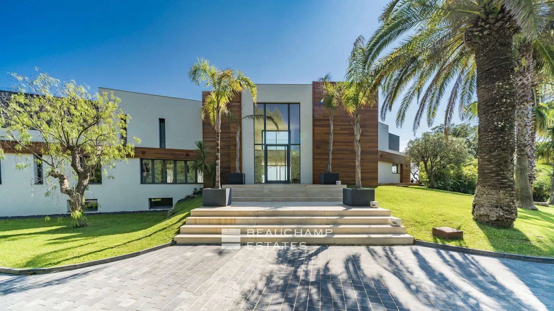 Cette villa moderne à couper le souffle de 700 m² est située sur les hauteurs de Cannes avec une vue mer panoramique et dégagées sur les îles au large de Cannes.