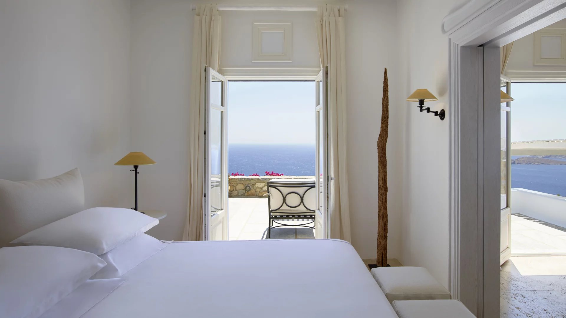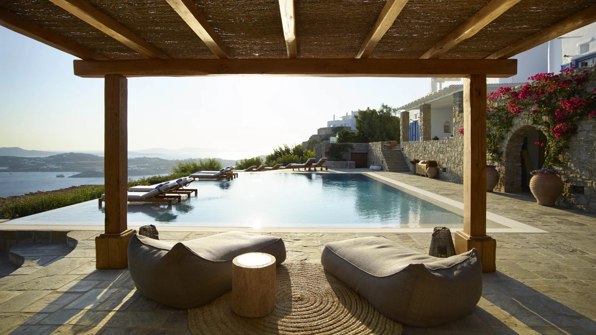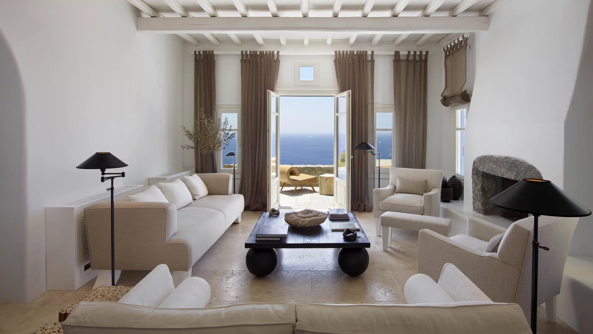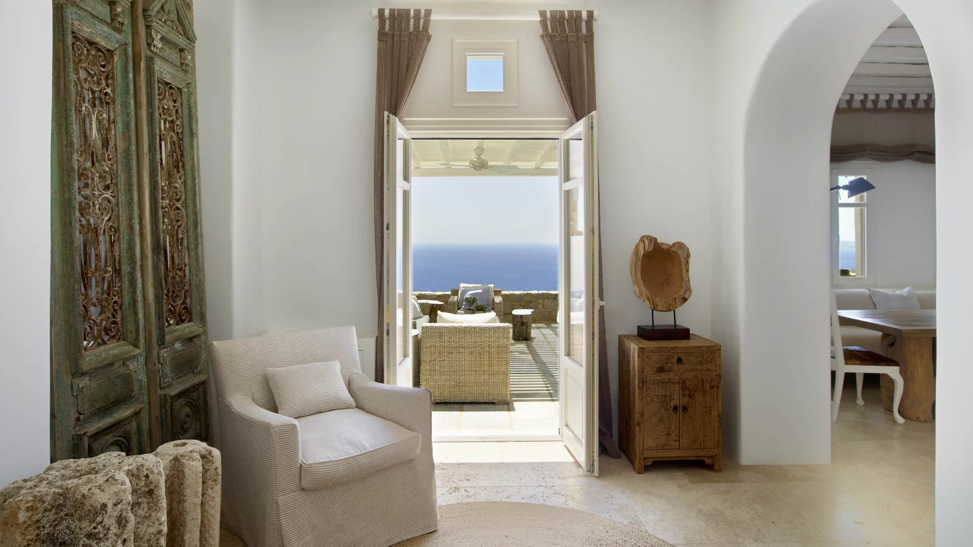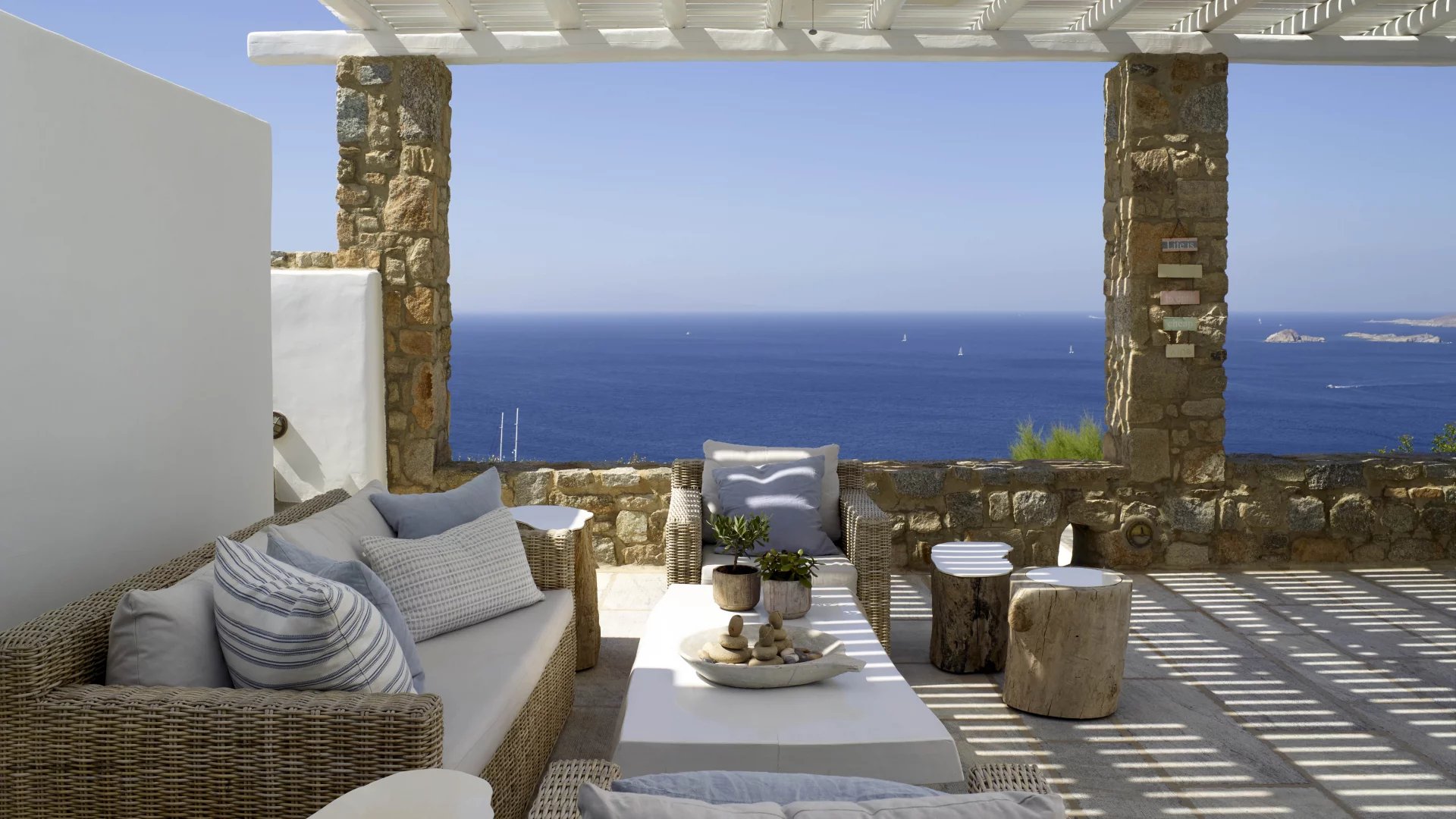 A place to breathe, to think, to exercise, to simply sit and enjoy the endless views. The interiors of Villa Ariadni are something rarely found in Mykonos or Greece.