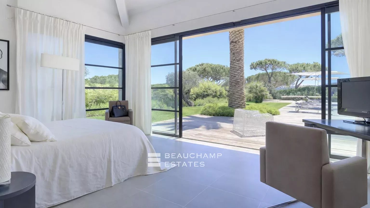 Idéalement située à seulement 4 minutes des plages emblématiques de Pampelonne et du mythique Club 55, et à 10 minutes du centre de Saint-Tropez, cette somptueuse villa contemporaine incarne l’art de vivre tropézien dans ce qu’il a de plus exclusif.