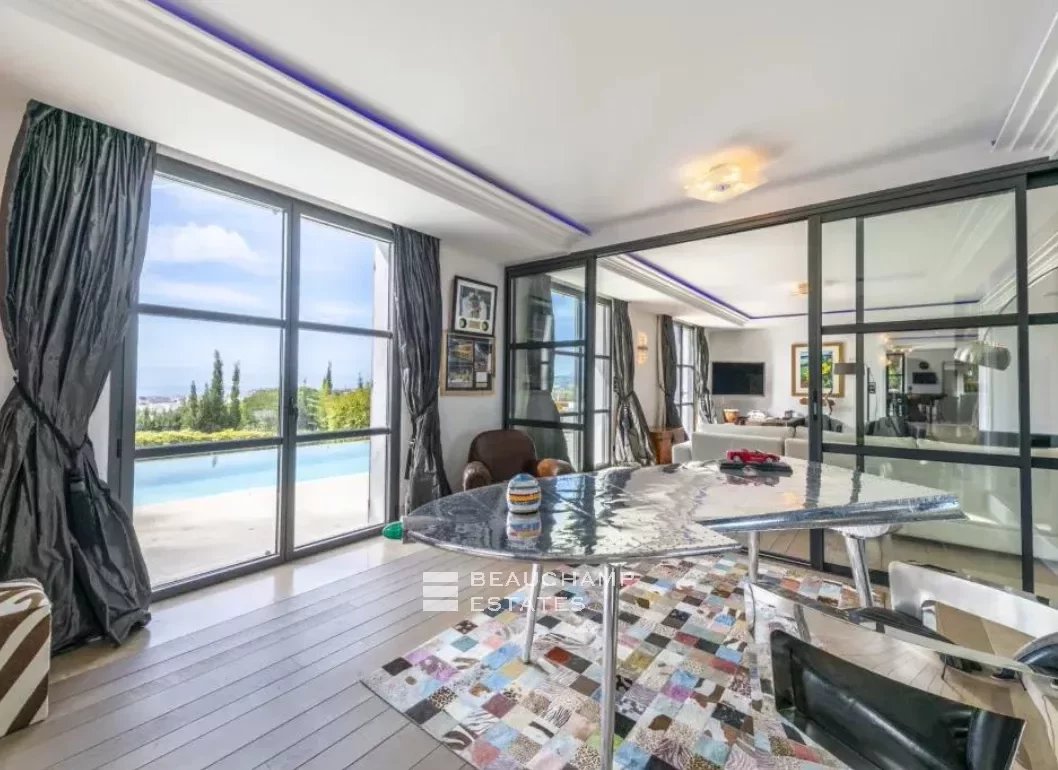 Située au cœur du Cannet sur un terrain d'environ 3 475 m², cette charmante maison moderne de 395 m² bénéficie de belles vues dégagées sur la mer et les îles de Lérins, dans un quartier calme à proximité de toutes les commodités. Le jardin bien entretenu comprend une piscine chauffée et un terrain de pétanque pour les activités de plein air.