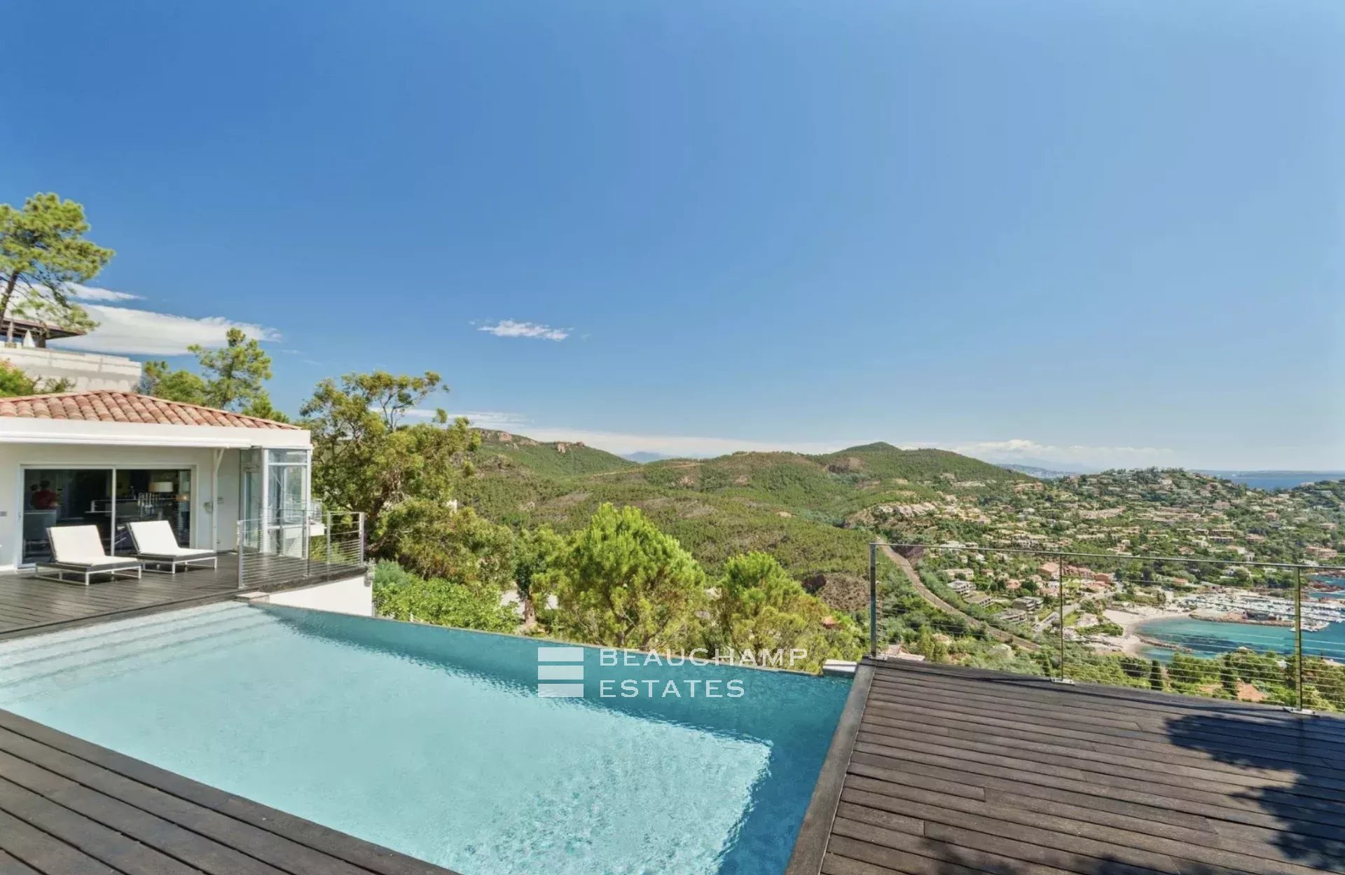 En exclusivité – Située au Trayas, à proximité immédiate de Théoule-sur-Mer et de la Méditerranée, cette villa contemporaine bénéficie d’un emplacement privilégié et d’une vue panoramique spectaculaire sur la mer et le littoral.