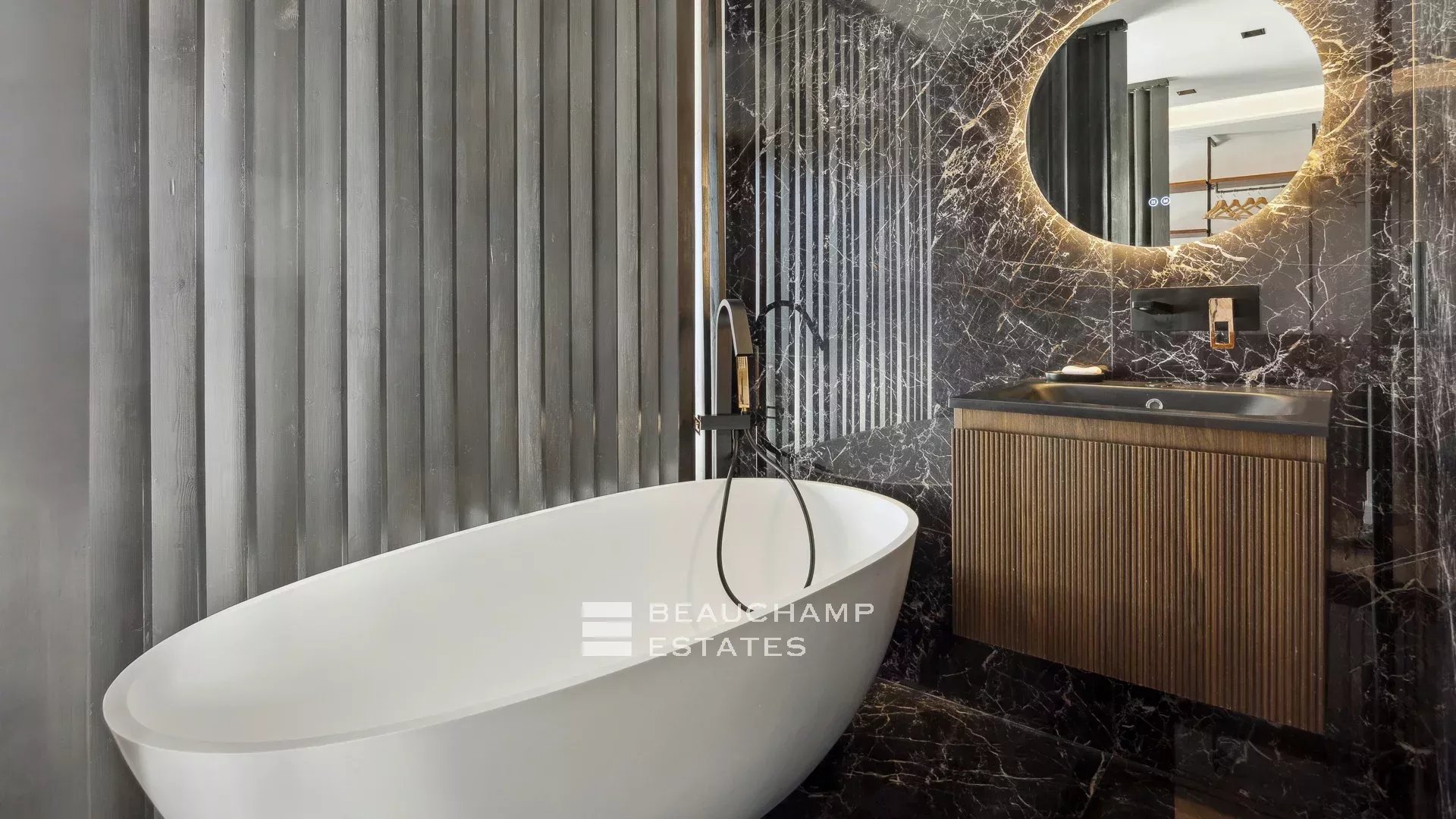 - Une chambre de maitre, avec son propre dressing, balcon privé, et une salle de bain/douche, double vasque et WC