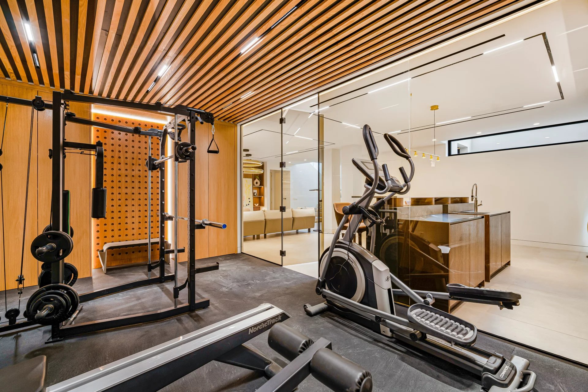 Le sous-sol abrite un sauna finlandais, une salle de sport, une chambre spacieuse, une réserve, une salle de cinéma, des toilettes pour les invités, une zone de télévision et un bar conçu individuellement. Le mobilier et les tapis proviennent des célèbres marques italiennes "Bonaldo", "Ditre" et "Talenti". Les caractéristiques comprennent le système d'alarme, le chauffage par le sol dans tout l'appartement, la climatisation et les planchers en bois dans les chambres. En outre, il y a un espace pour garer 3 voitures.