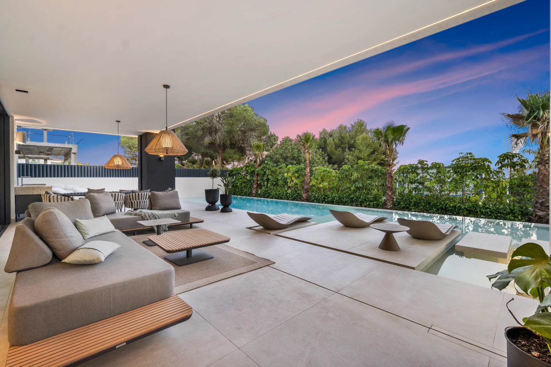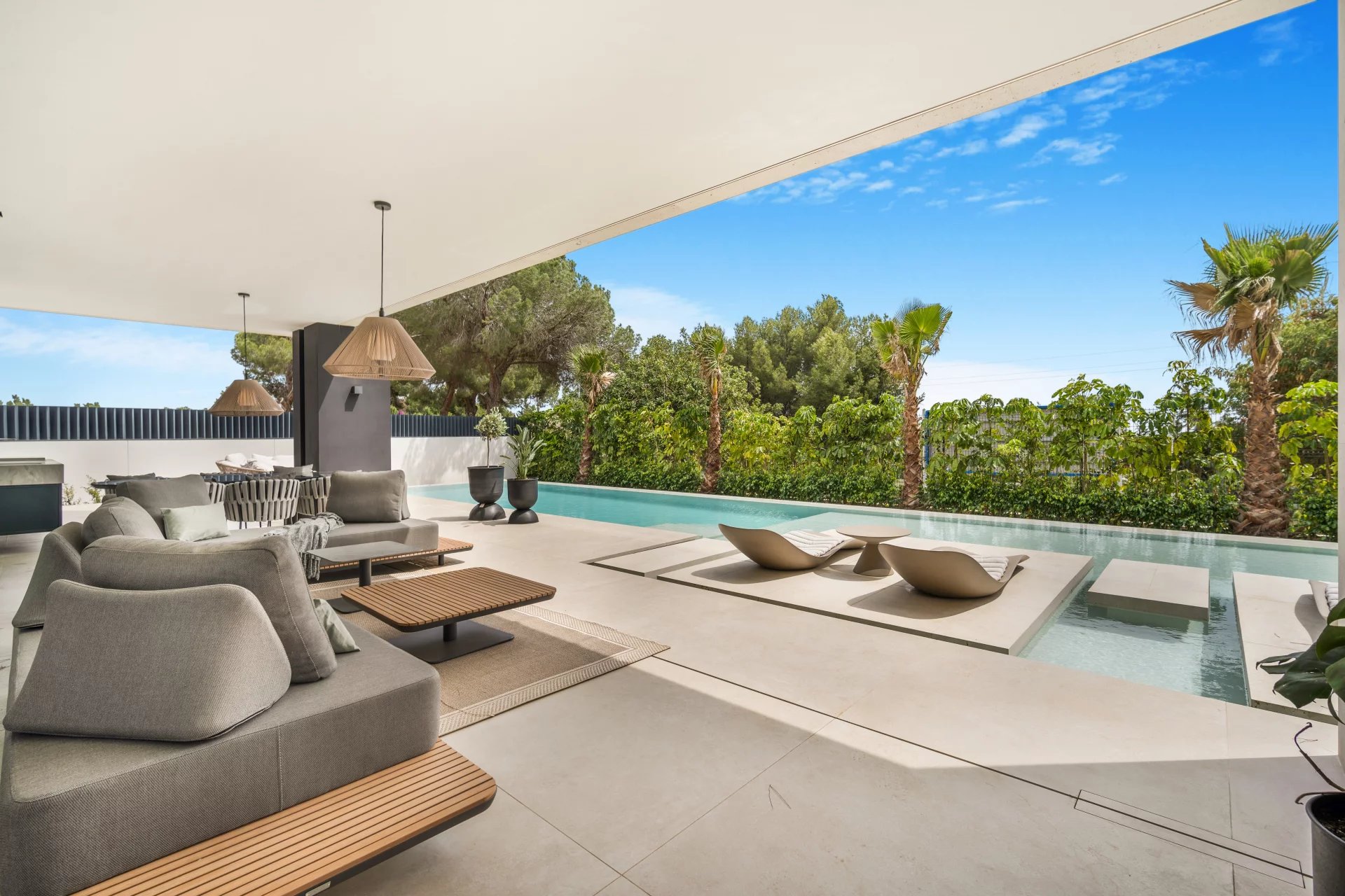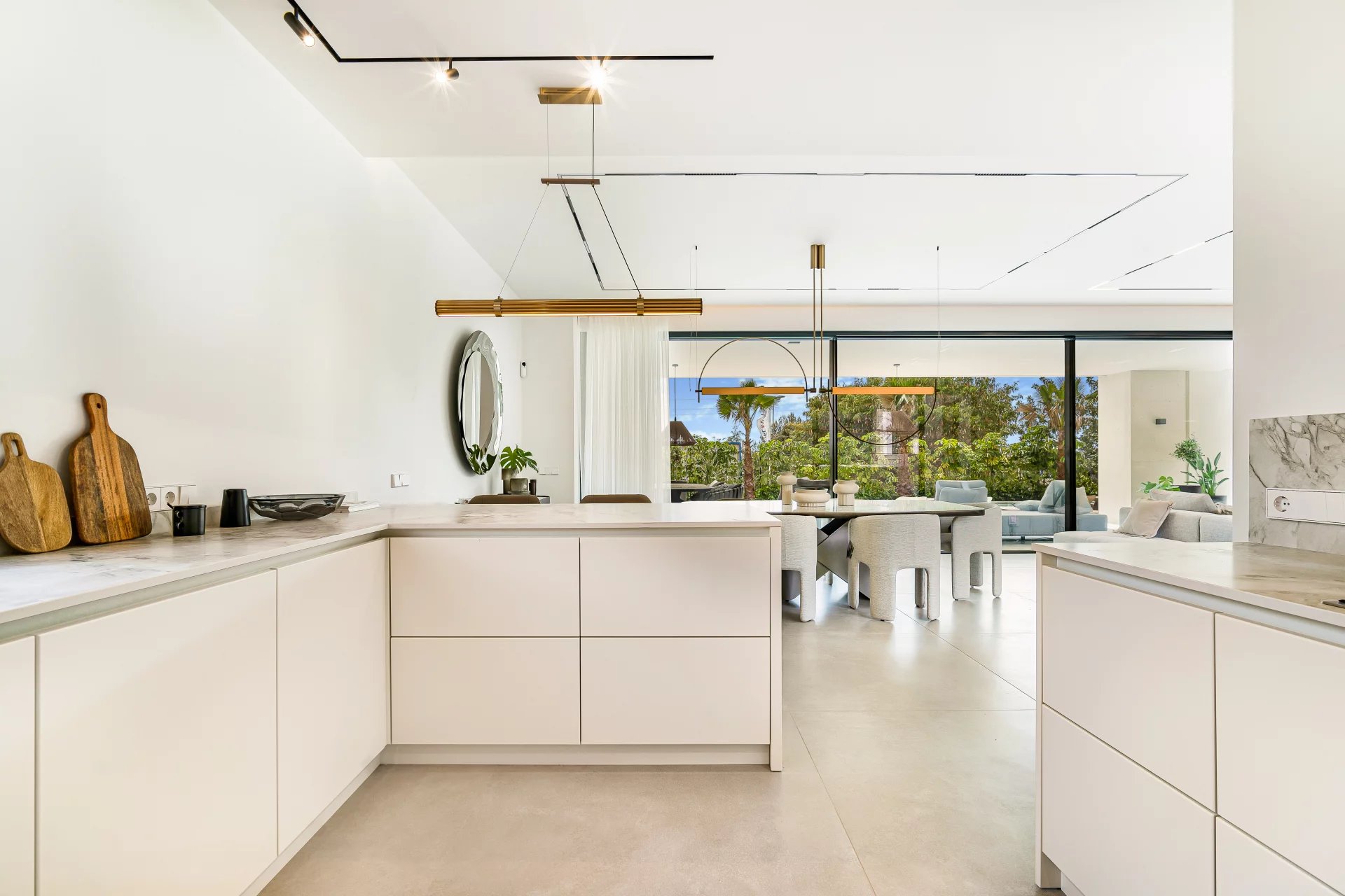 Cette maison écologique, bien planifiée et fonctionnelle de 813 m² sur 3 niveaux a été conçue et construite avec des matériaux d'excellente qualité, des planchers en bois, de grandes fenêtres qui permettent à la lumière naturelle d'entrer dans toutes les pièces tout en reliant la nature et l'architecture. Le terrain de 1 050 m² offre l'atmosphère méditerranéenne particulière qui domine la région de Marbella. Il possède également des pins majestueux qui participent activement à la création de cette atmosphère irrésistible. Cette maison de luxe intelligente est vendue avec des éclairages et des plafonds sophistiqués, un système de refroidissement au plafond, une domotique, une alarme, un système d'irrigation automatique, un barbecue, des armoires encastrées, du double vitrage, etc. La propriété est située à quelques minutes du vieux centre de Marbella et du prestigieux Puerto Banús (5 min). Toutes les commodités sont à portée de main : plages et clubs de plage, hôtels de luxe emblématiques, boîtes de nuit, terrains de golf, clubs de tennis, restaurants et bars, etc.