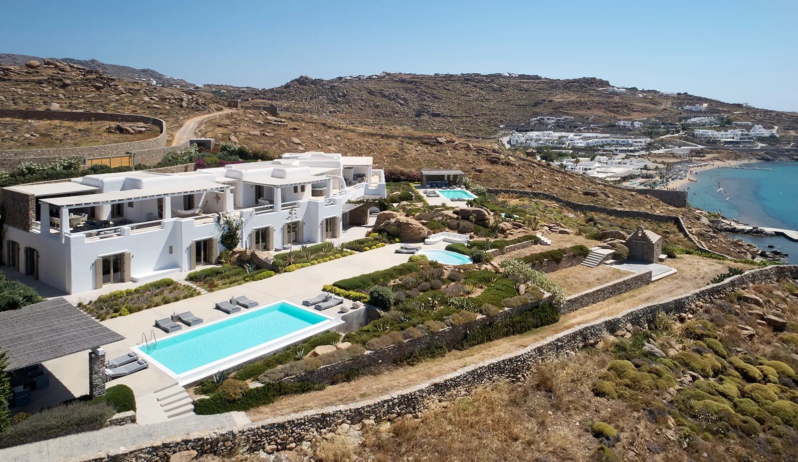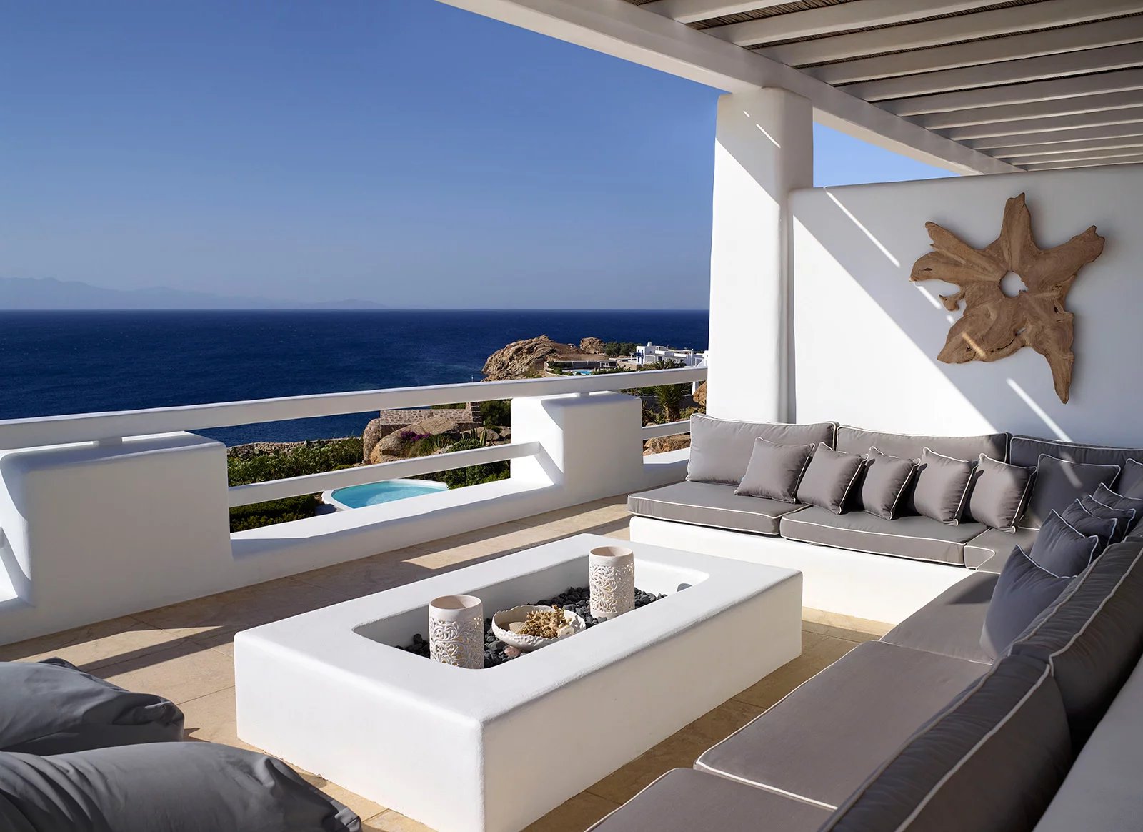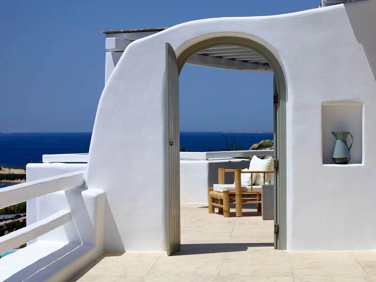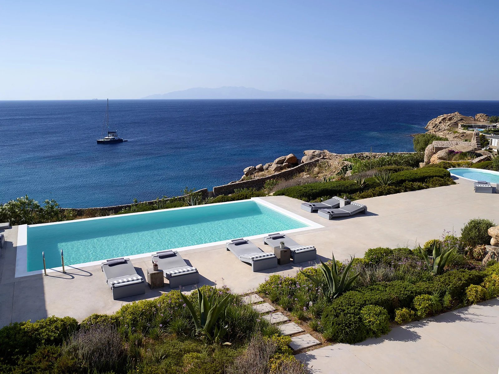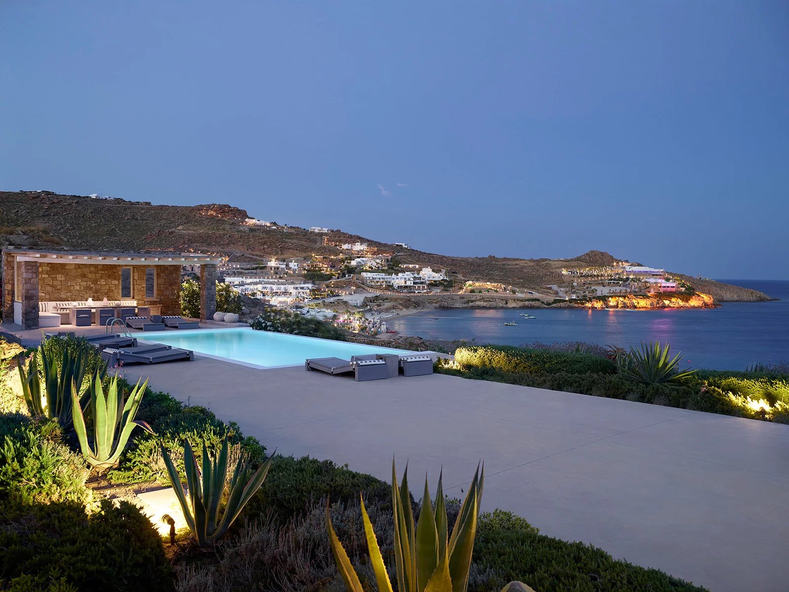 Nestled in the vibrant southern region of Mykonos, Villa Grande N exudes unparalleled charm, boasting breathtaking vistas of the islands of Paros and Naxos against the backdrop of the shimmering Aegean Sea and its private secluded bay.