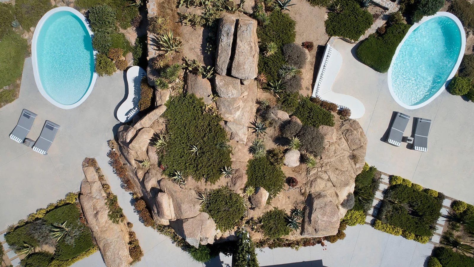 Each of the eight bedrooms grants direct access to the villa's inviting infinity pool and a smaller relaxation pool, ensuring ultimate comfort and relaxation. Both indoor and outdoor spaces boast comfortable seating and dining areas, perfect for soaking in the captivating surroundings and enjoying moments of leisure and indulgence.