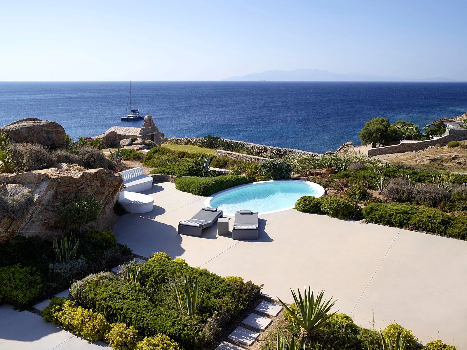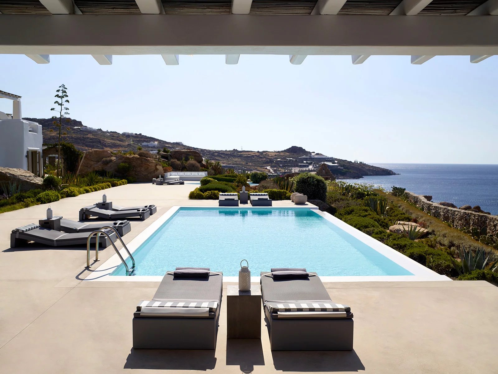 Nestled in the vibrant southern region of Mykonos, Villa Grande P exudes unparalleled charm, boasting breathtaking vistas of the islands of Paros and Naxos against the backdrop of the shimmering Aegean Sea and its private secluded bay.