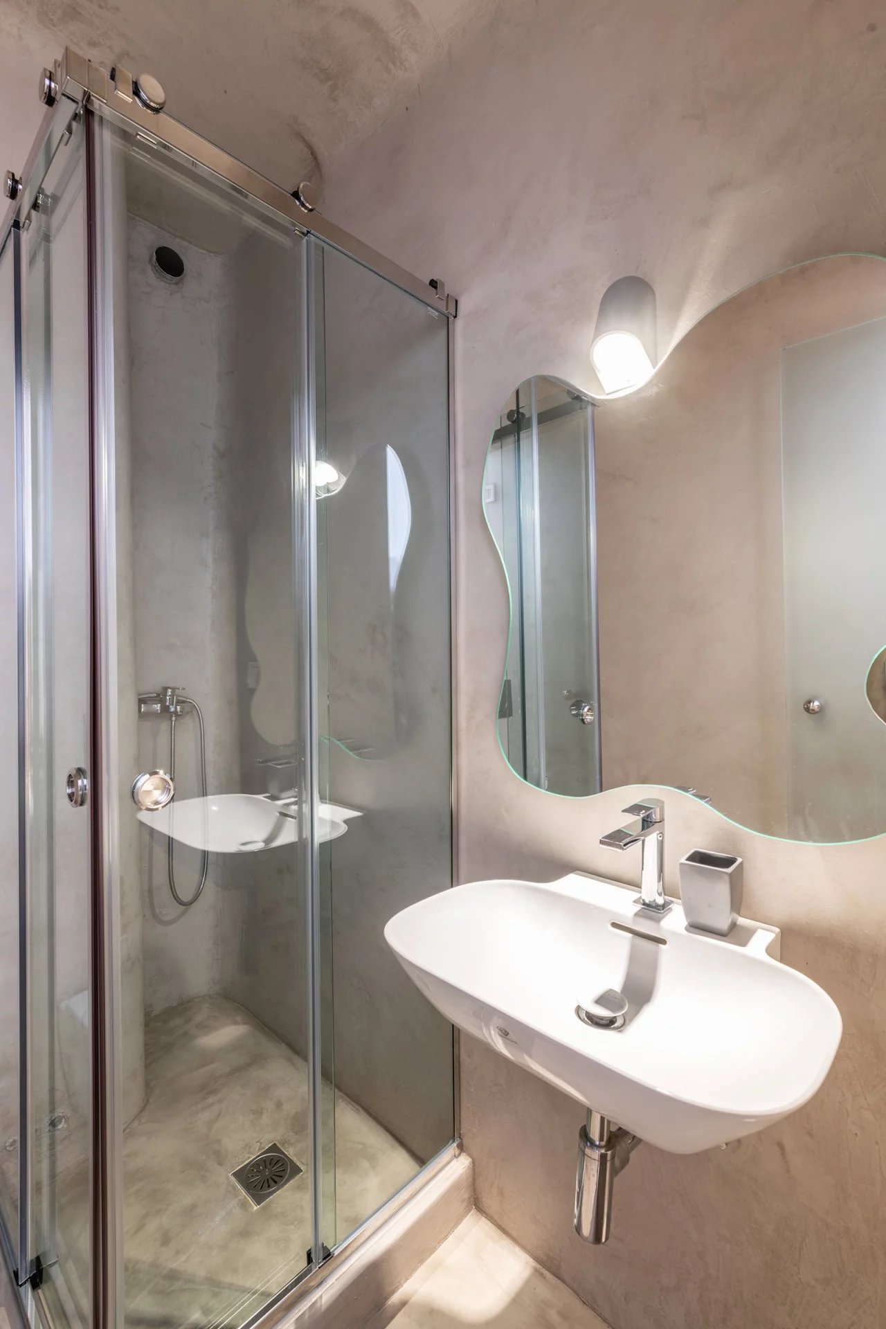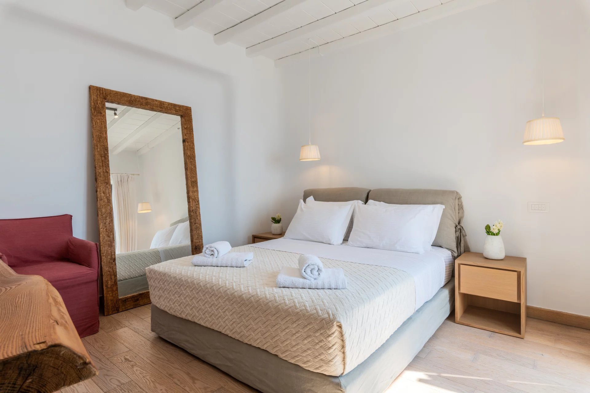 - Double Bedroom with private exterior bathroom and access to the outdoor pool area with sea view