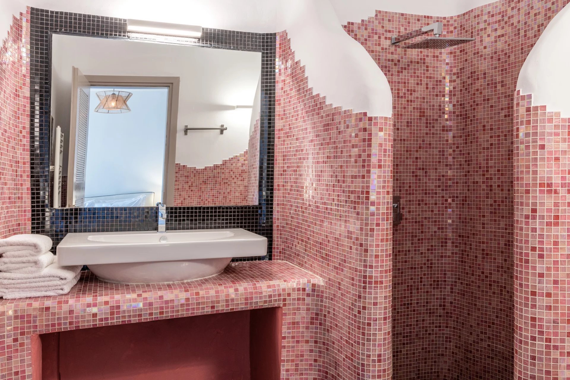 -Double Bedroom with ensuite bathroom, sea view, private entrance, and access to the pool area