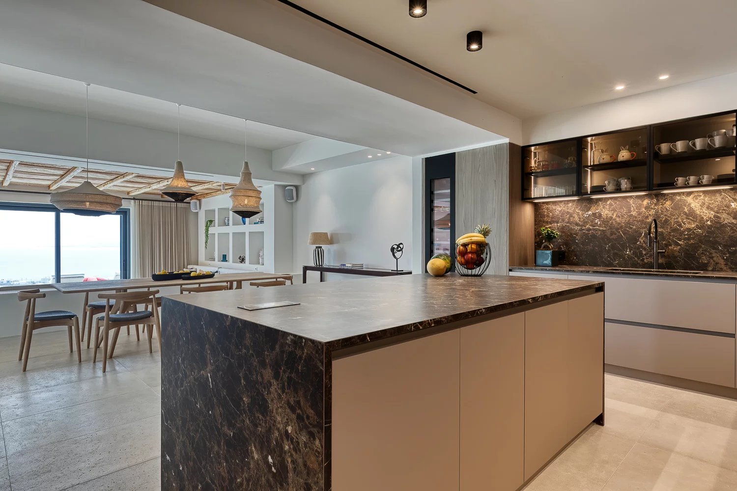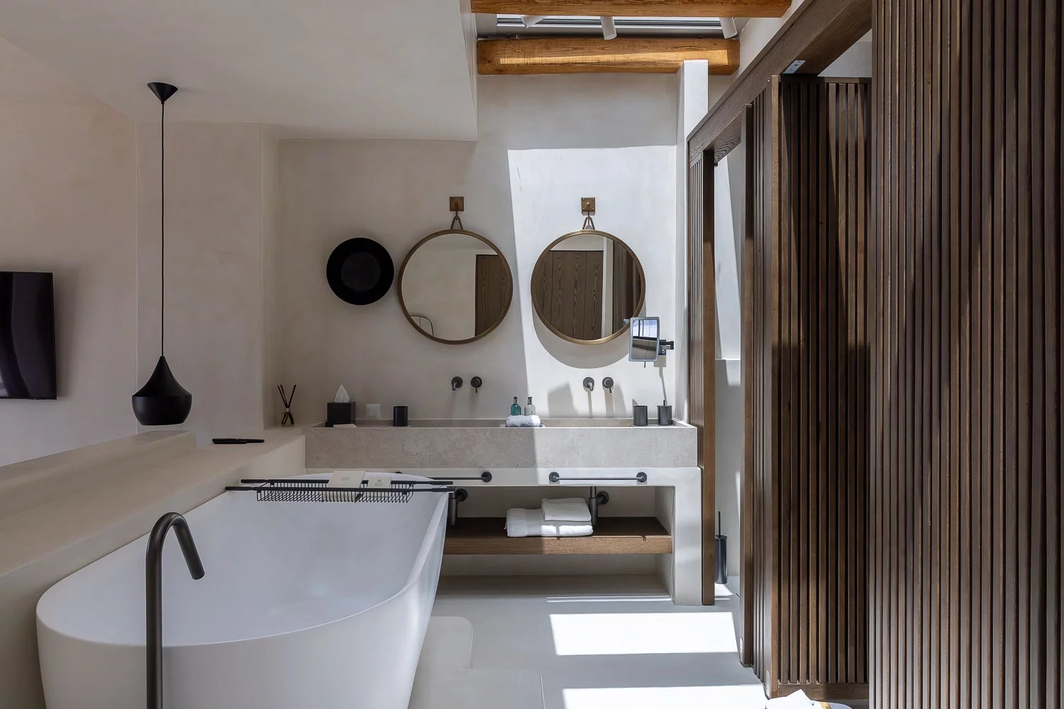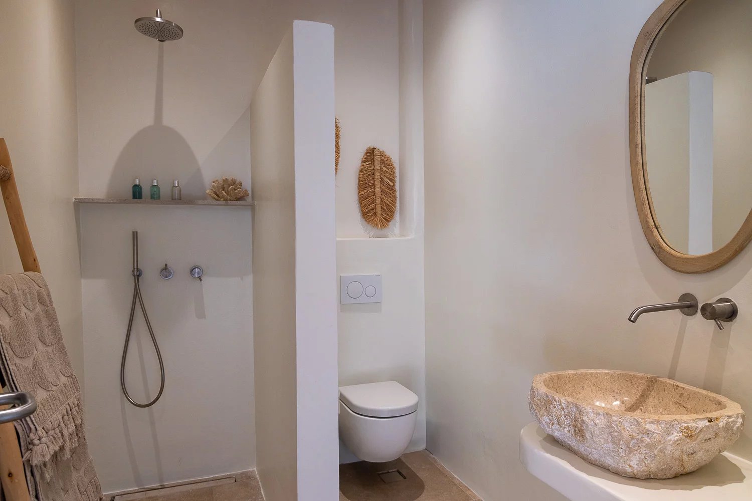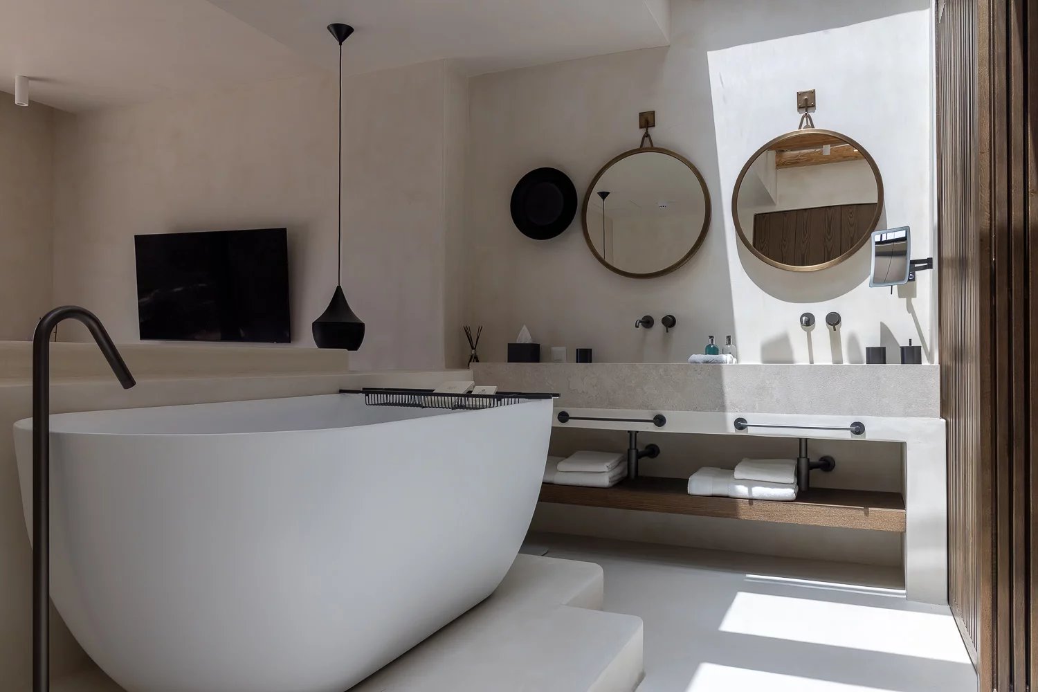 The villa’s bespoke kitchen is a culinary haven, equipped with high-end Gaggenau appliances, perfect for those who appreciate gourmet cooking. A highlight of the property is the expansive terrace, where you can bask in the Mykonian sun beside the heated infinity pool or enjoy meals in the alfresco dining area. For relaxation and indulgence, the villa provides Molton Brown amenities throughout, ensuring a five-star experience.