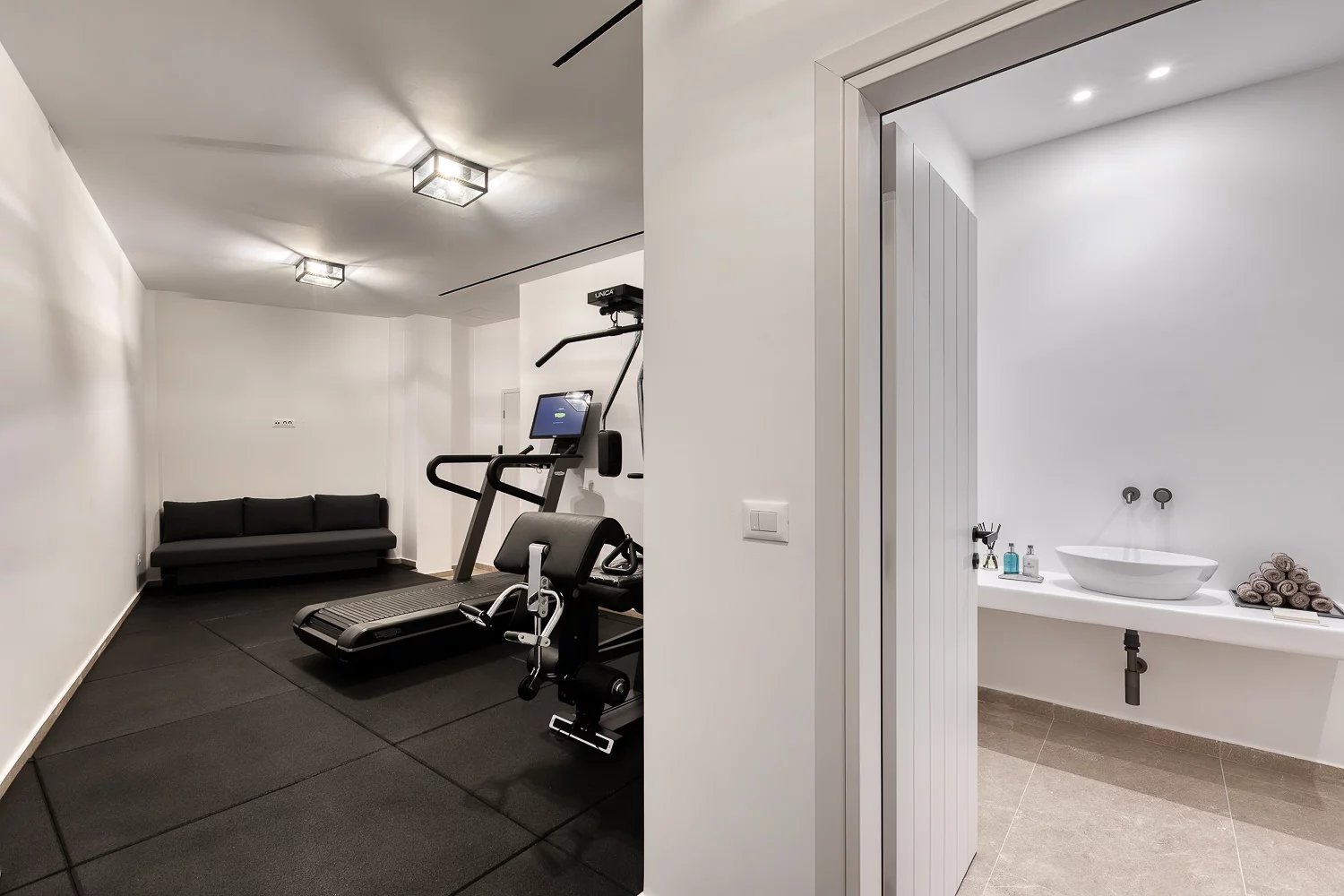 Health enthusiasts will appreciate the fully equipped gym, offering the convenience of staying active while on holiday. Additionally, a lift grants easy access to the villa’s bedroom suites, enhancing the sense of luxury and comfort.