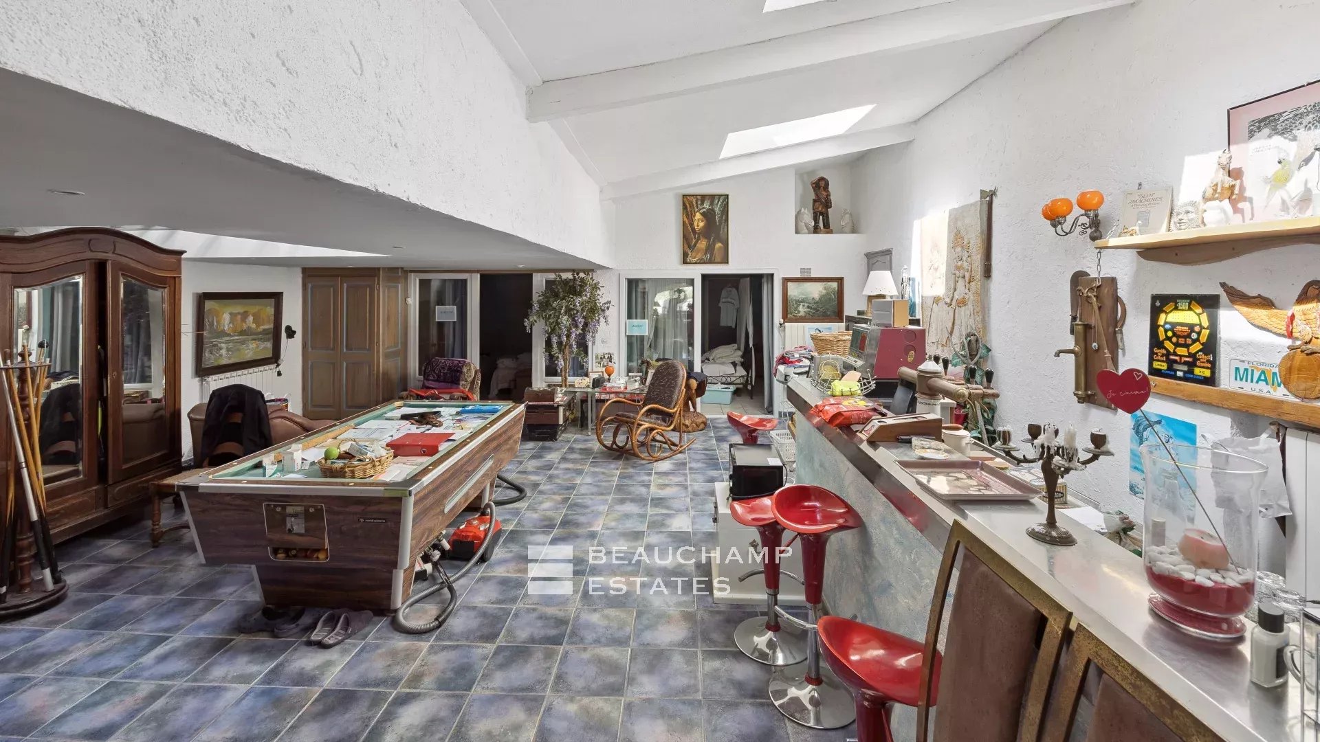 This expansive character residence offers approximately 600 sqm of living space, set on a beautifully wooded plot of 7,000 sqm.